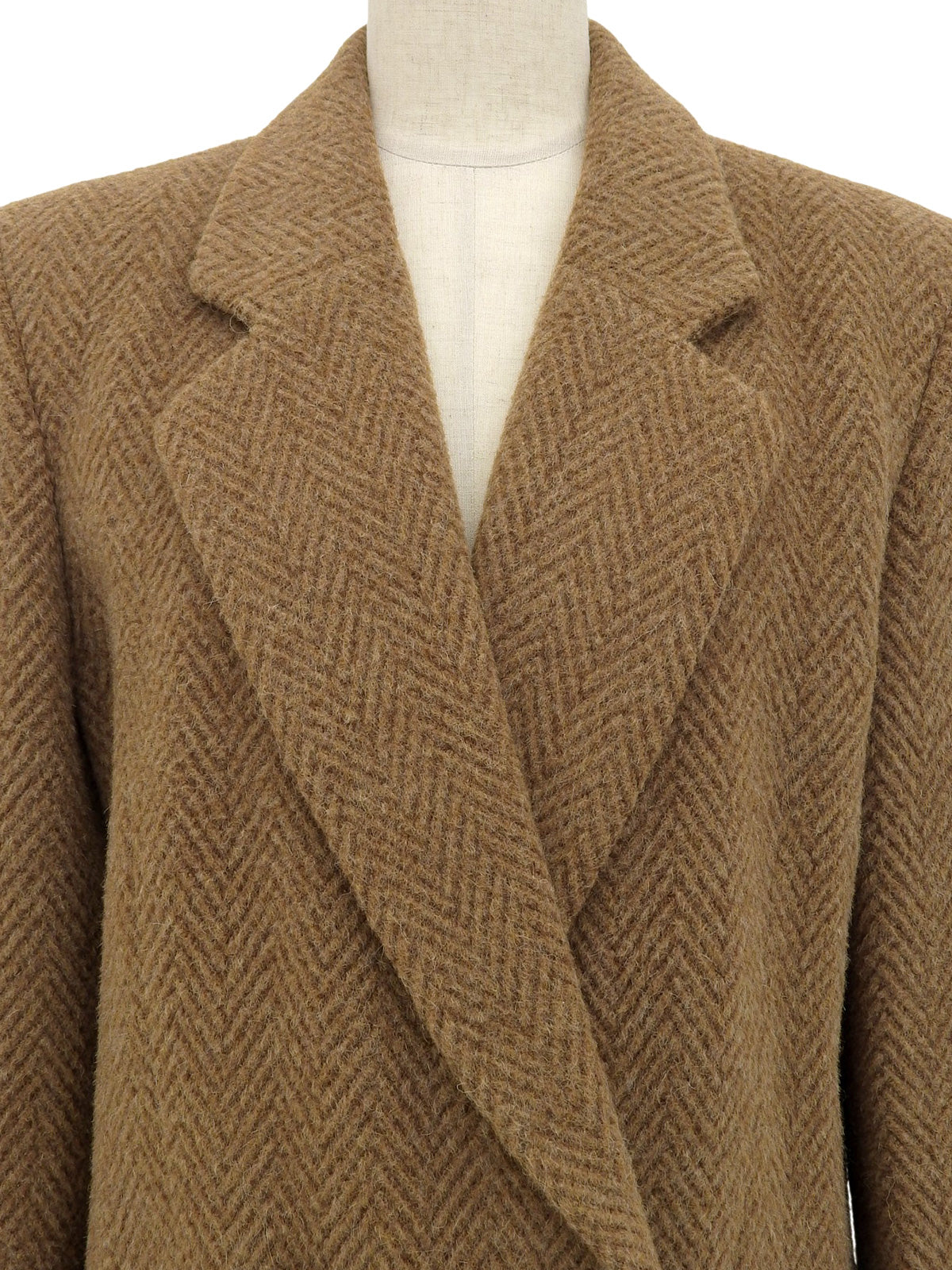 ウールヘリンボーンパターンダブルブレストジャケット ブラウン