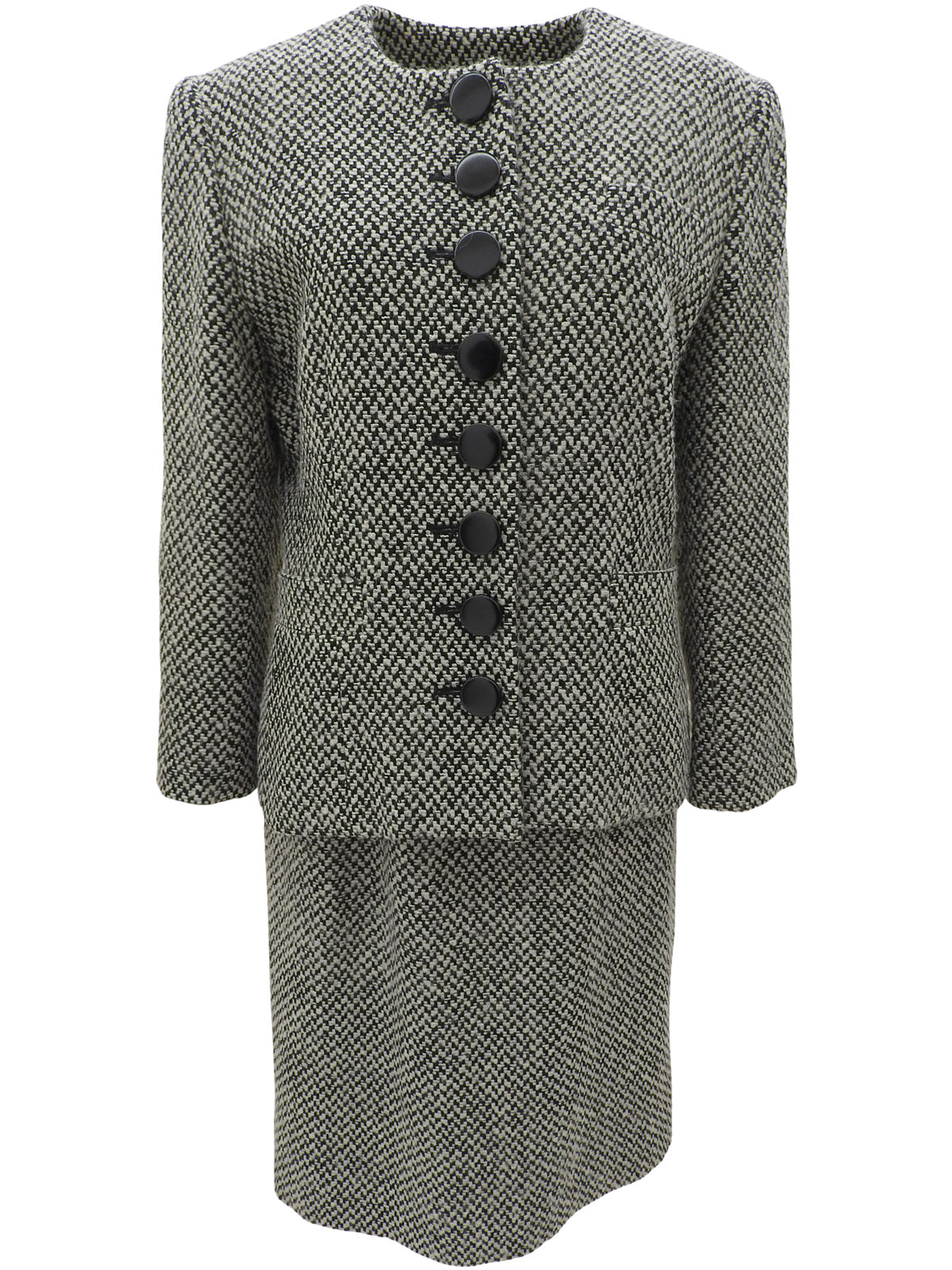 ツイードノーカラーセットアップ ホワイト/ブラック