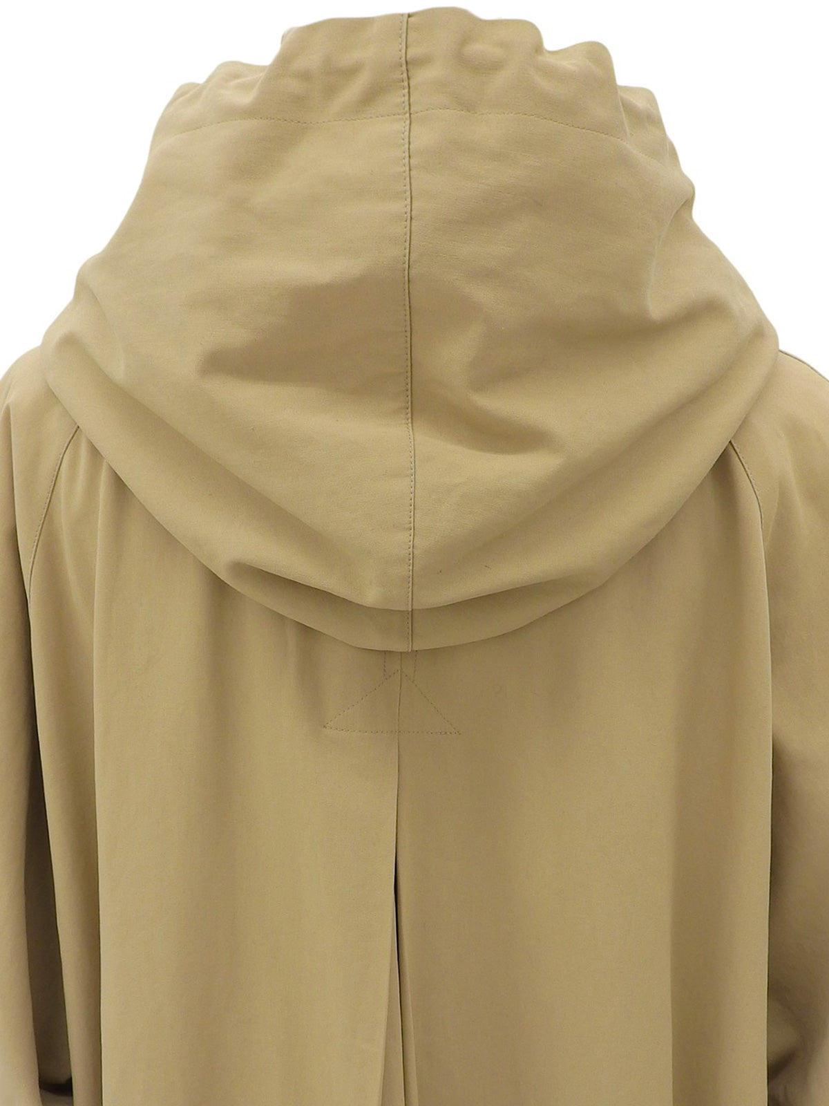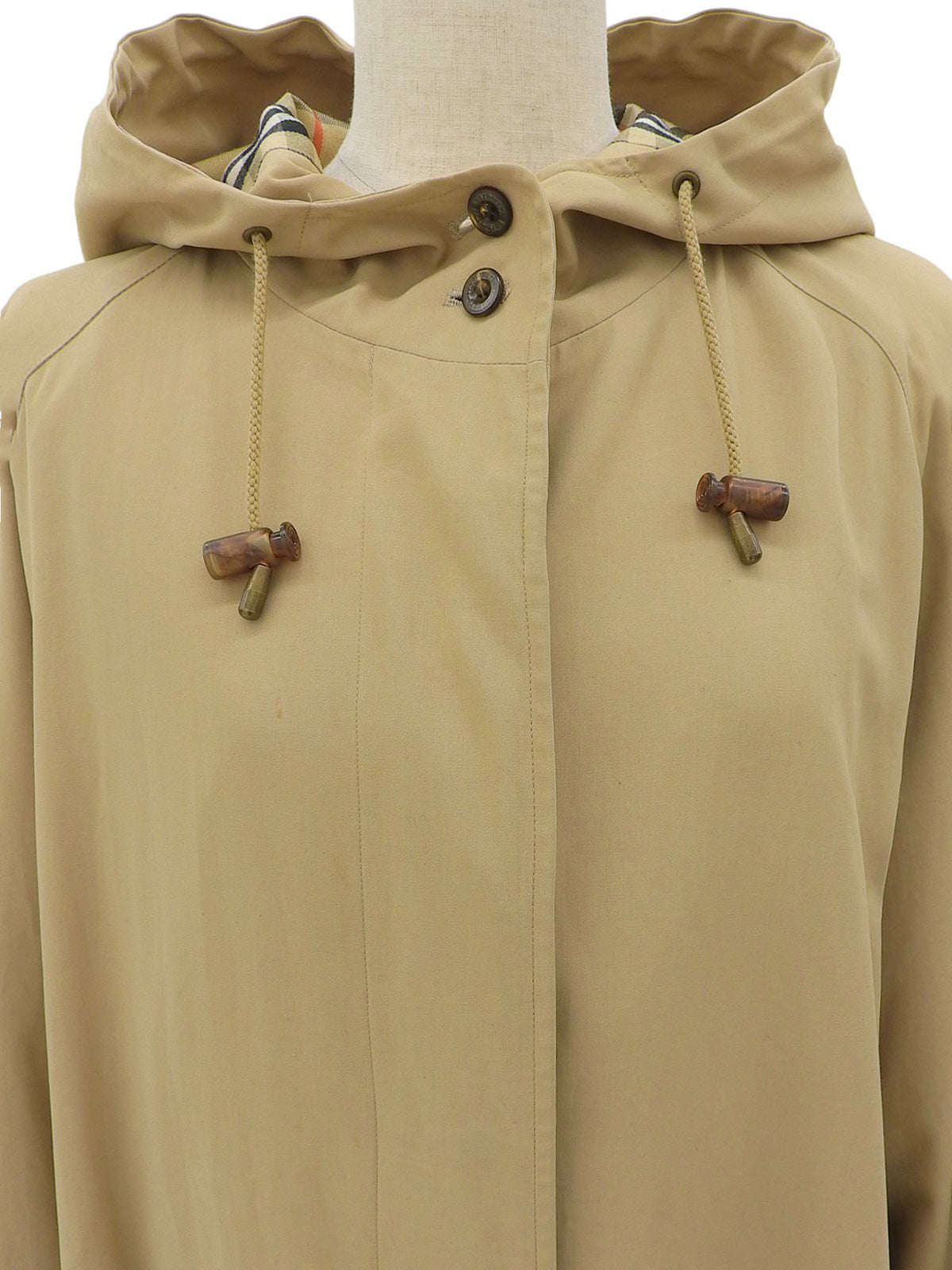 ノバチェックライニングロゴボタンフーデッドコート ベージュ