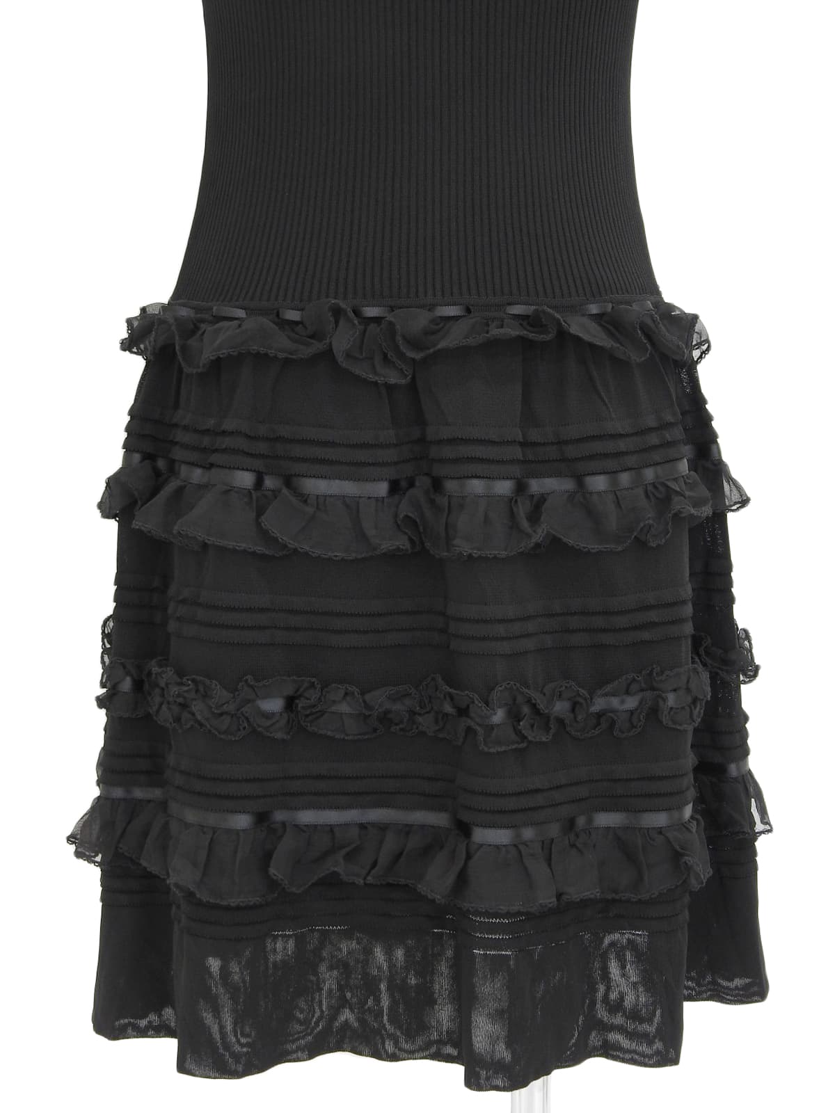 2007年製 バイカラーロゴボタンフリルワンピース ブラック/ホワイト