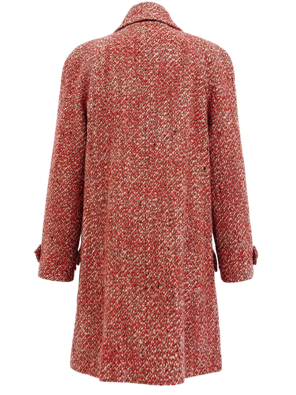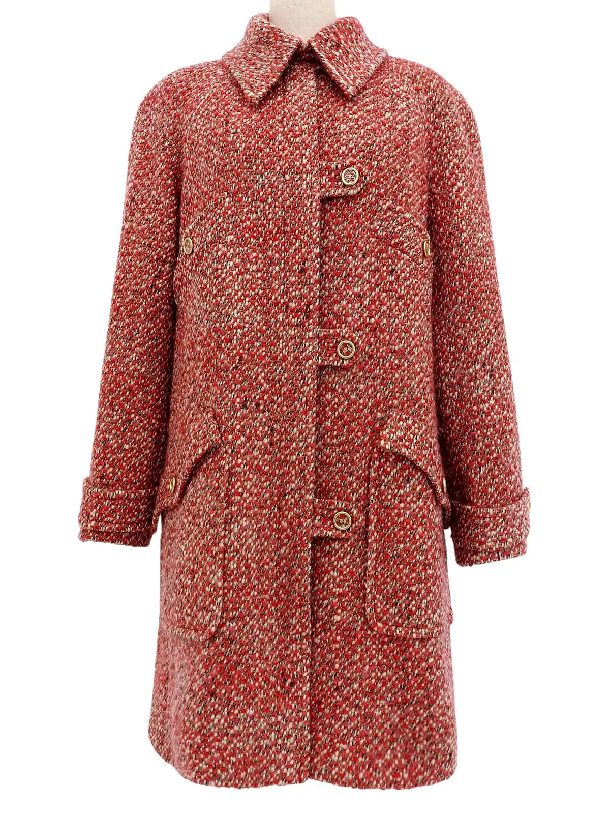2001年製 ツイードCCマークボタンロングコート レッド/マルチ