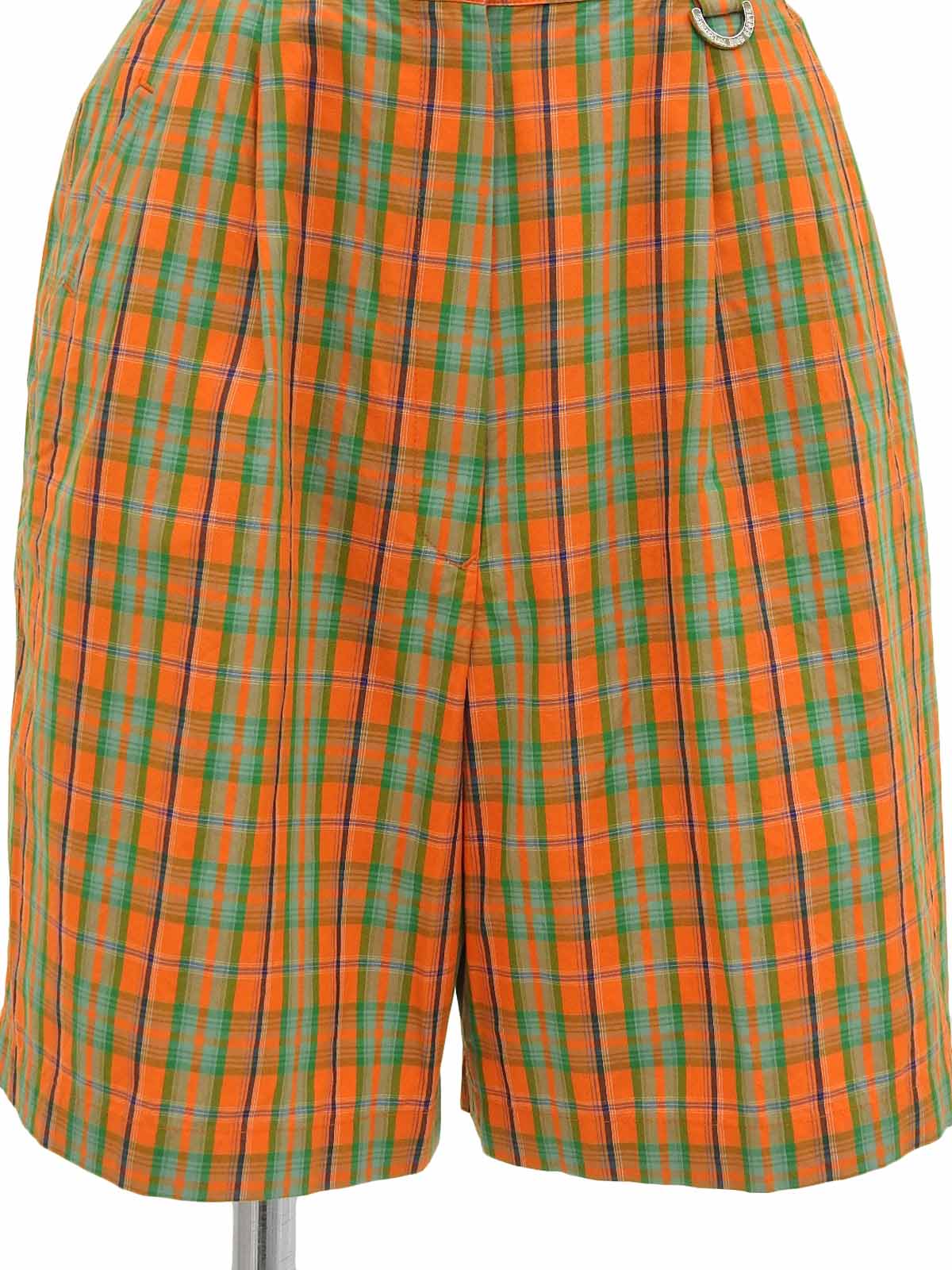 コットンチェックパターンショートパンツ オレンジ/グリーン