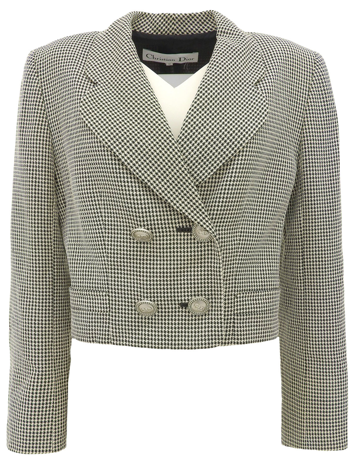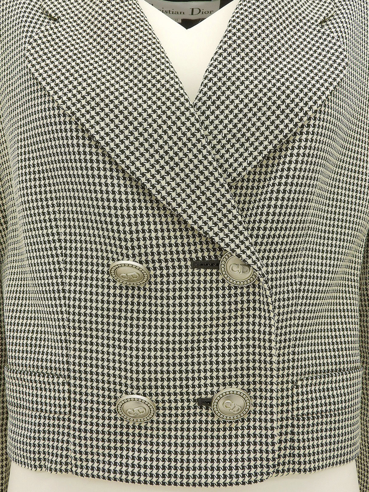 ウールチェックパターンロゴボタンジャケット ベージュ/ブラック