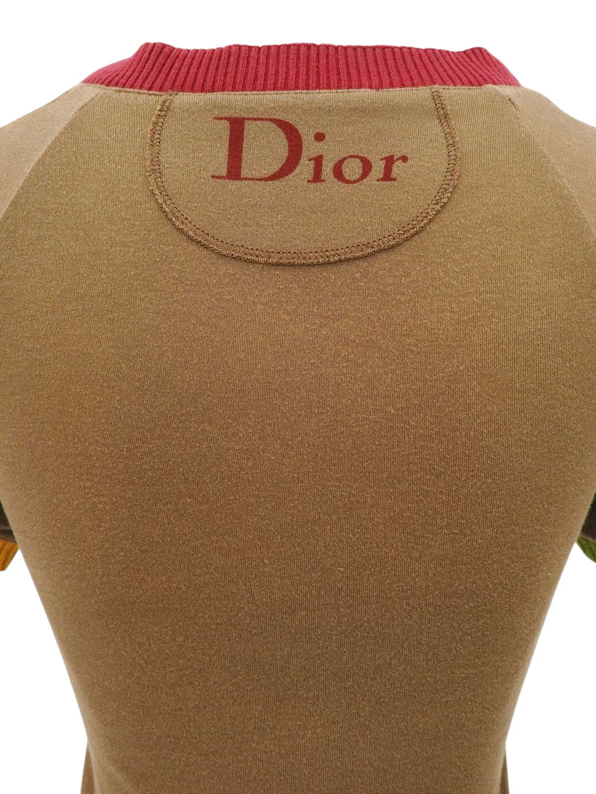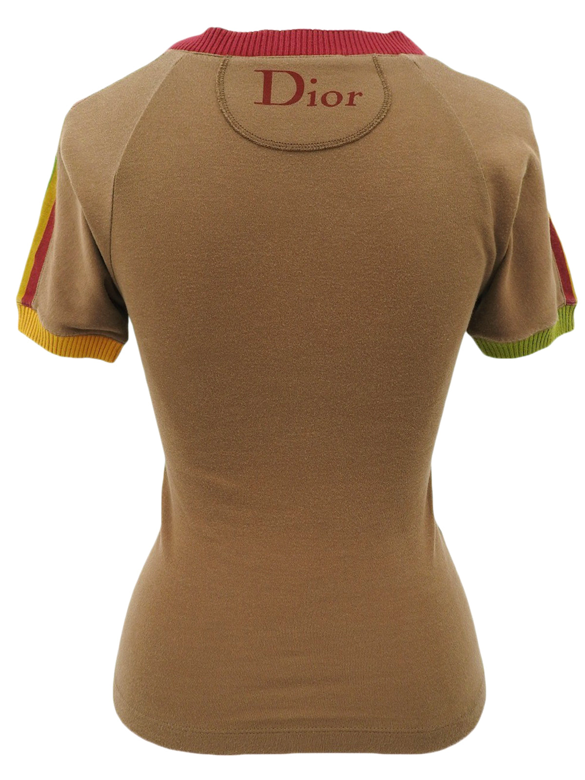 コットンラスタVネックハーフスリーブトップス ブラウン/マルチ