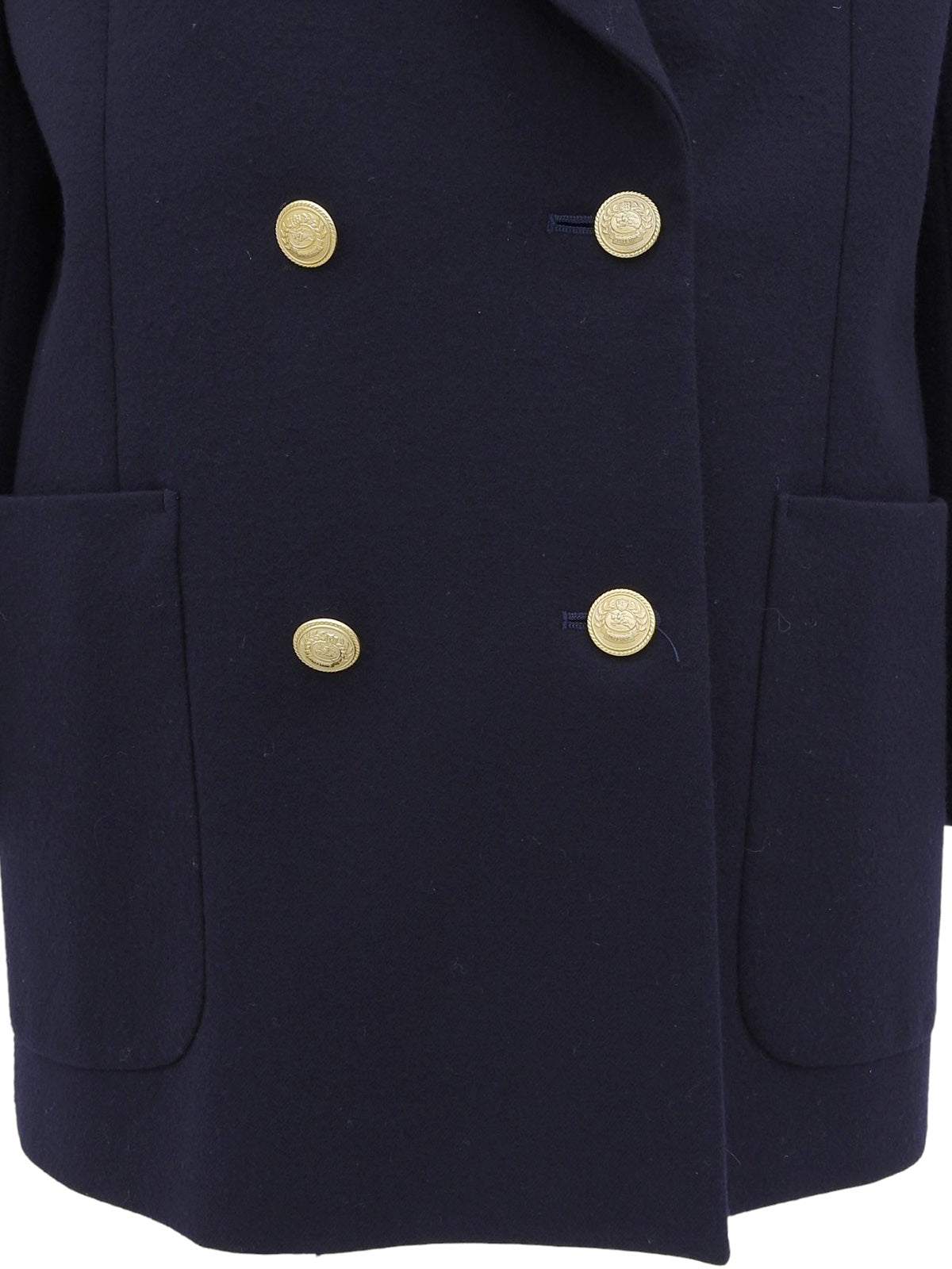 ウールロゴエンブレムワッペンダブルブレストジャケット ネイビー