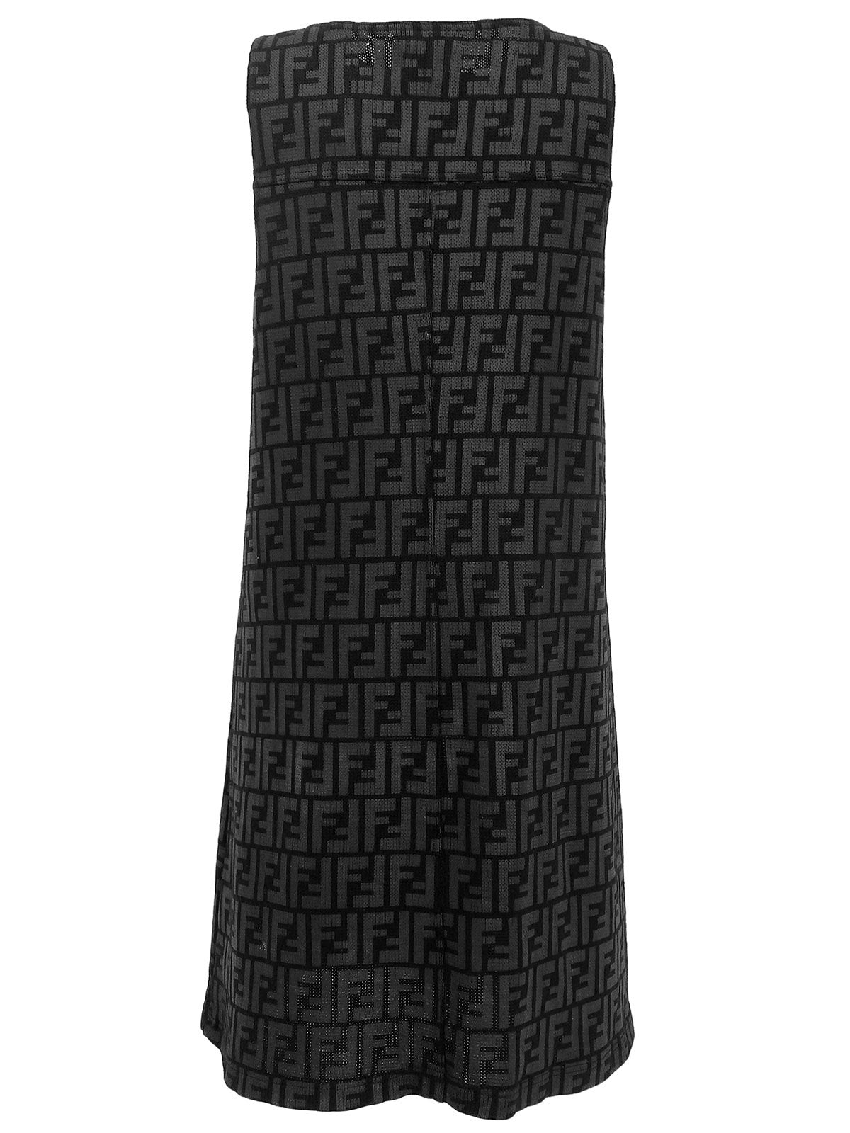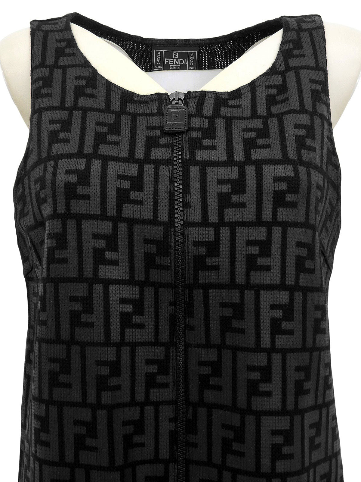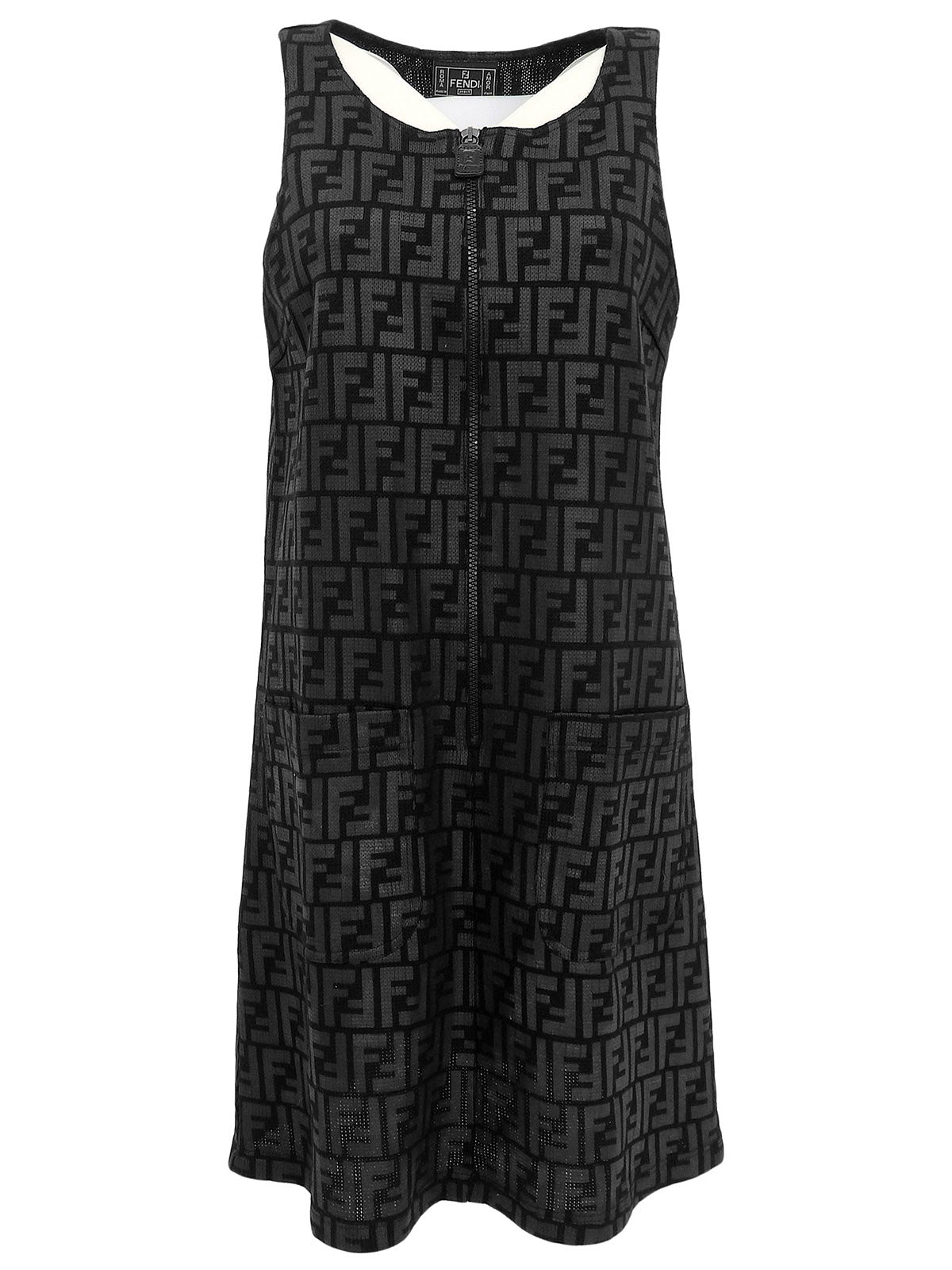 FFズッカパターンロゴジップアップノースリーブワンピース ブラック