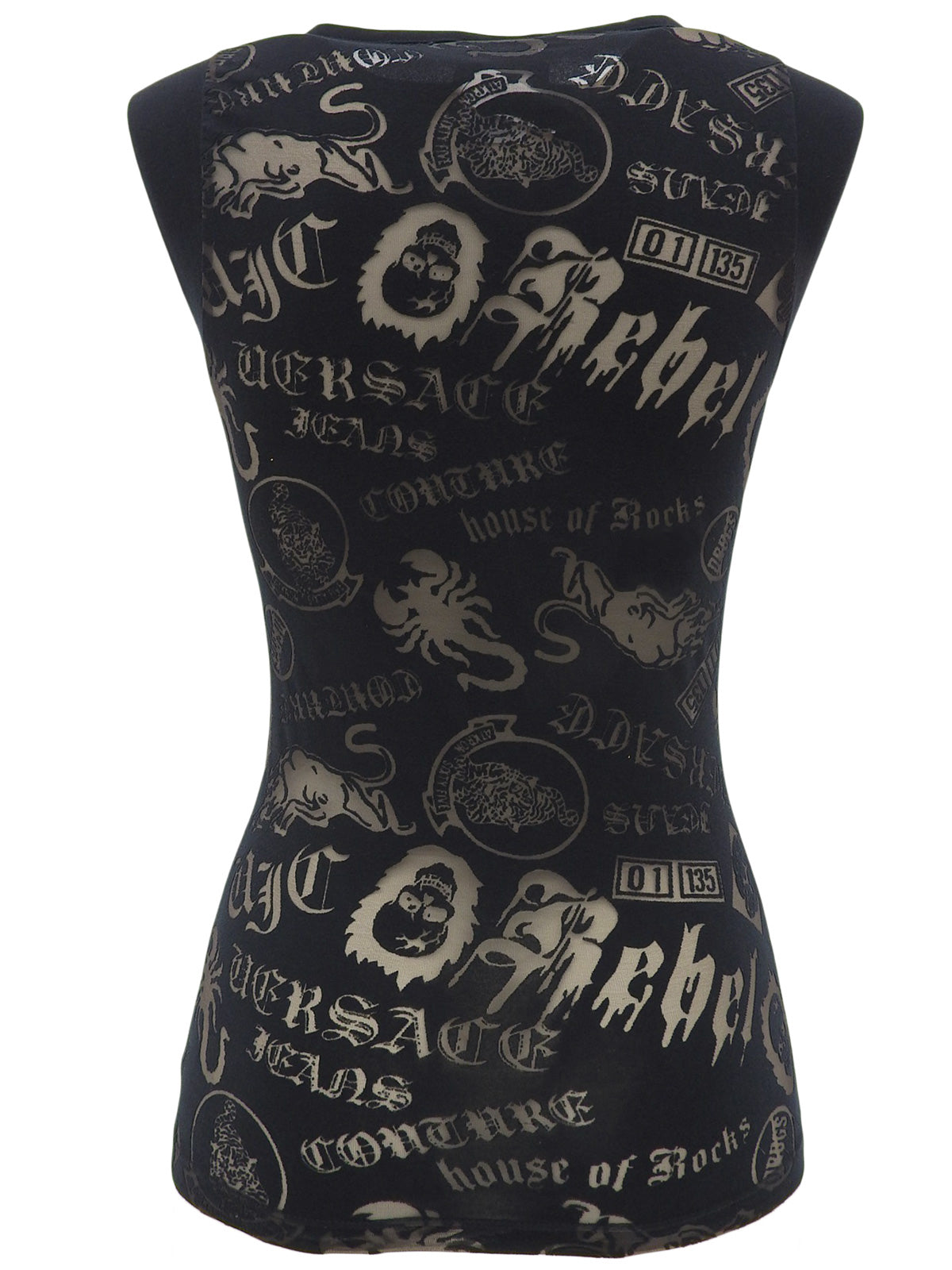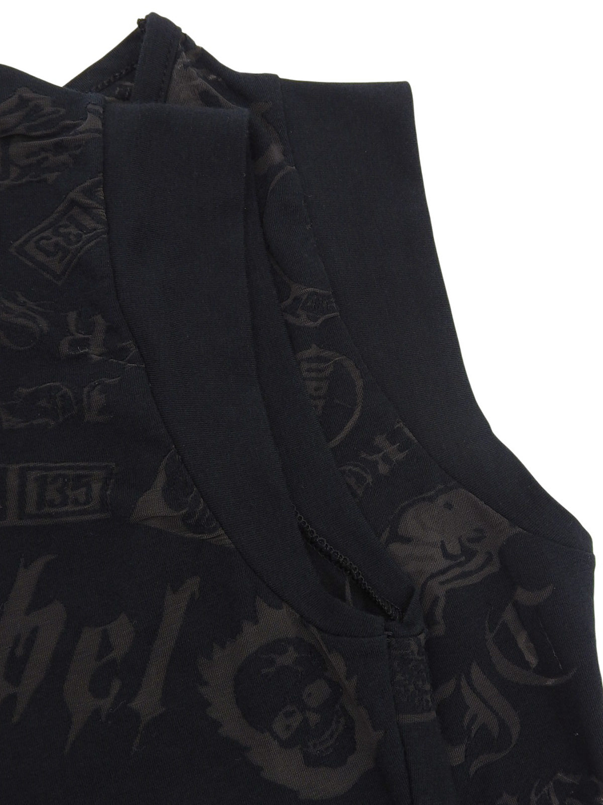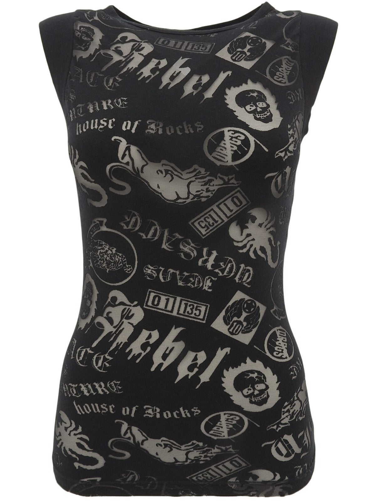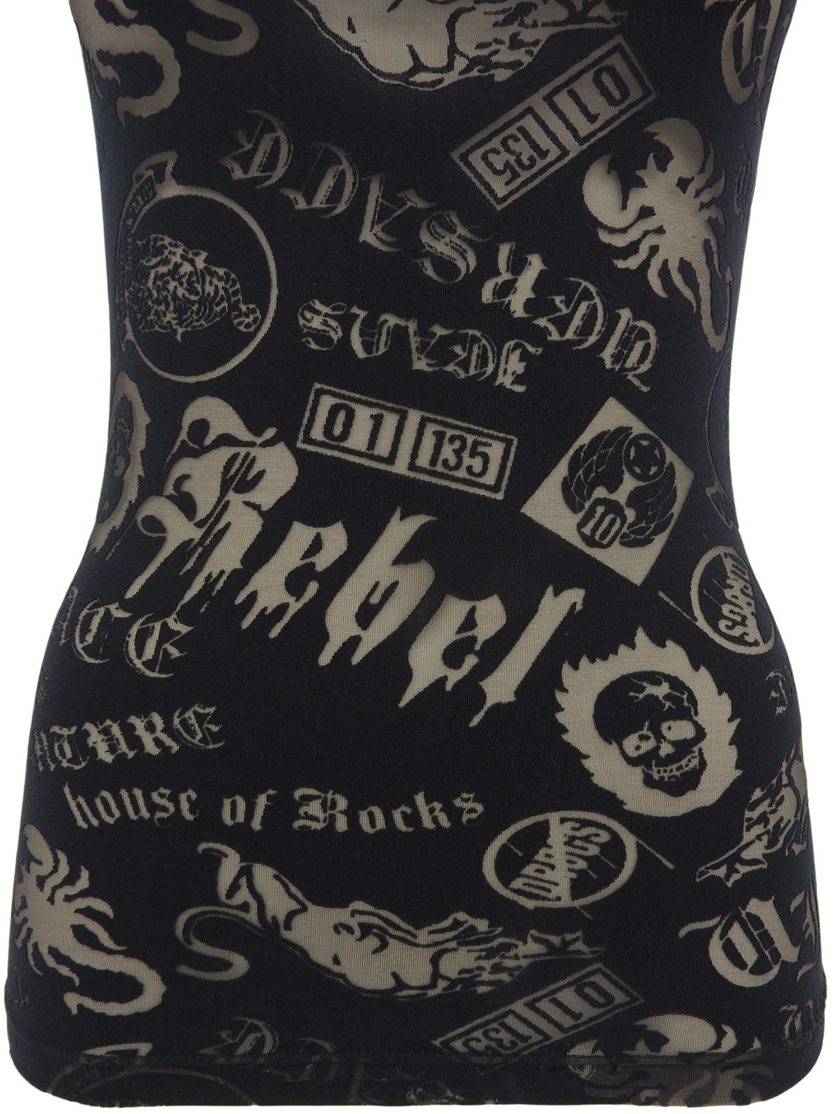 マルチモチーフシースルーデザインノースリーブトップス ブラック