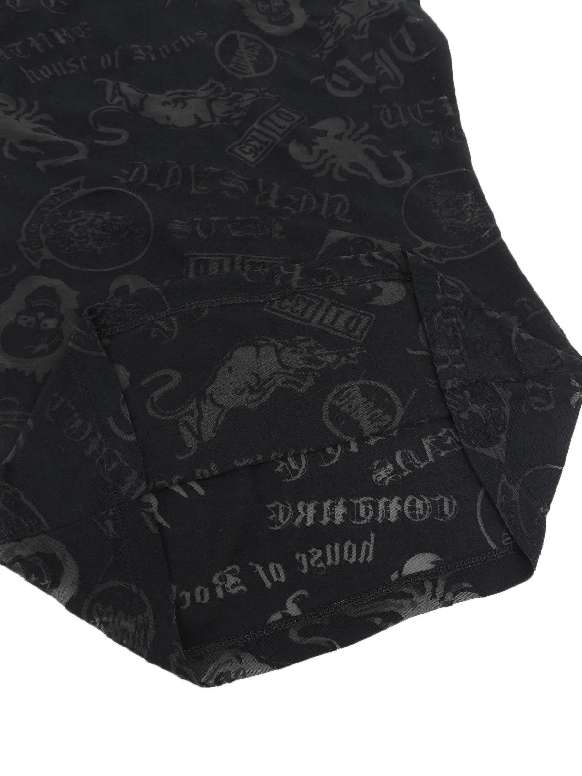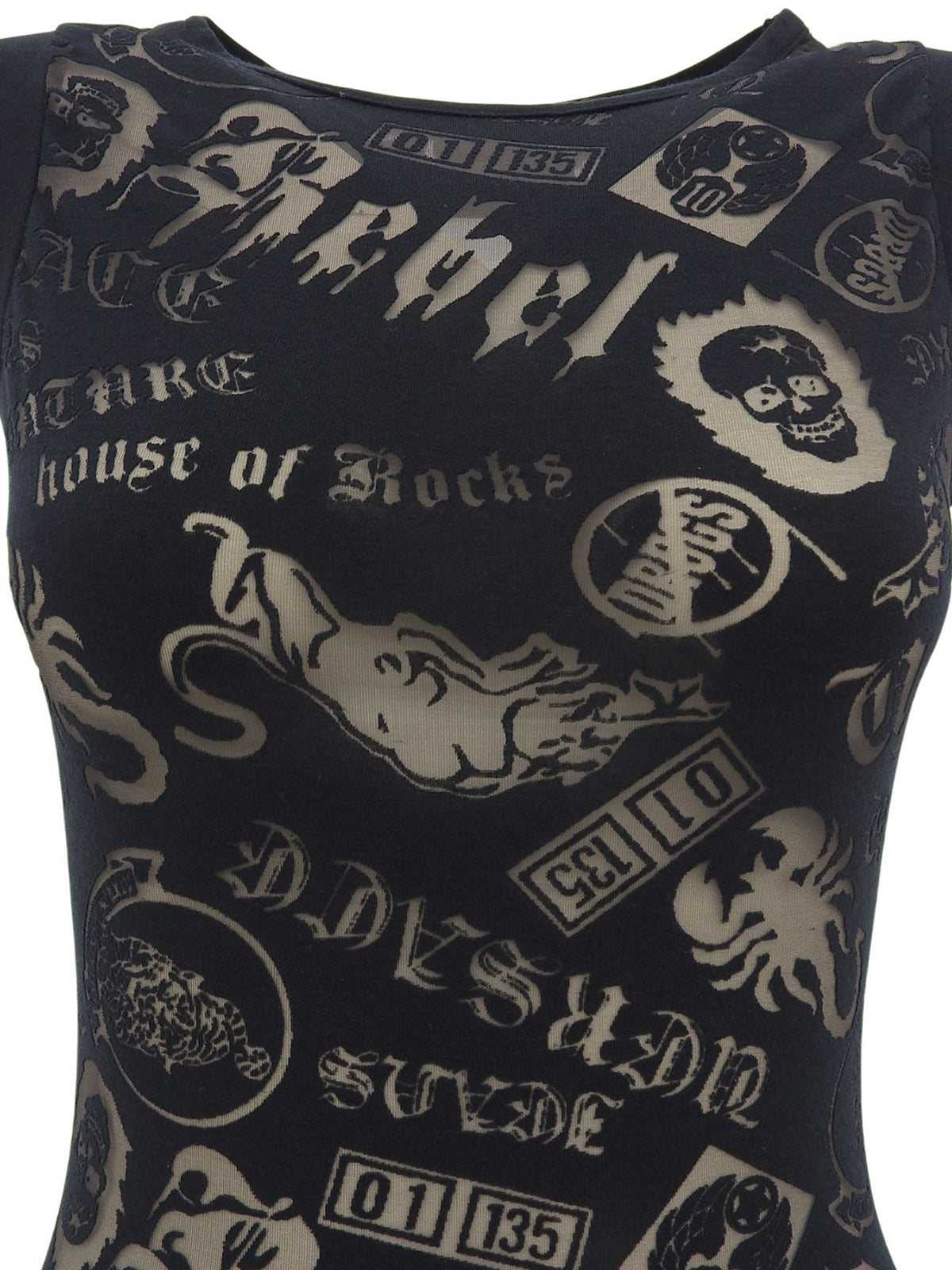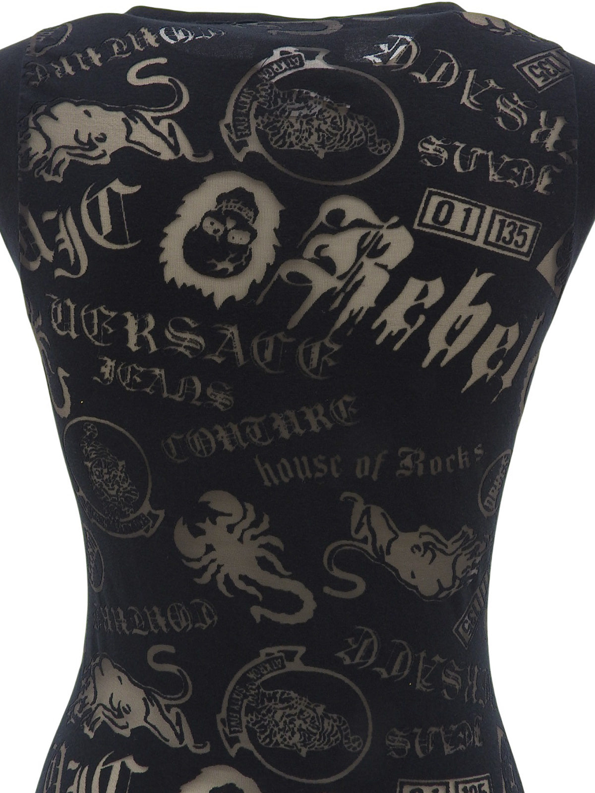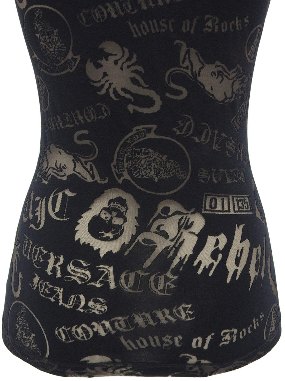 マルチモチーフシースルーデザインノースリーブトップス ブラック