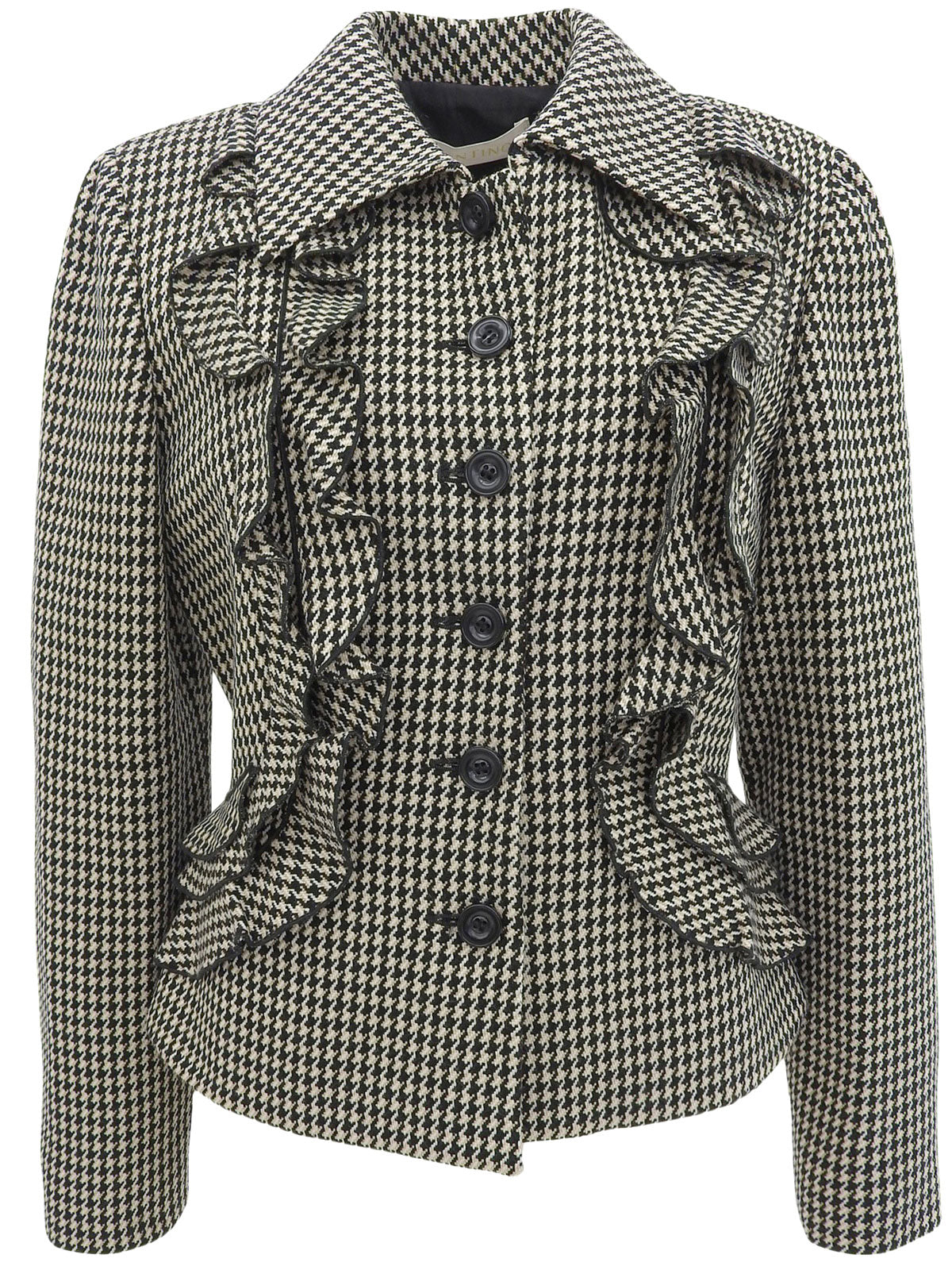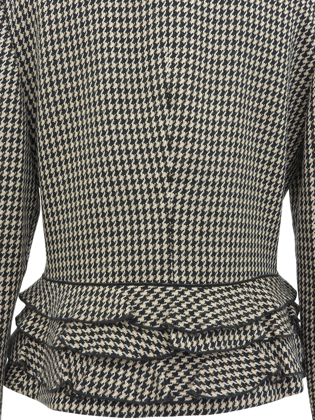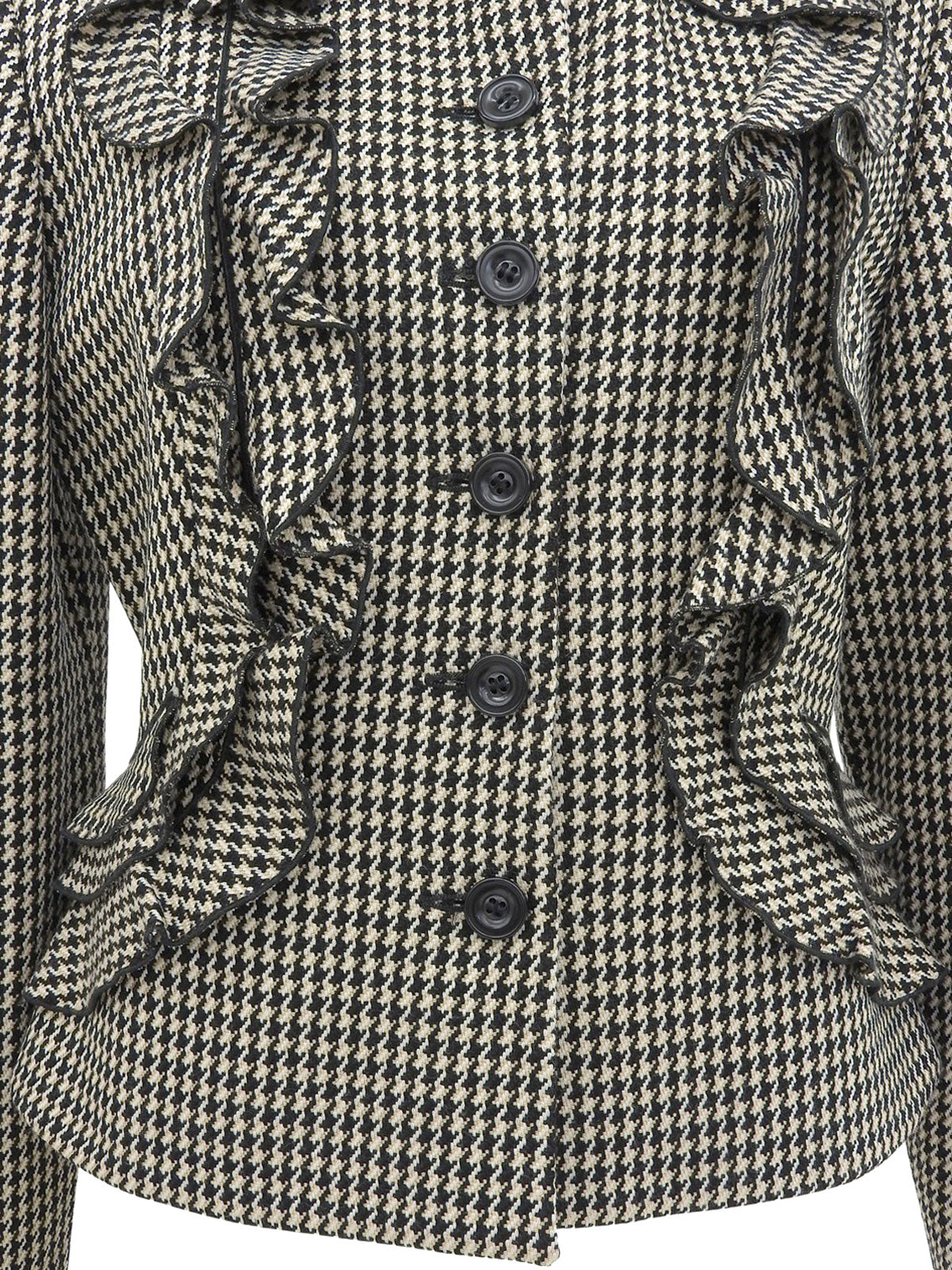 ウールハウンドトゥースパターンフリルジャケット ブラック/マルチ