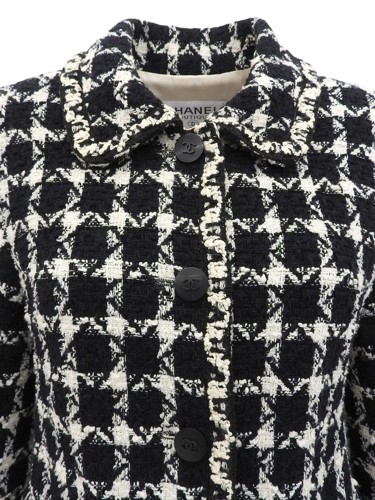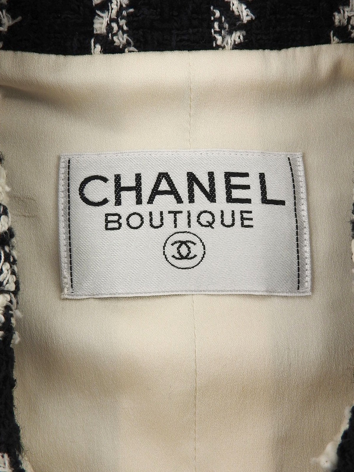 ツイードチェックパターンCCマークボタンジャケット ブラック/ホワイト
