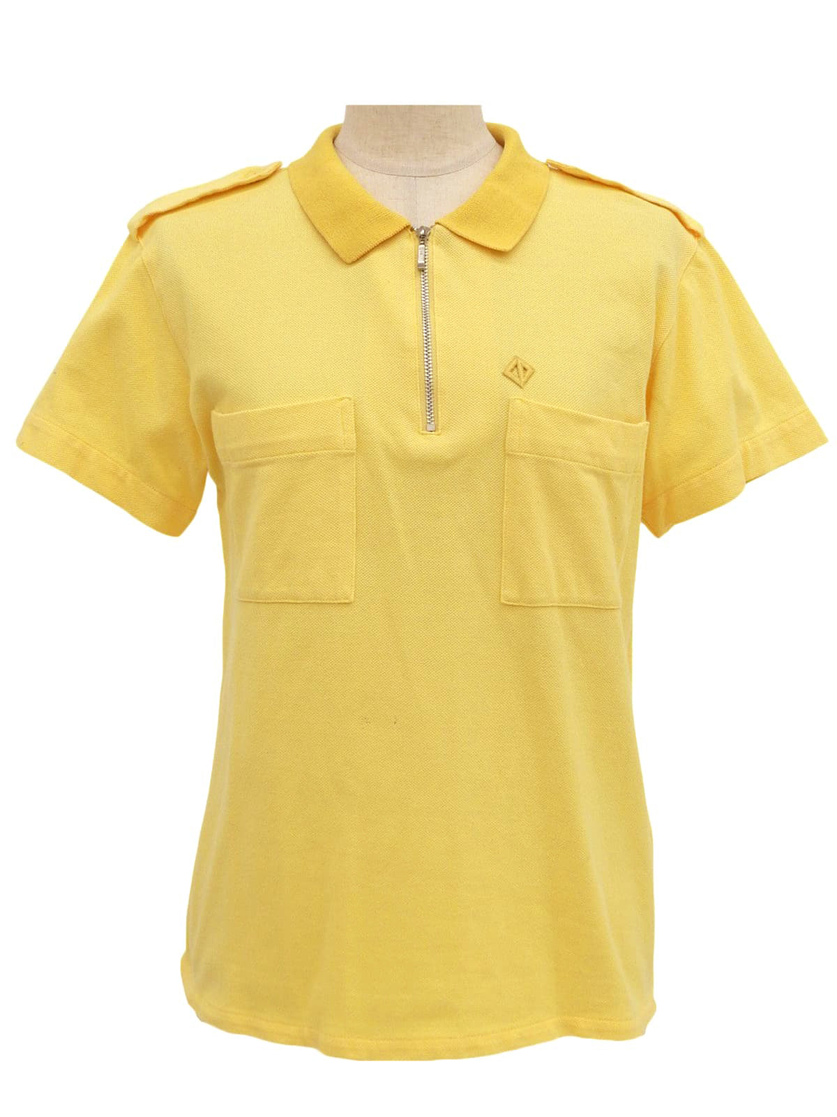 ロゴ刺繍ジップアップ半袖ポロシャツ イエロー