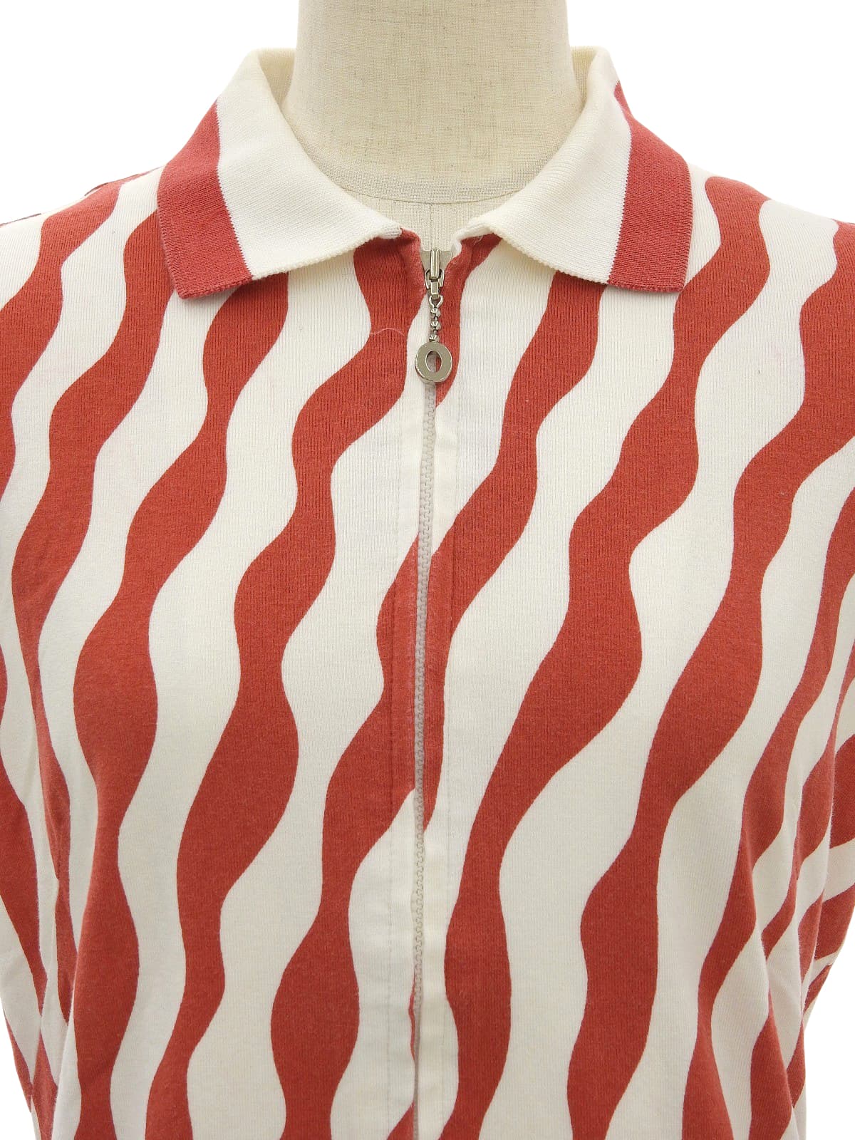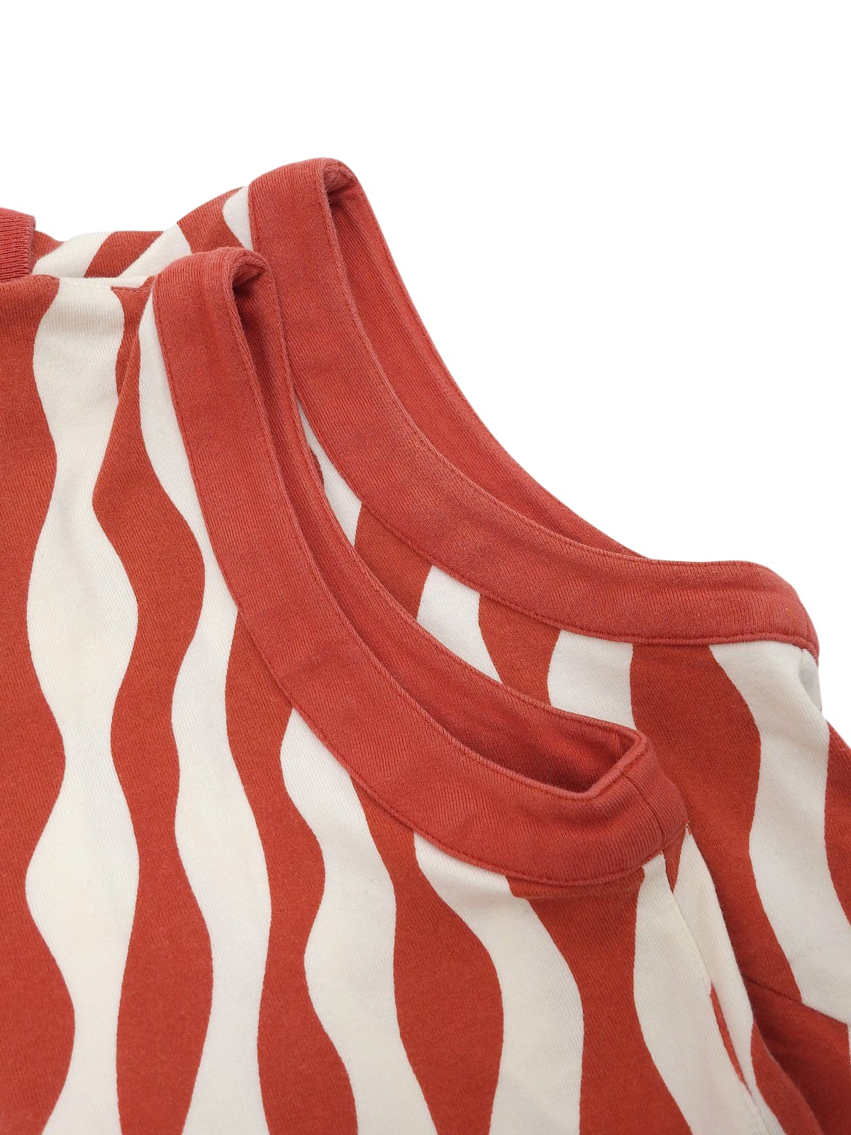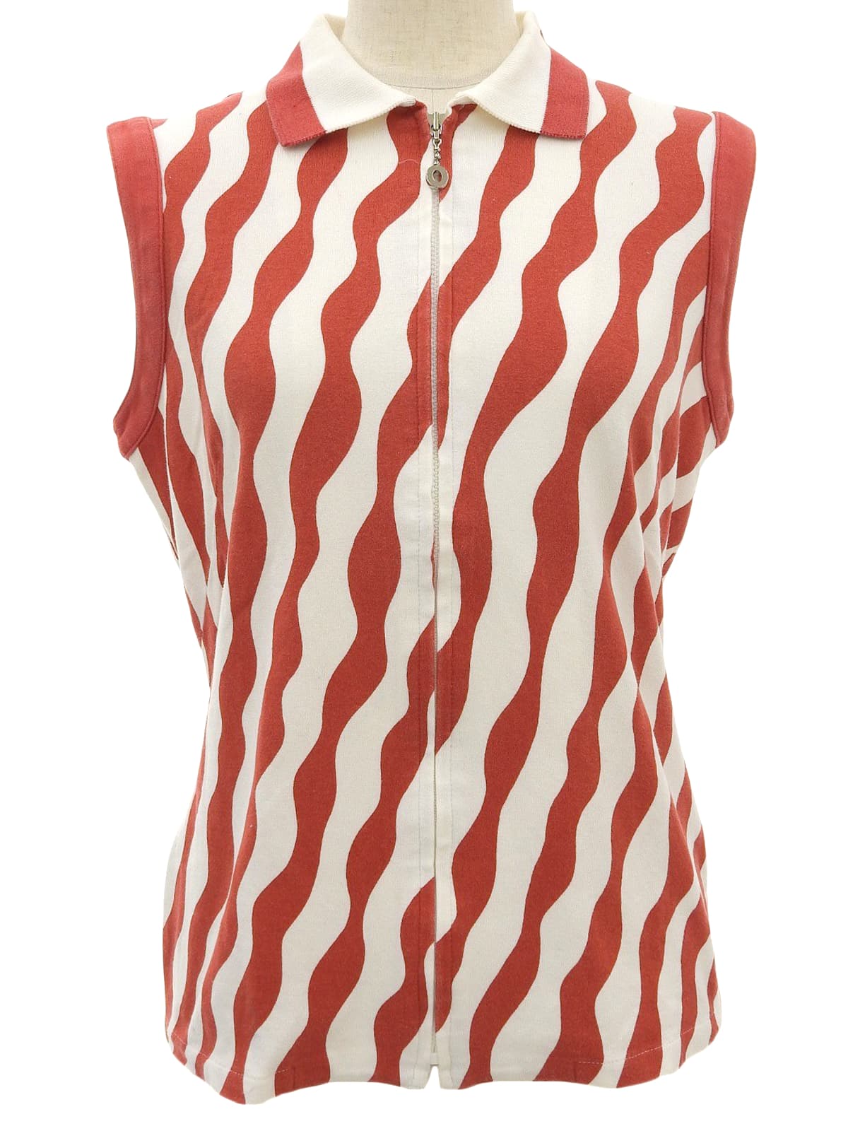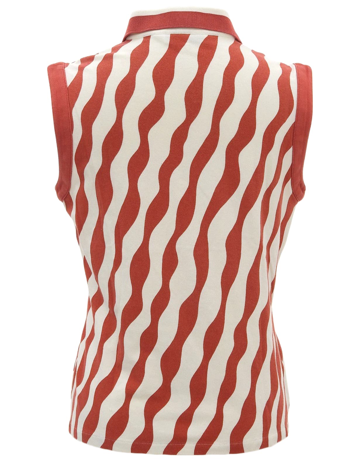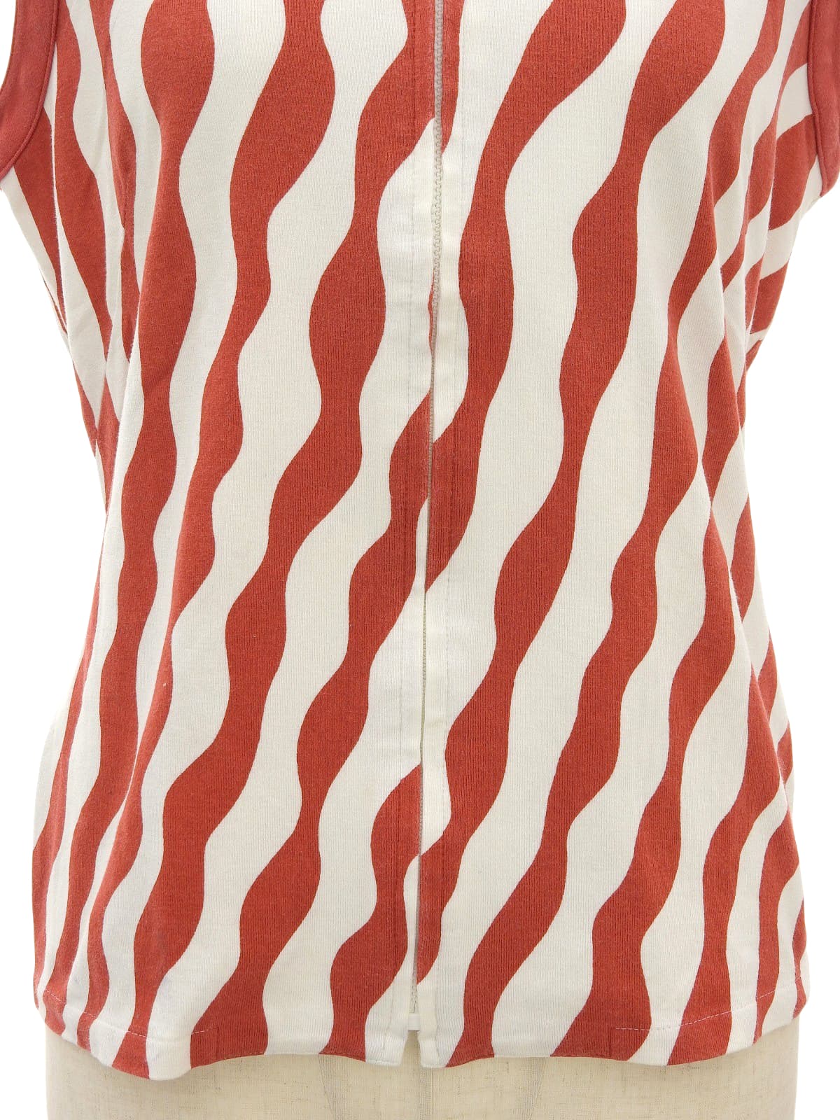 デザインパターンロゴジップアップノースリーブトップス レッド/ホワイト