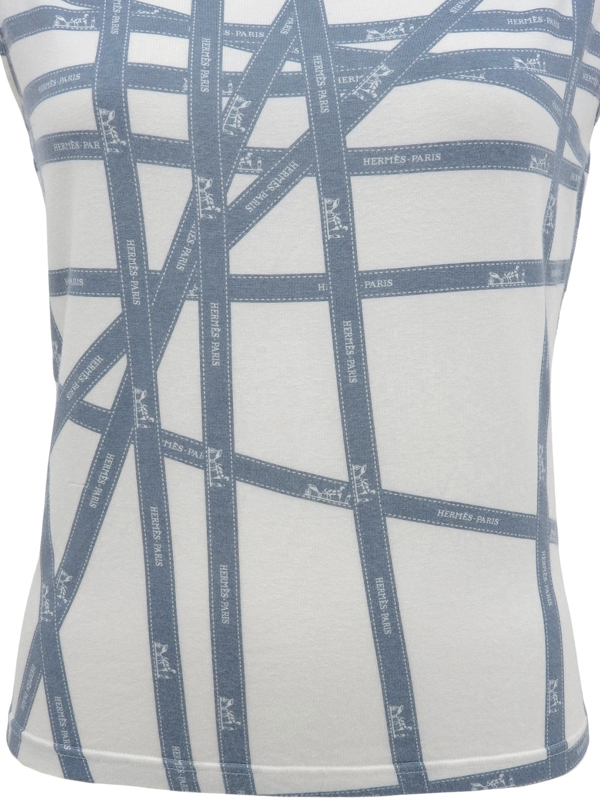 ボルデュックパターン半袖トップス アイスブルー/ホワイト