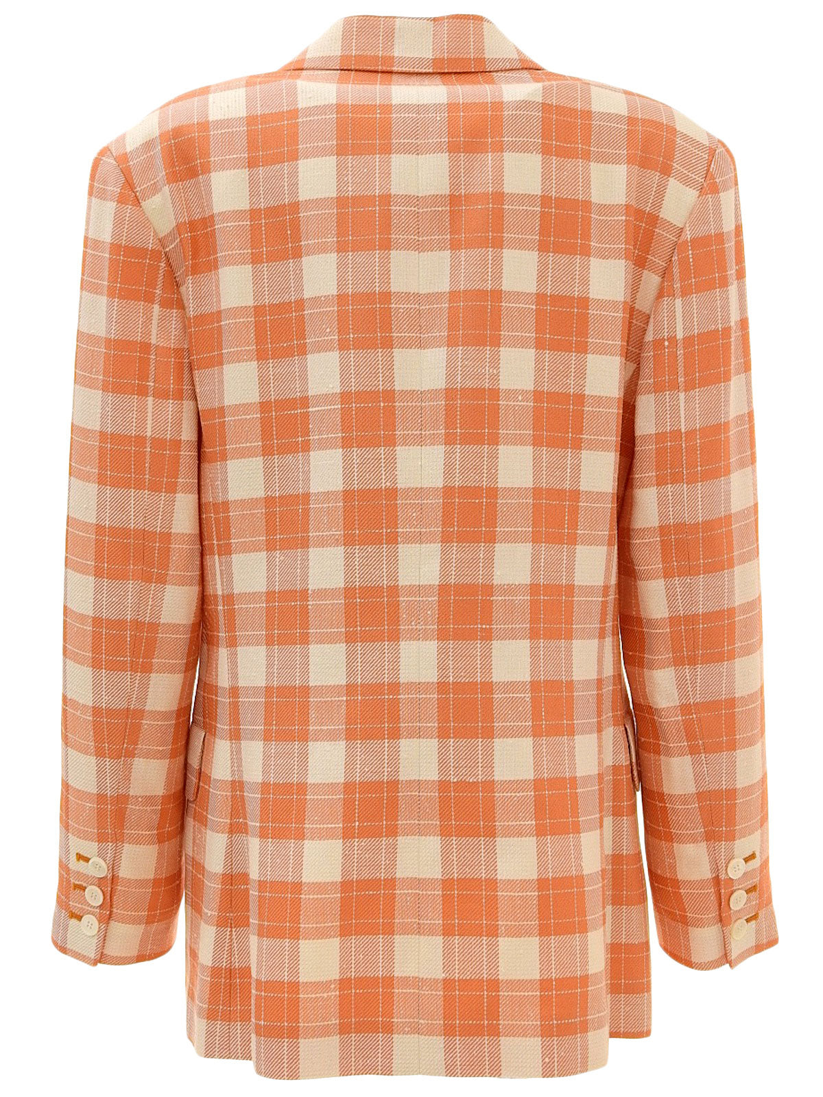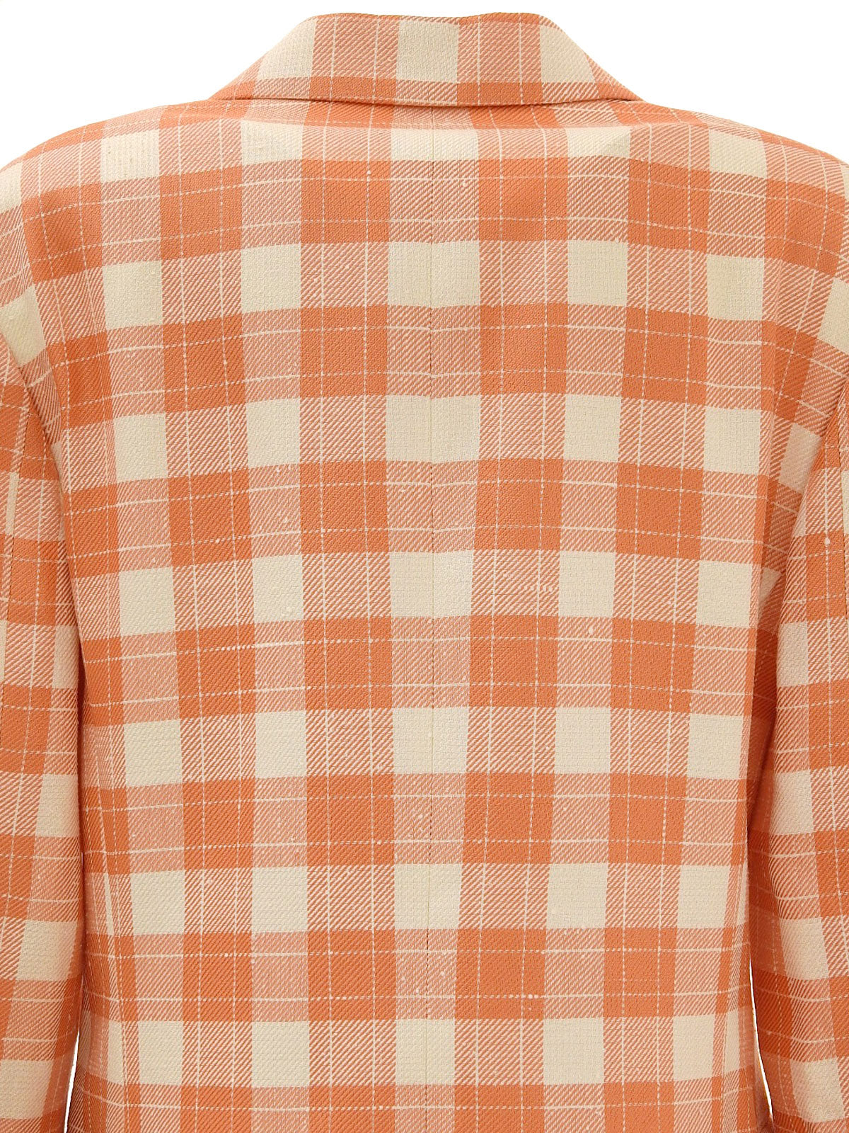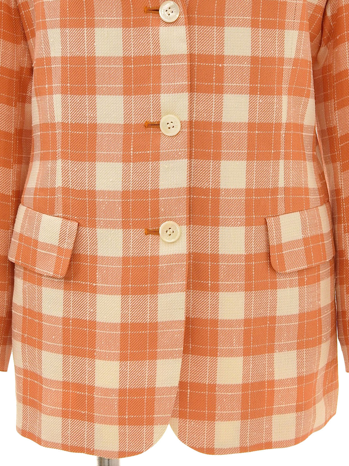 シルクチェックパターンテーラードジャケット オレンジ/アイボリー