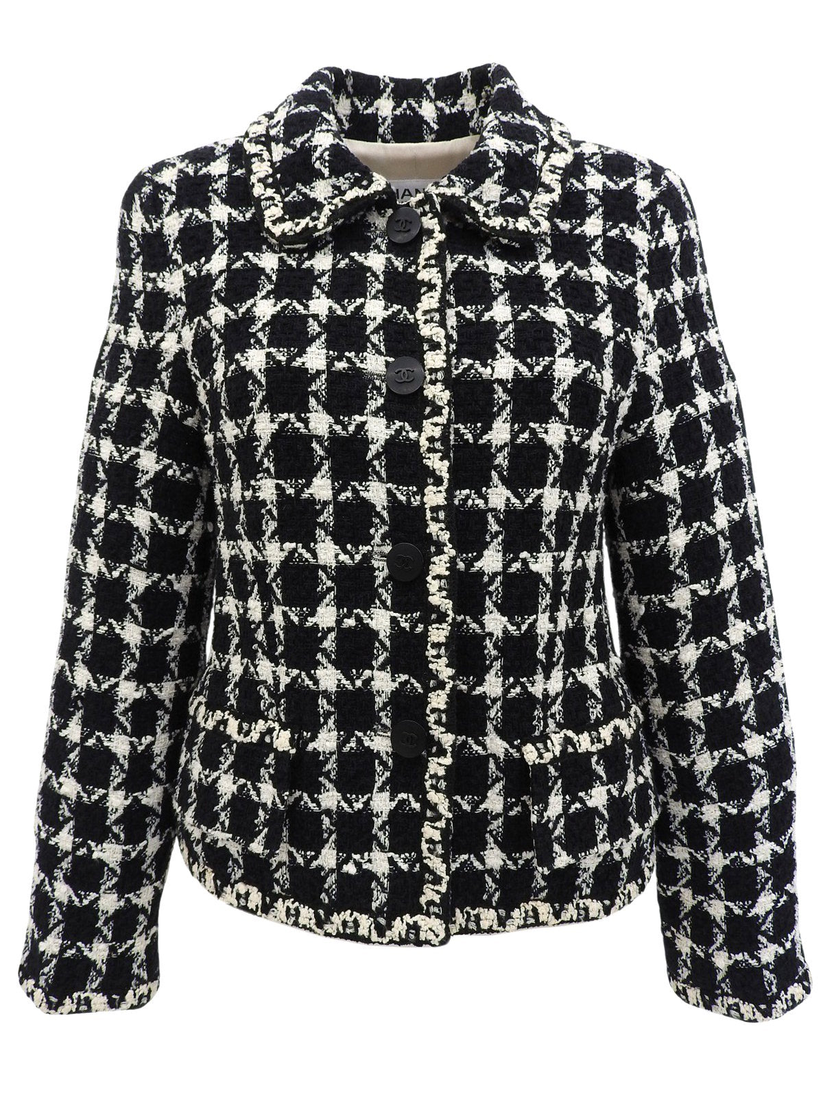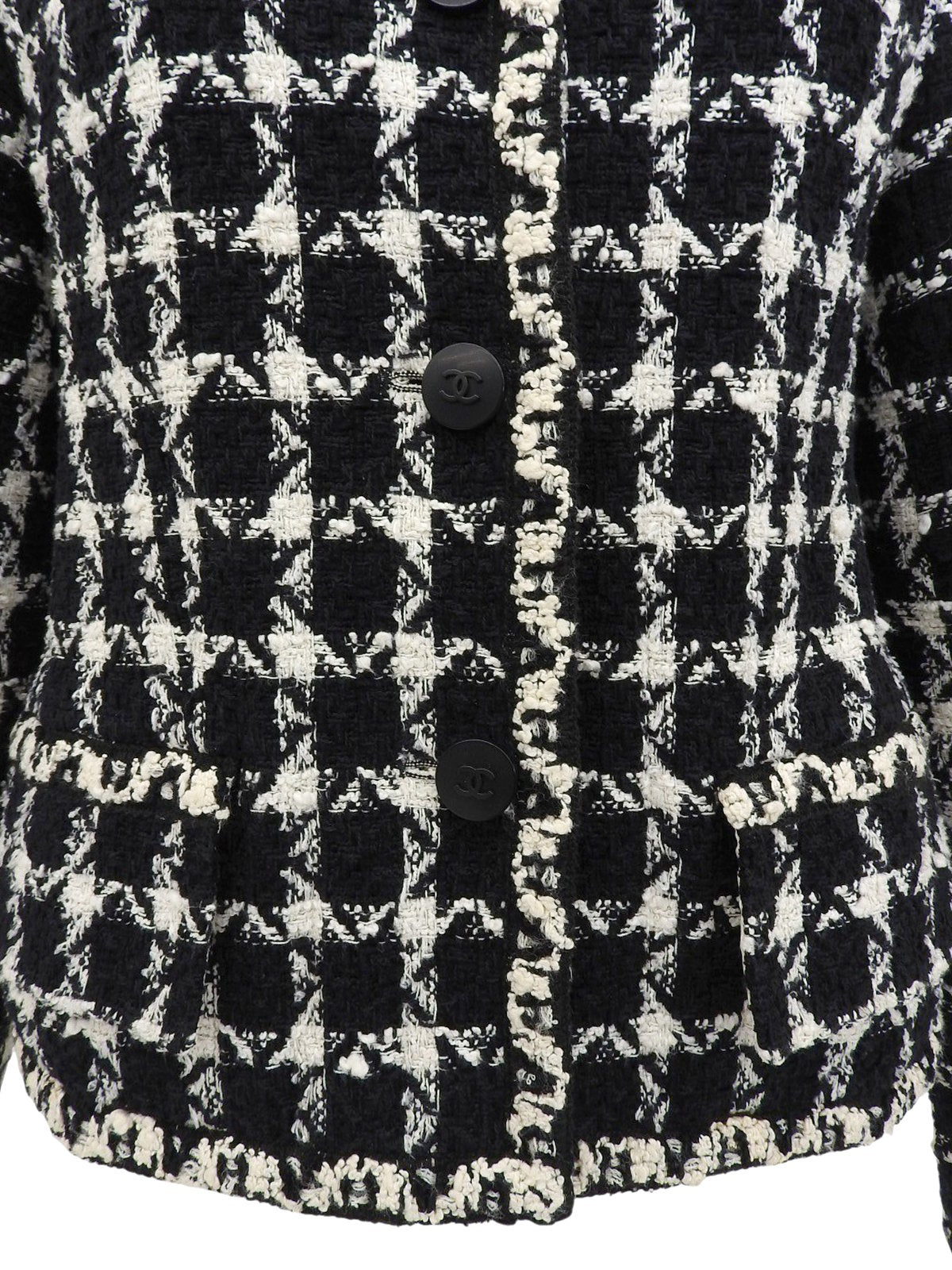 ツイードチェックパターンCCマークボタンジャケット ブラック/ホワイト