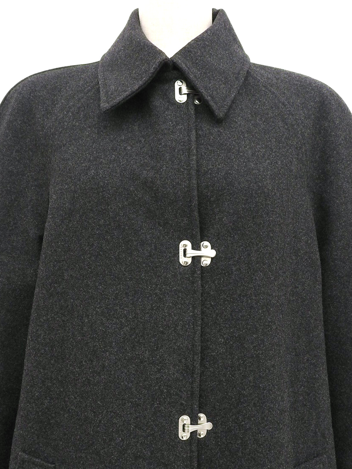 ロゴクラスプステンカラーロングコート チャコールグレー