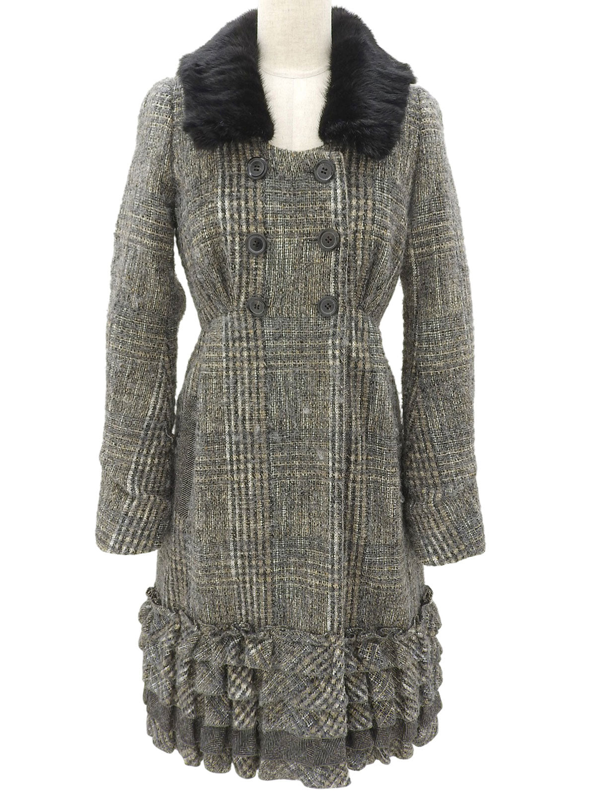 ツイードフリルデザインロングコート グレー/マルチ #36