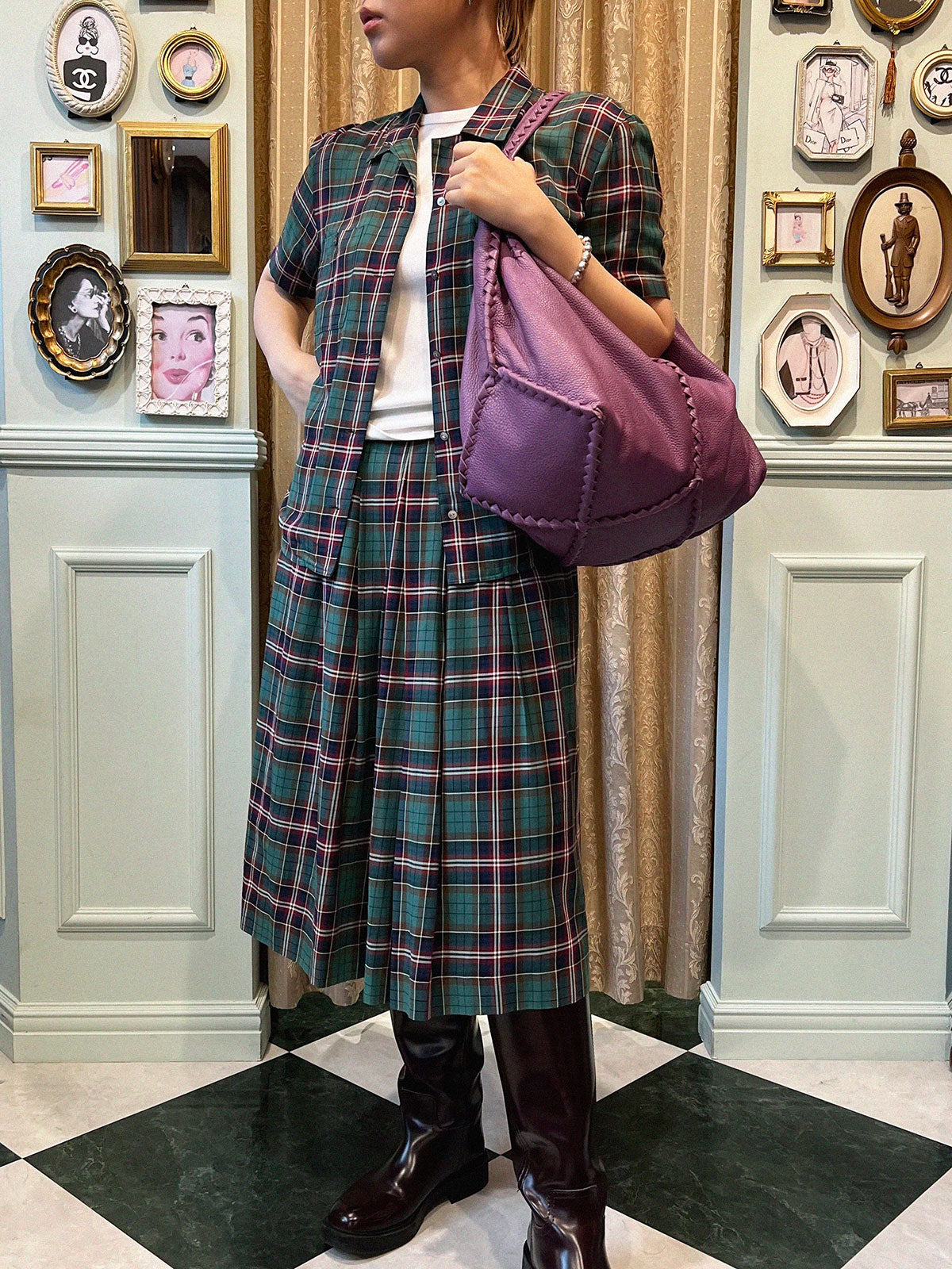 チェックパターンロゴボタンセットアップ グリーン/ネイビー/レッド