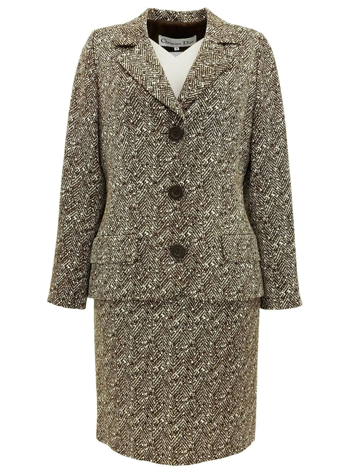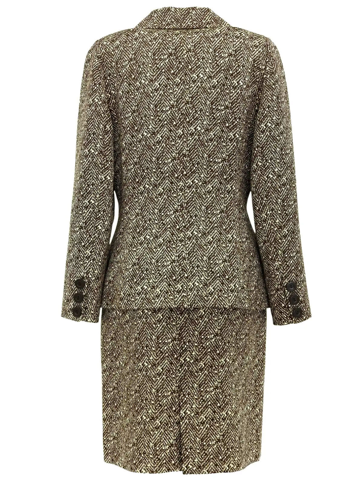 ウールヘリンボーンパターンロゴボタンセットアップ ベージュ/ブラウン
