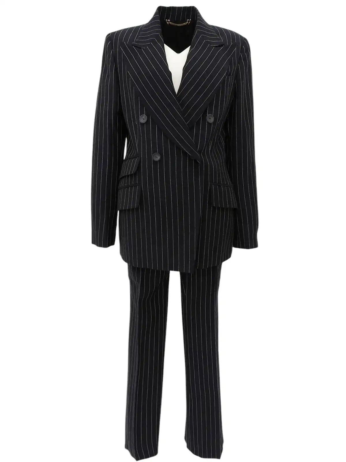 ウールストライプパターンセットアップ ブラック/ホワイト