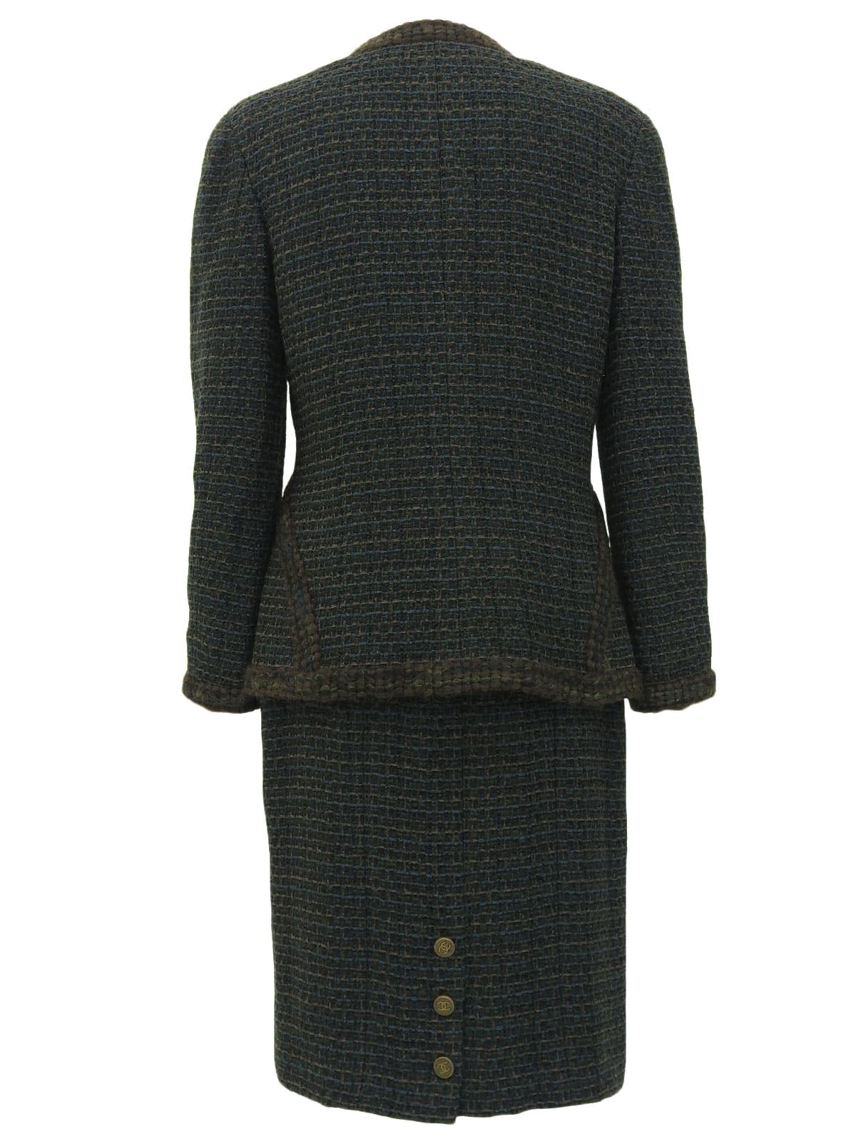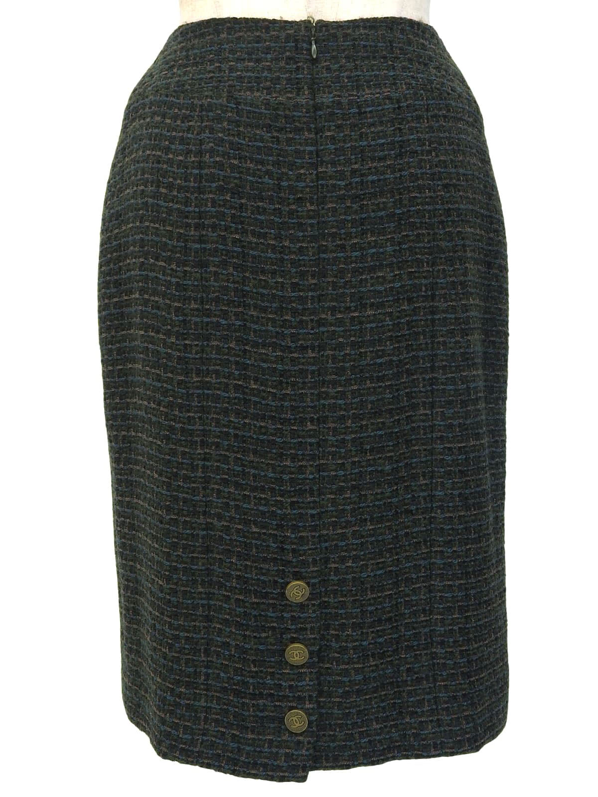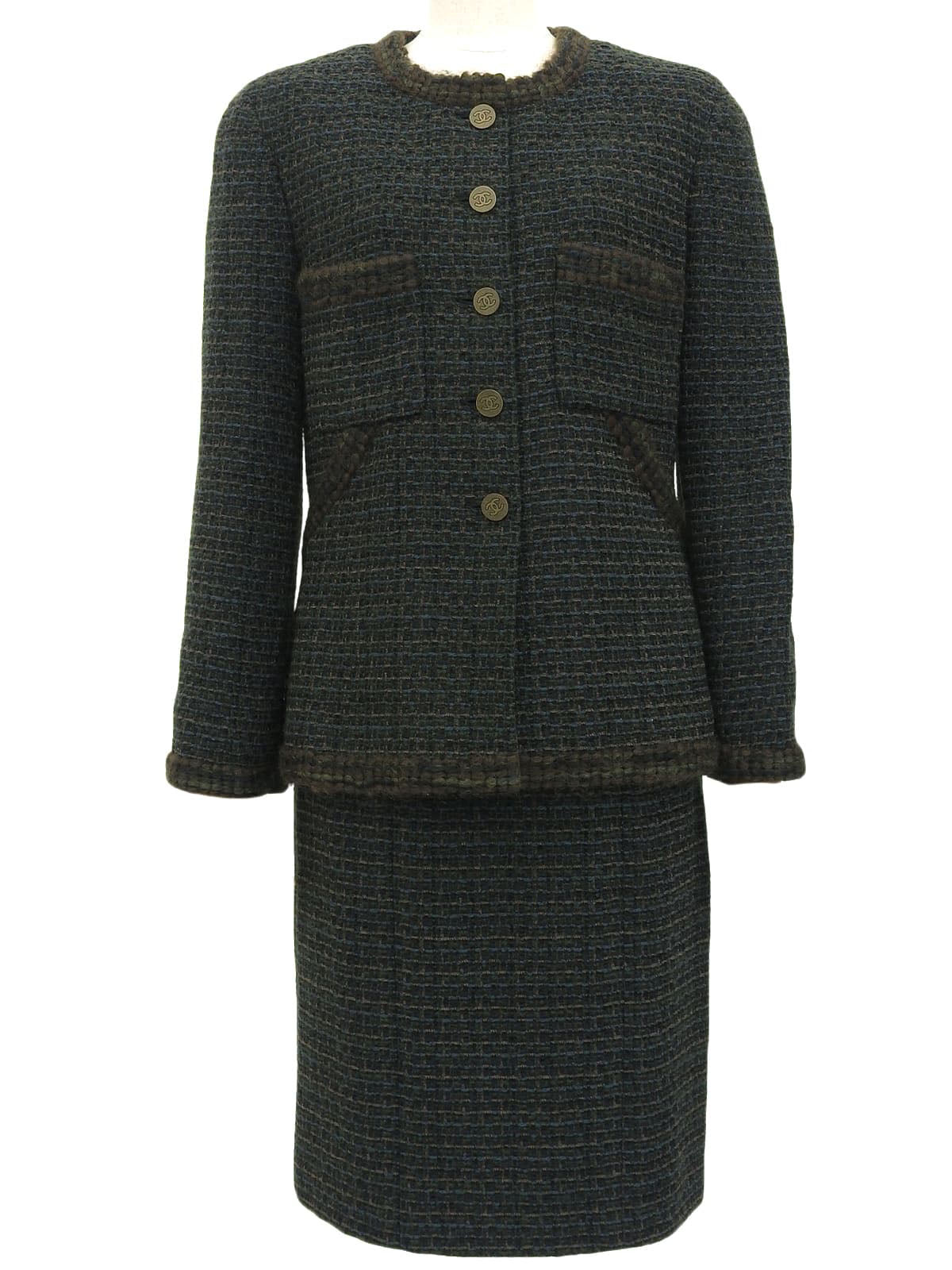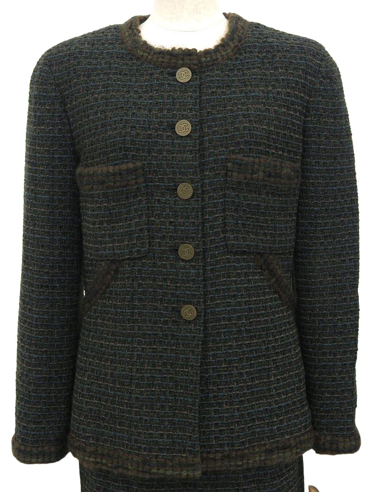 1998年製 ツイードCCマークボタンセットアップ ダークグリーン/マルチ