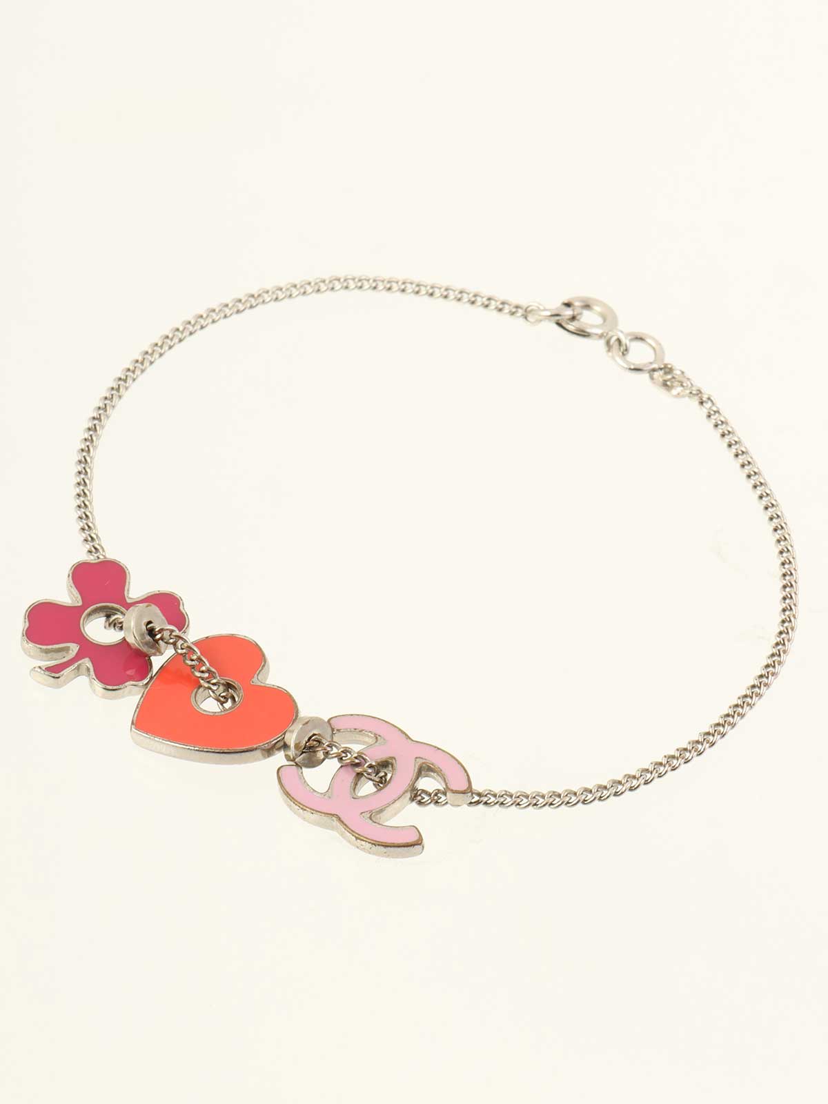 2004年製 ハートクローバーCCマークブレスレット シルバー/ピンク/レッド