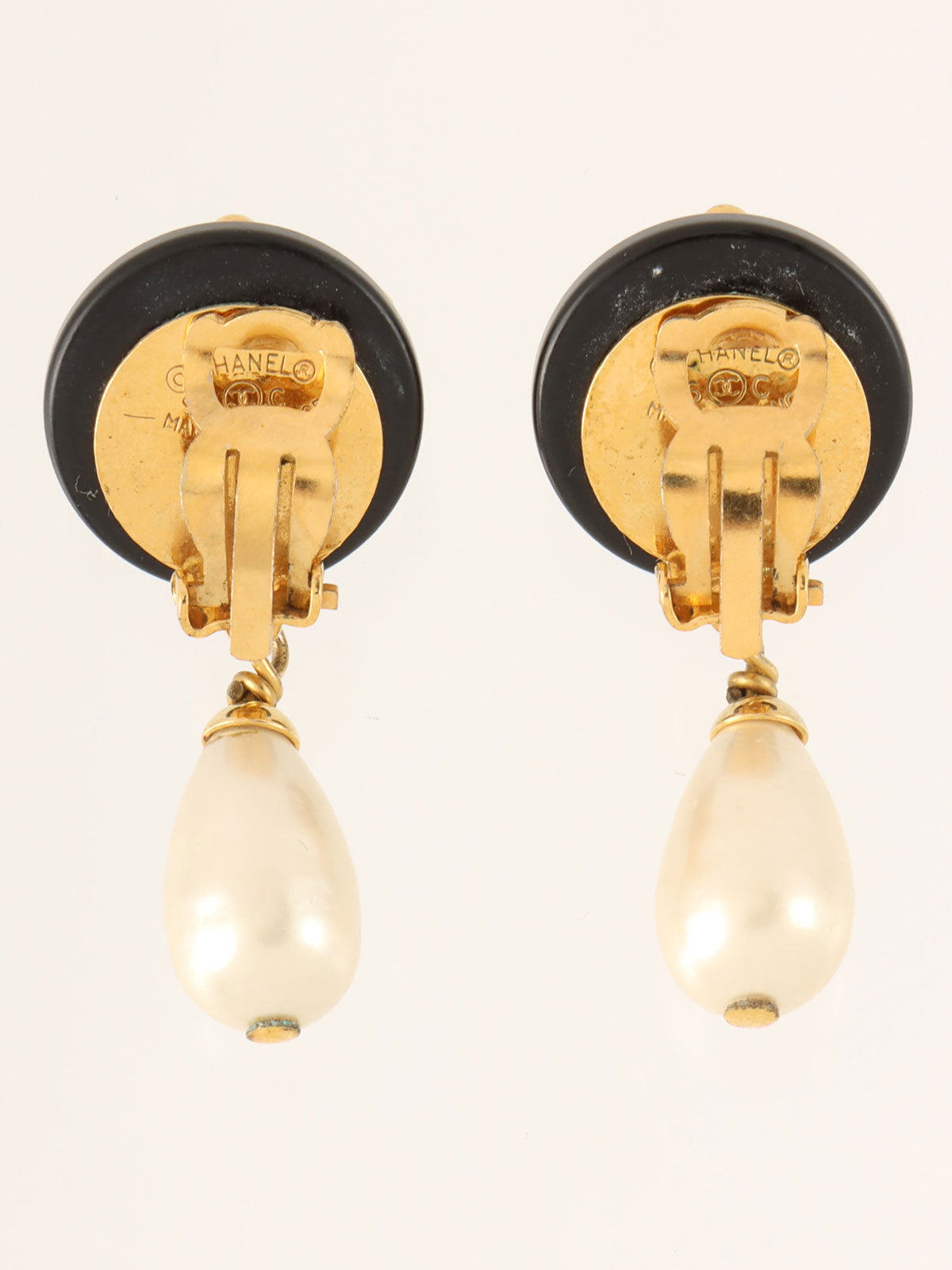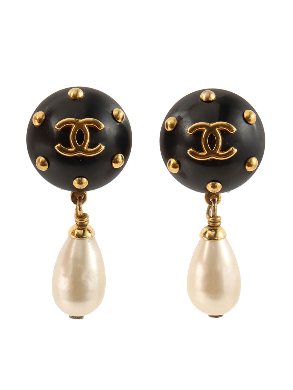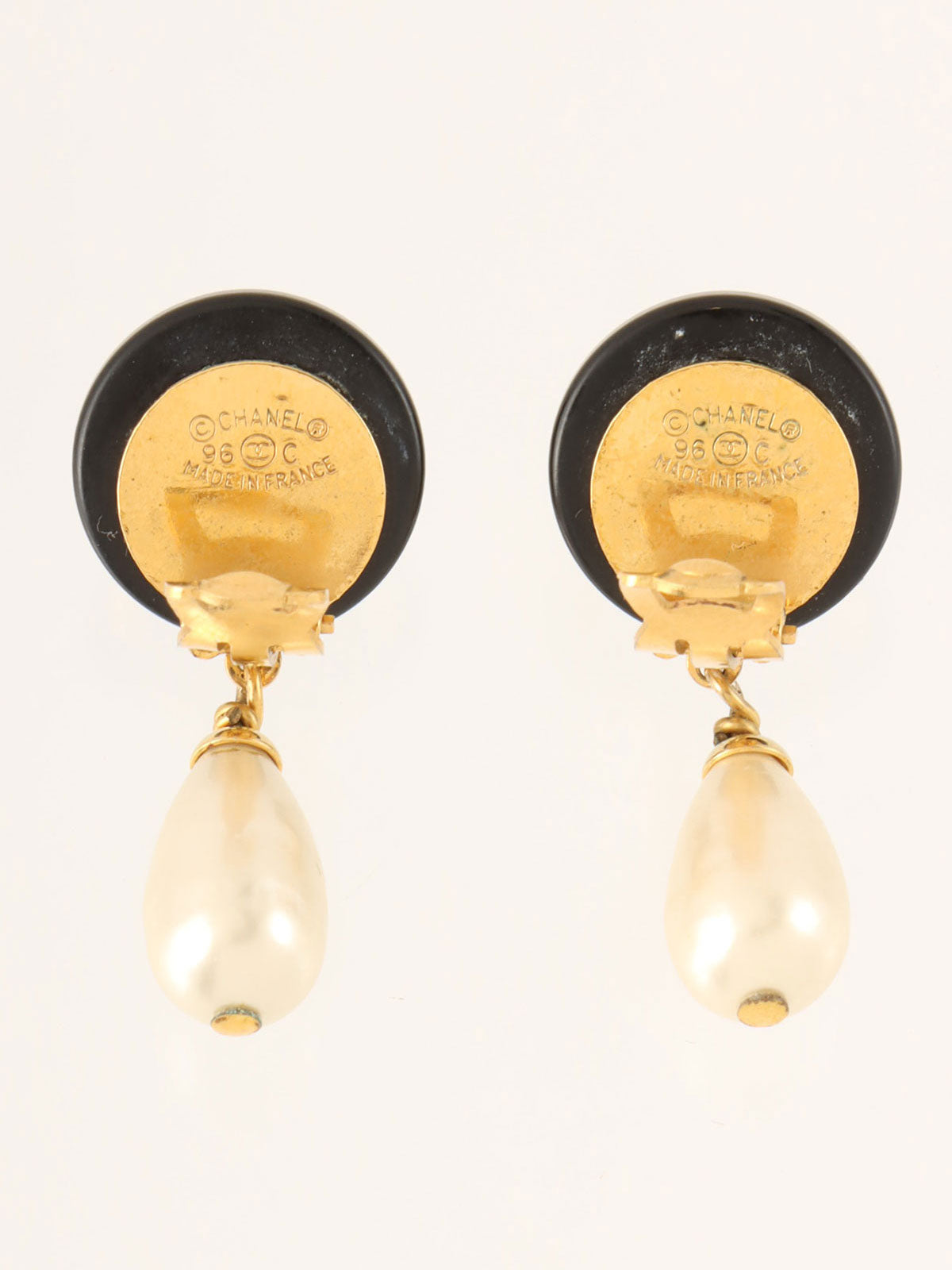 1996年製 ラウンドドットCCマークパールスウィングイヤリング ゴールド/ブラック/ホワイト