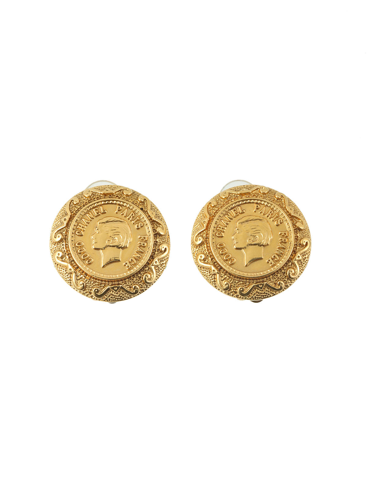 1996年製 ラウンドマドモアゼルデザインイヤリング ゴールド
