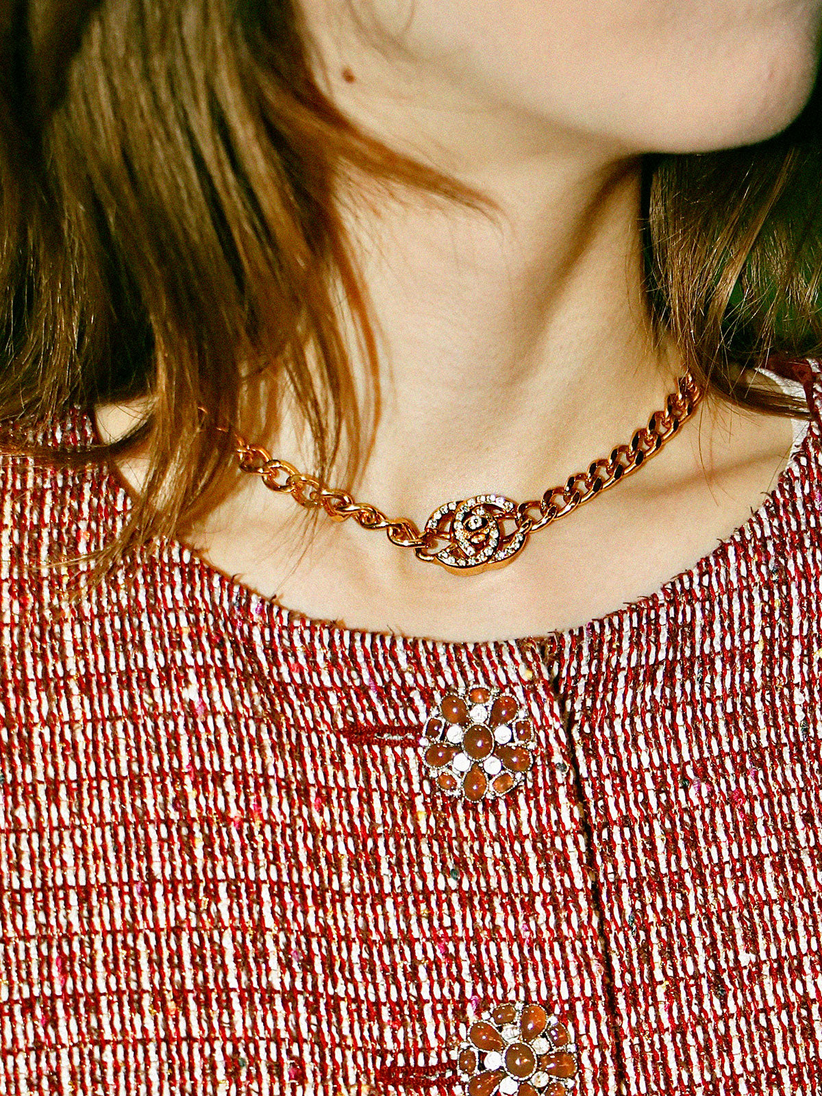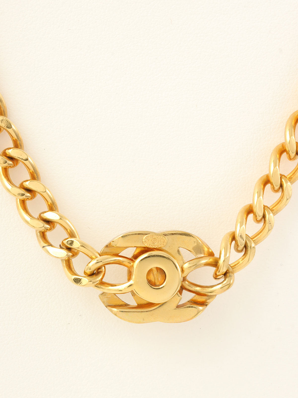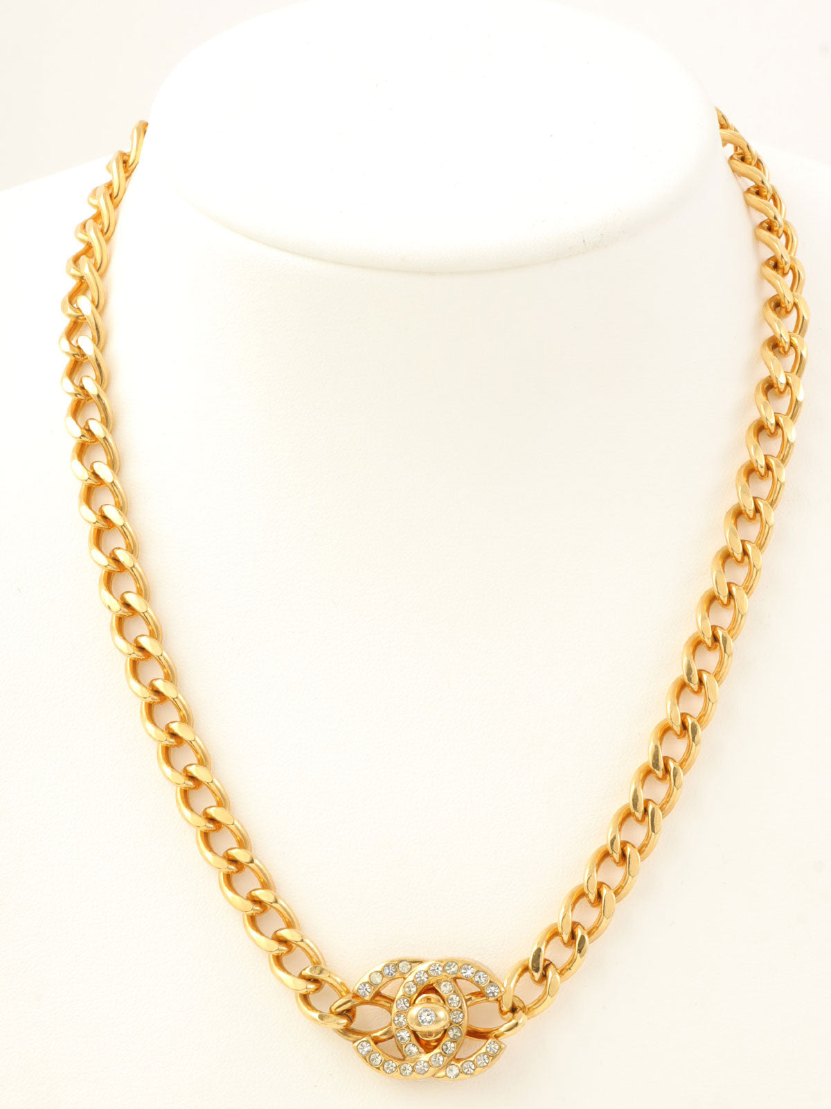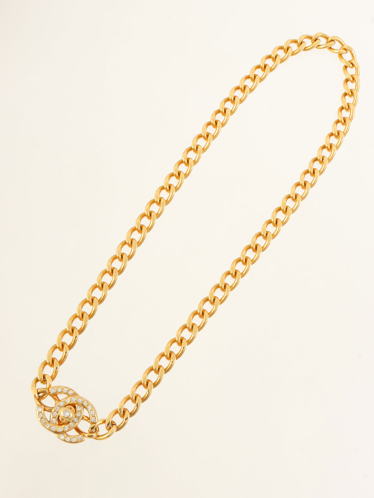 1996年製 ラインストーンCCターンロックネックレス ゴールド