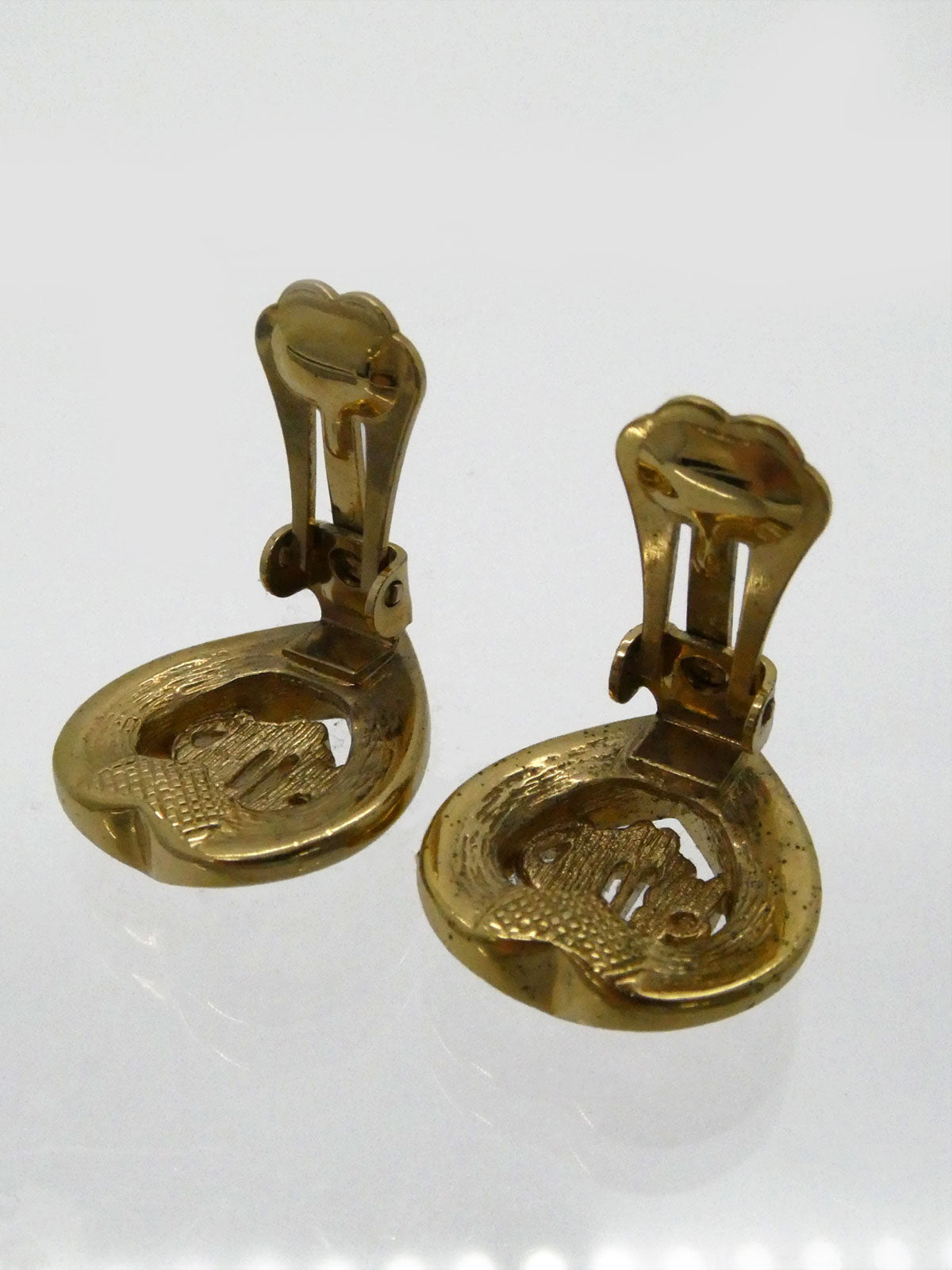 ラインストーンハートロゴエンブレムイヤリング ゴールド