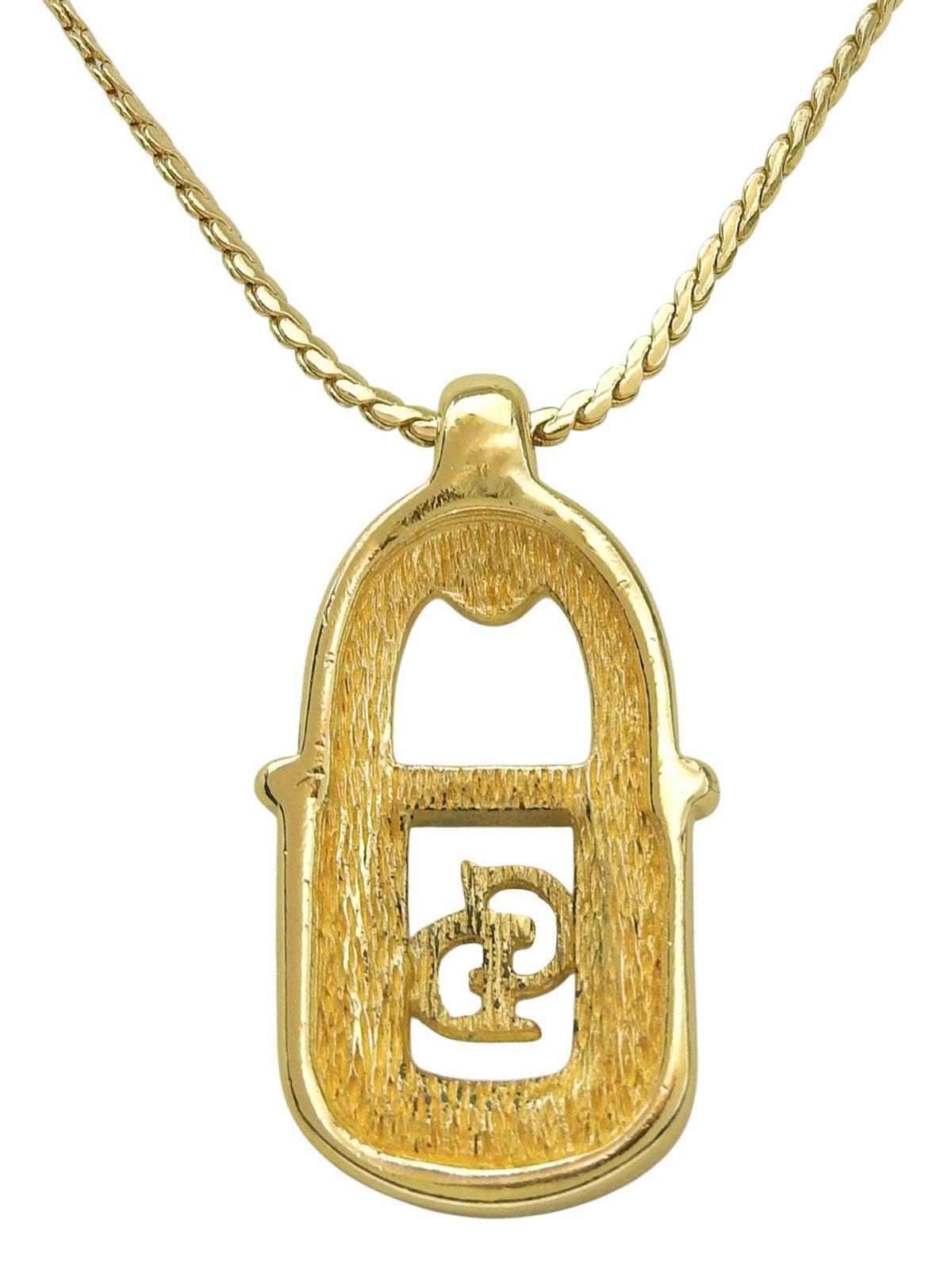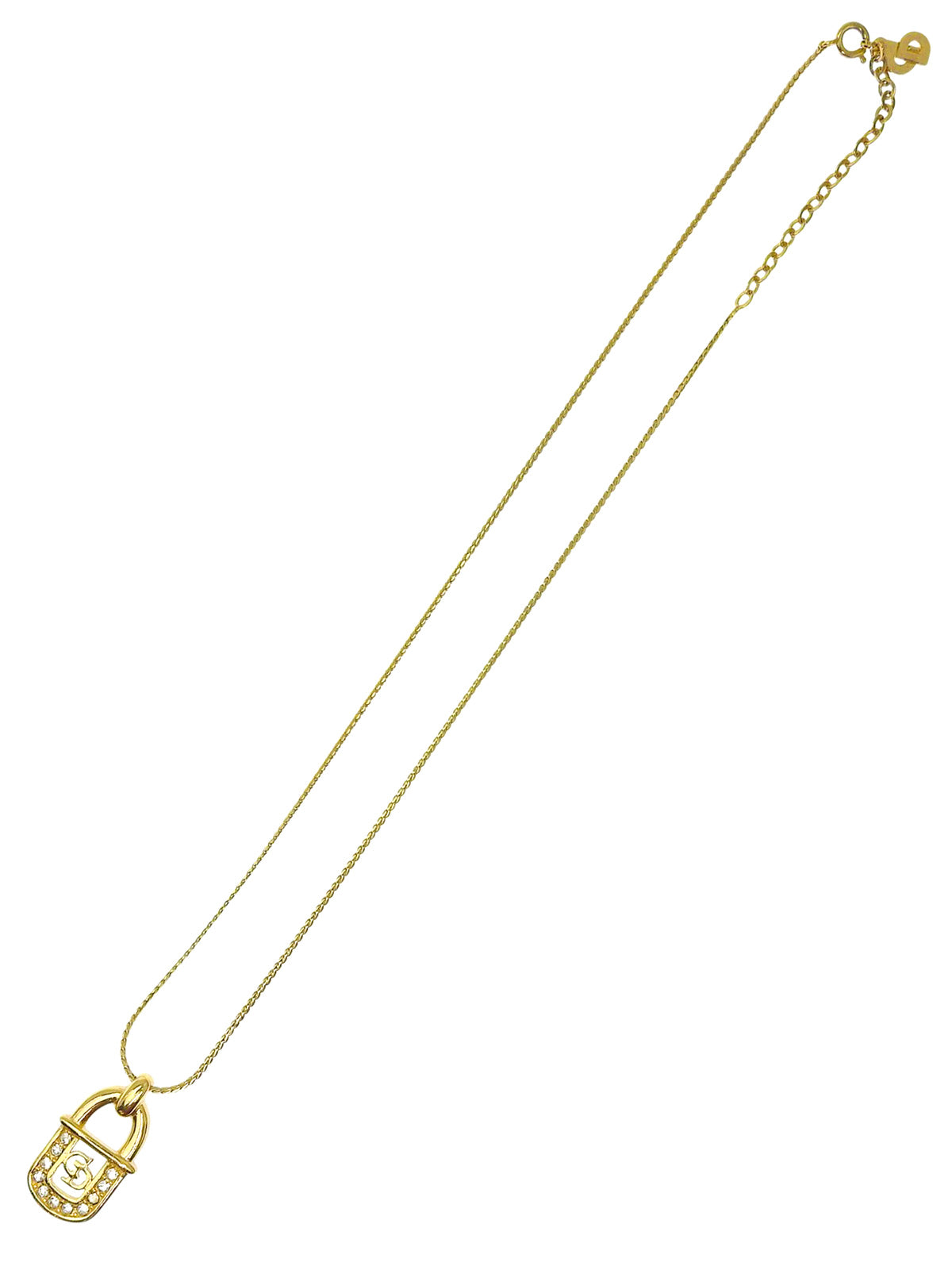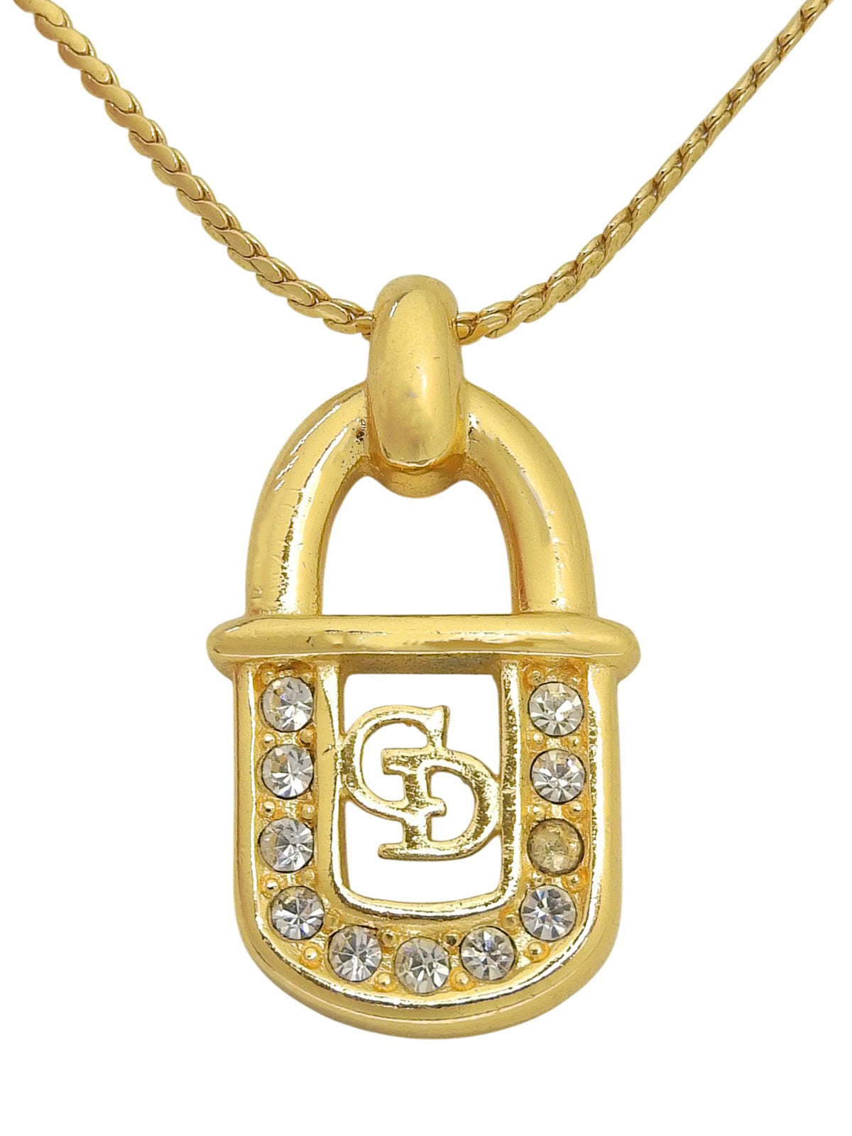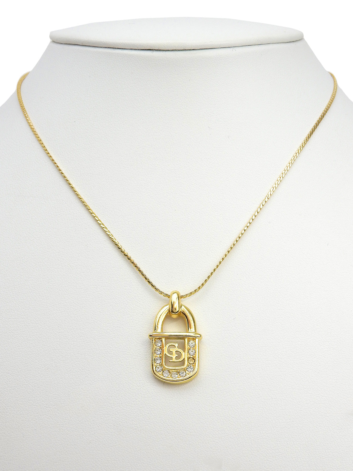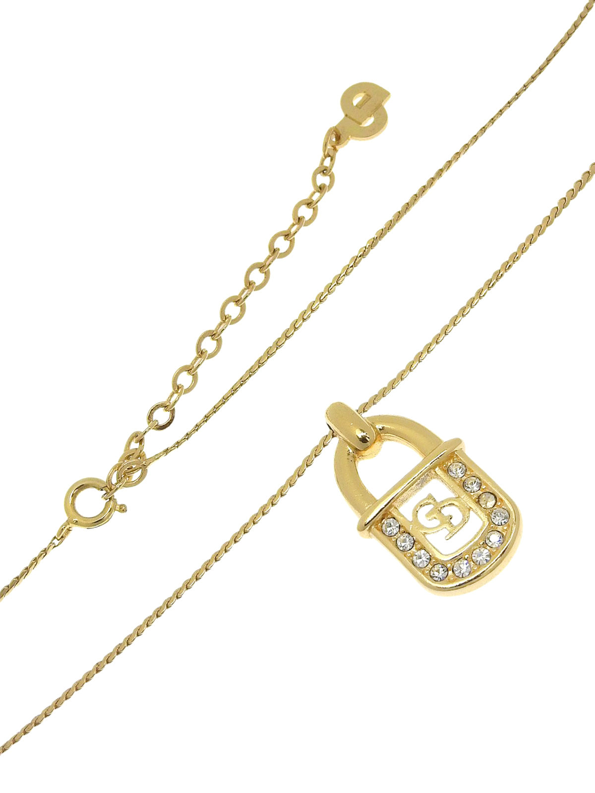 ラインストーンロゴパドロックモチーフネックレス ゴールド