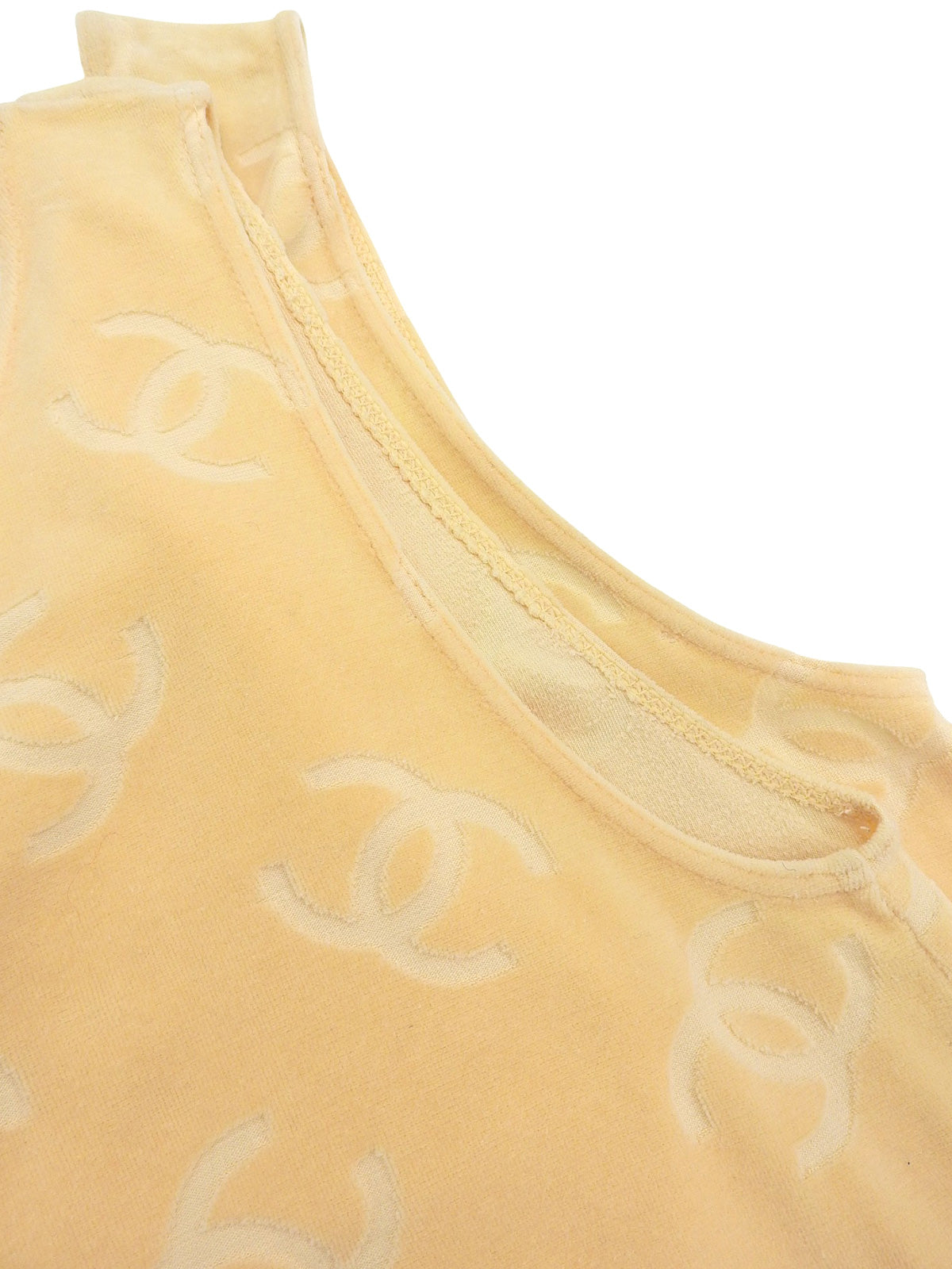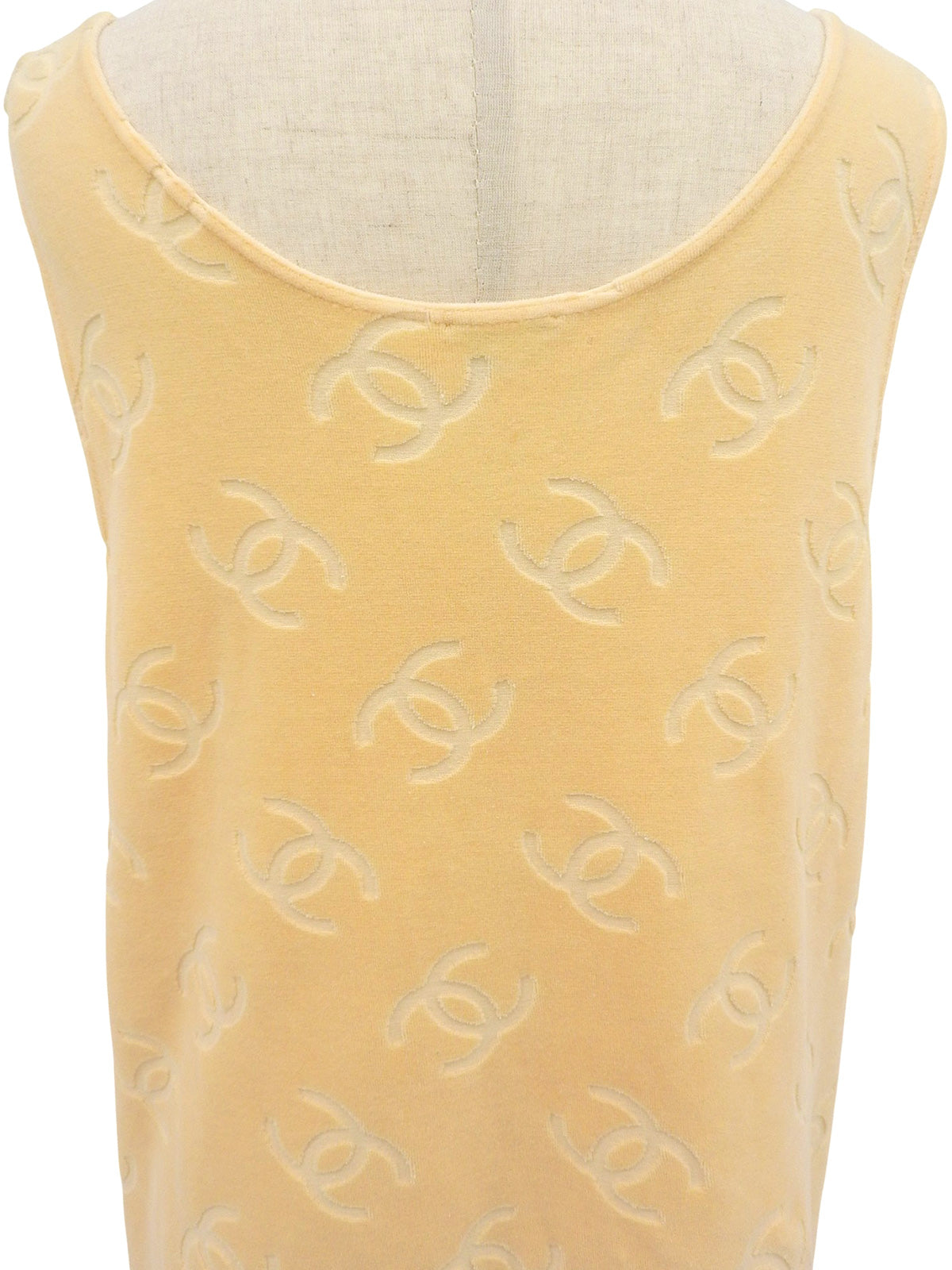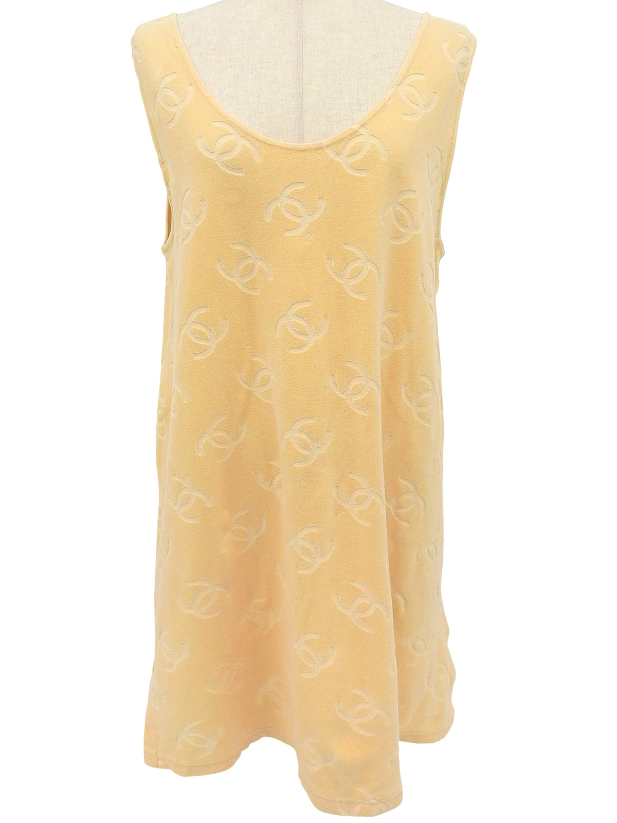 1996年製 ベルベットCCマークノースリーブワンピース クリームイエロー