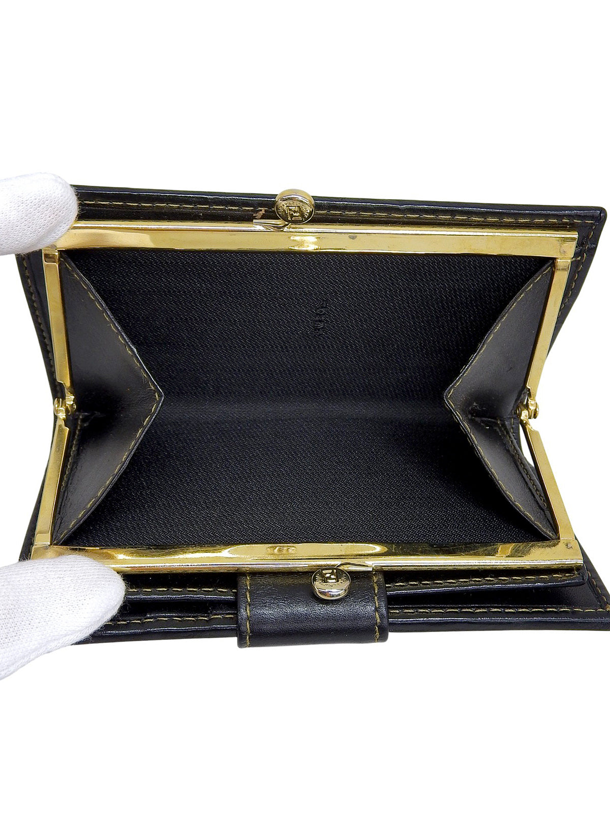 ペカンパターンがま口ウォレット ブラック/ブラウン
