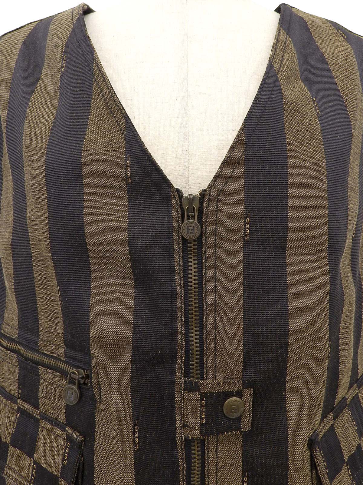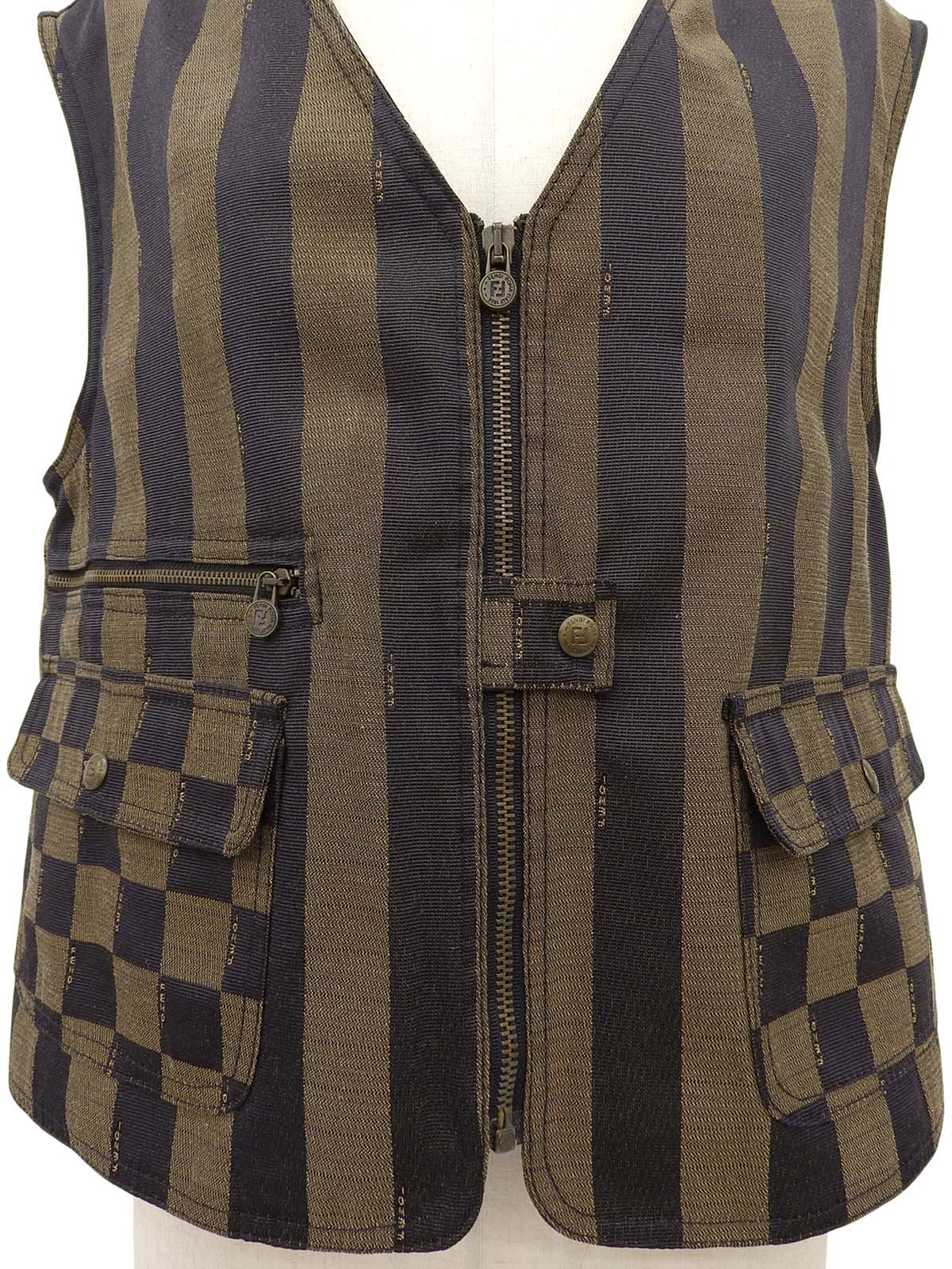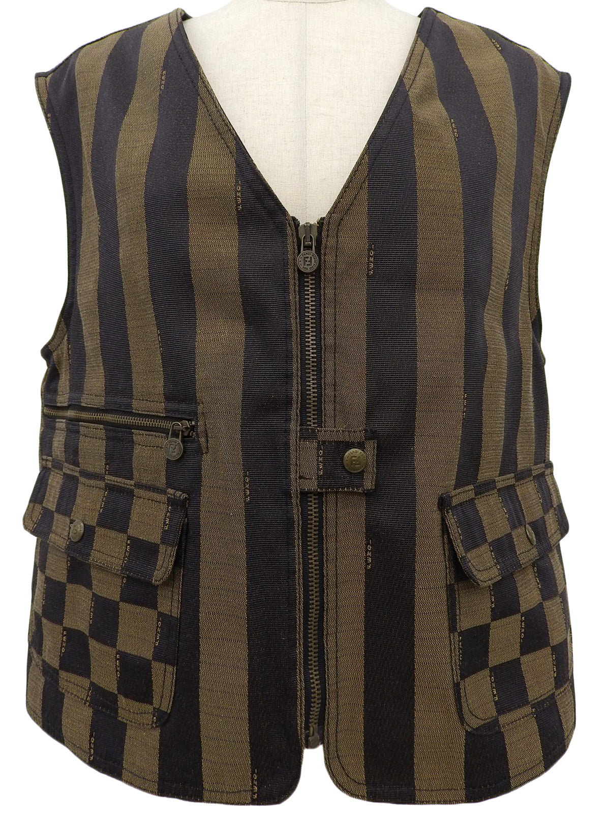 ペカンパターンロゴボタンベスト ブラウン/ブラック