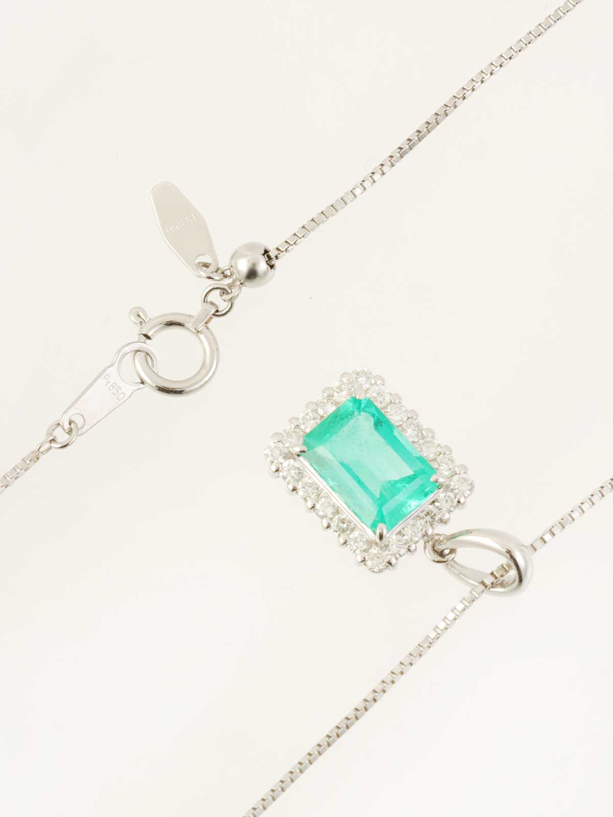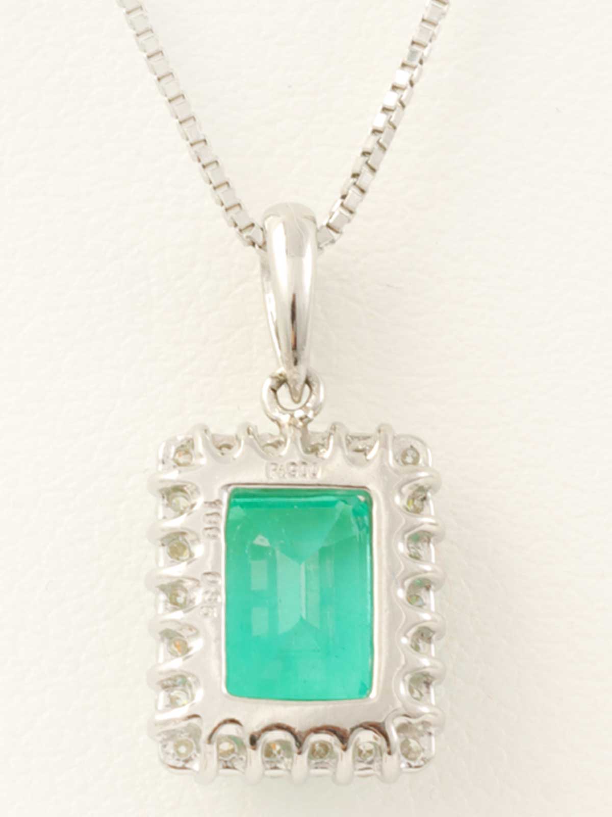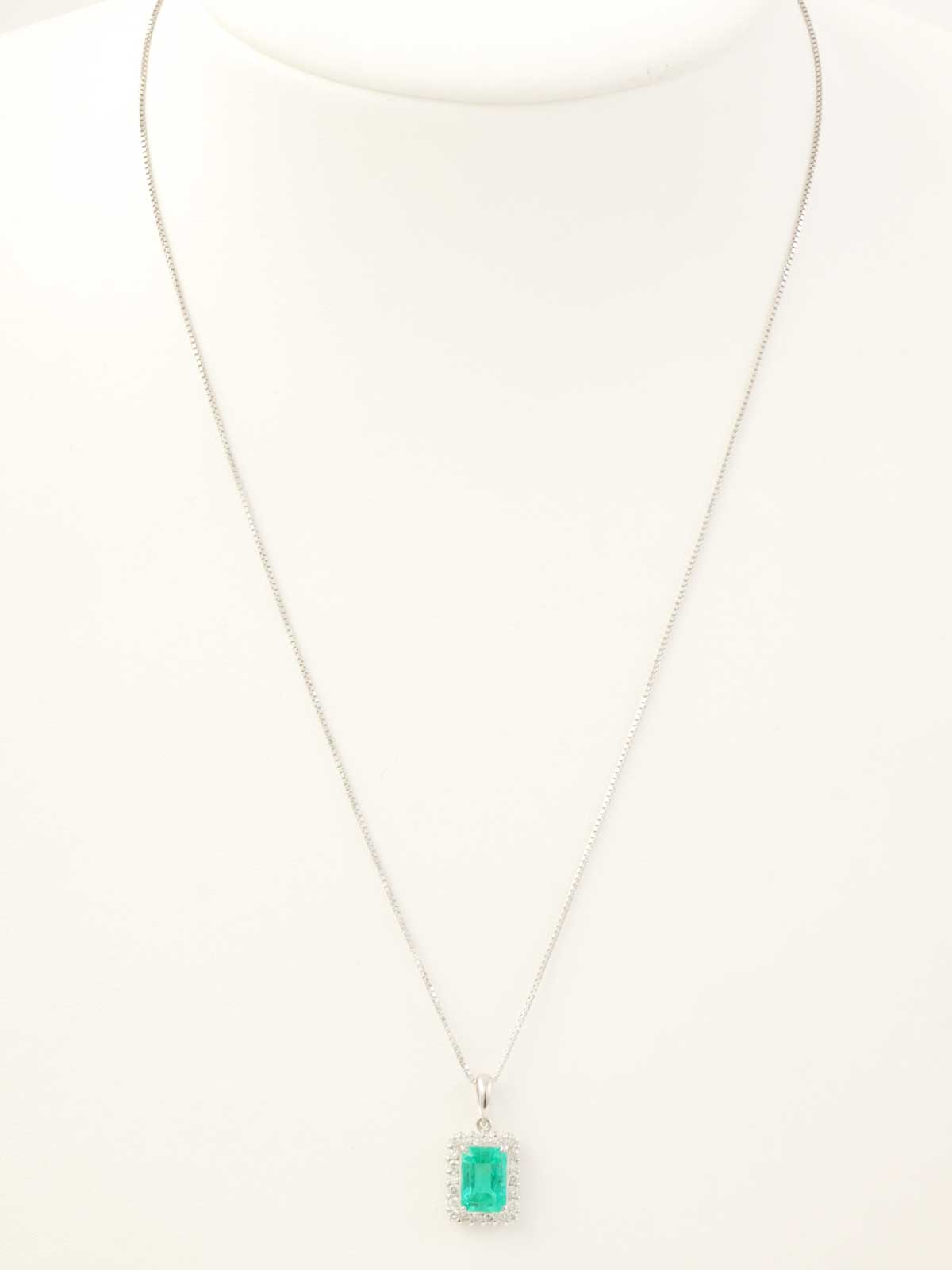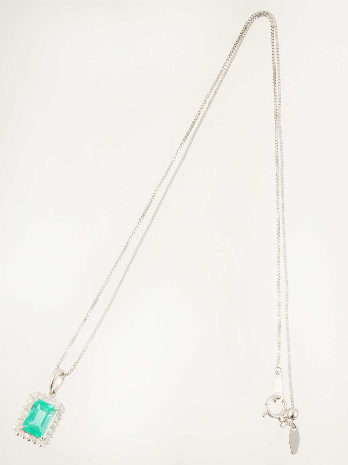 プラチナエメラルドダイヤモンドスクエアネックレス シルバー/グリーン