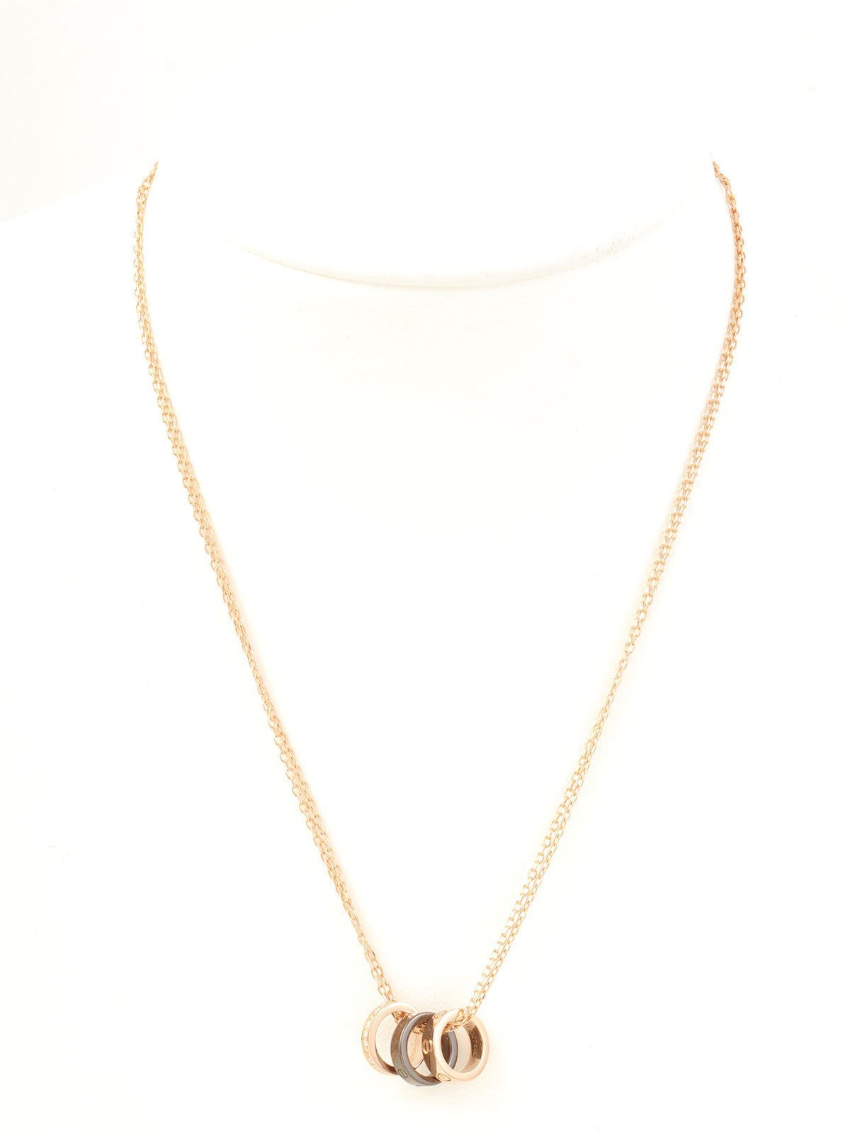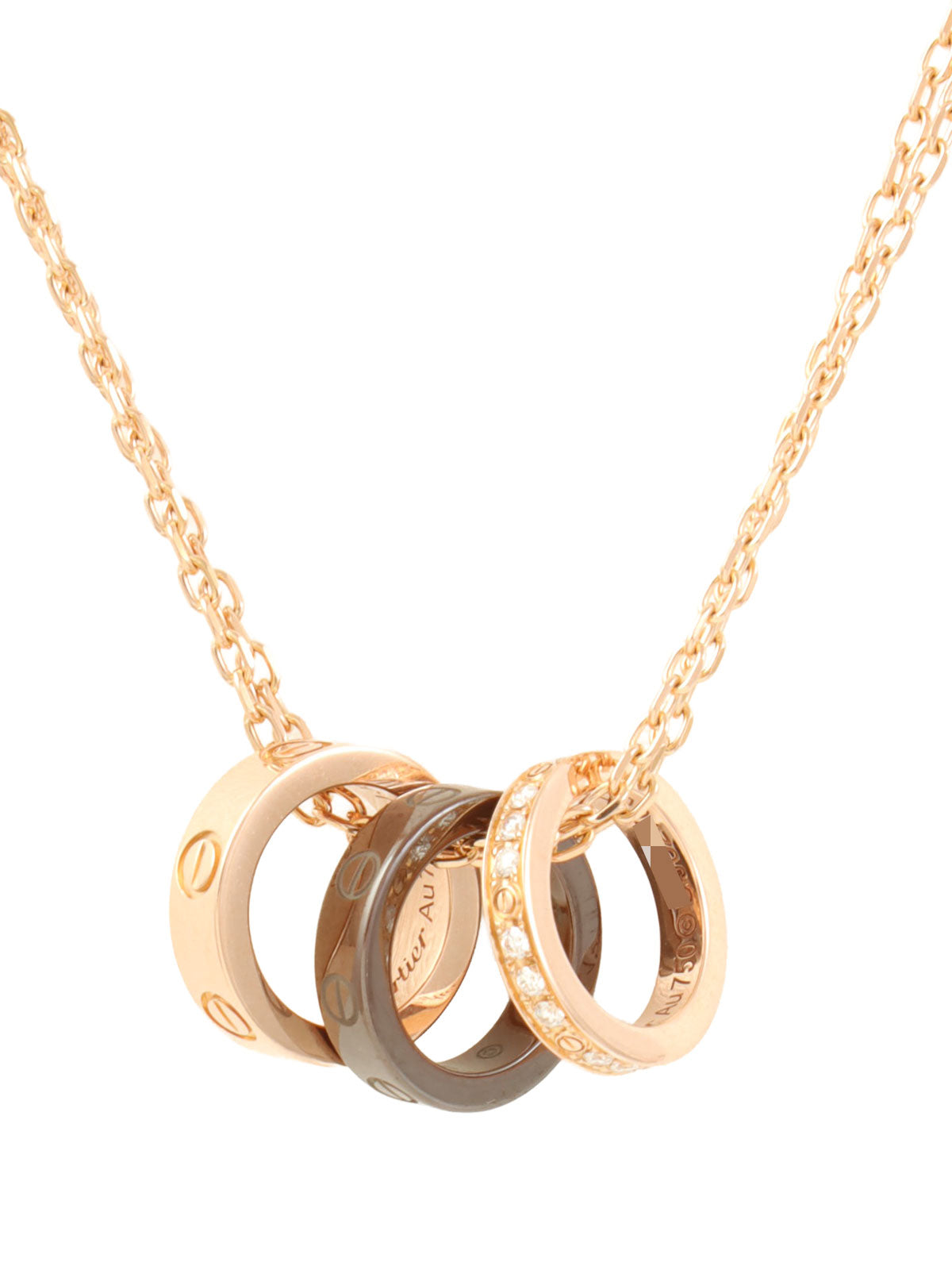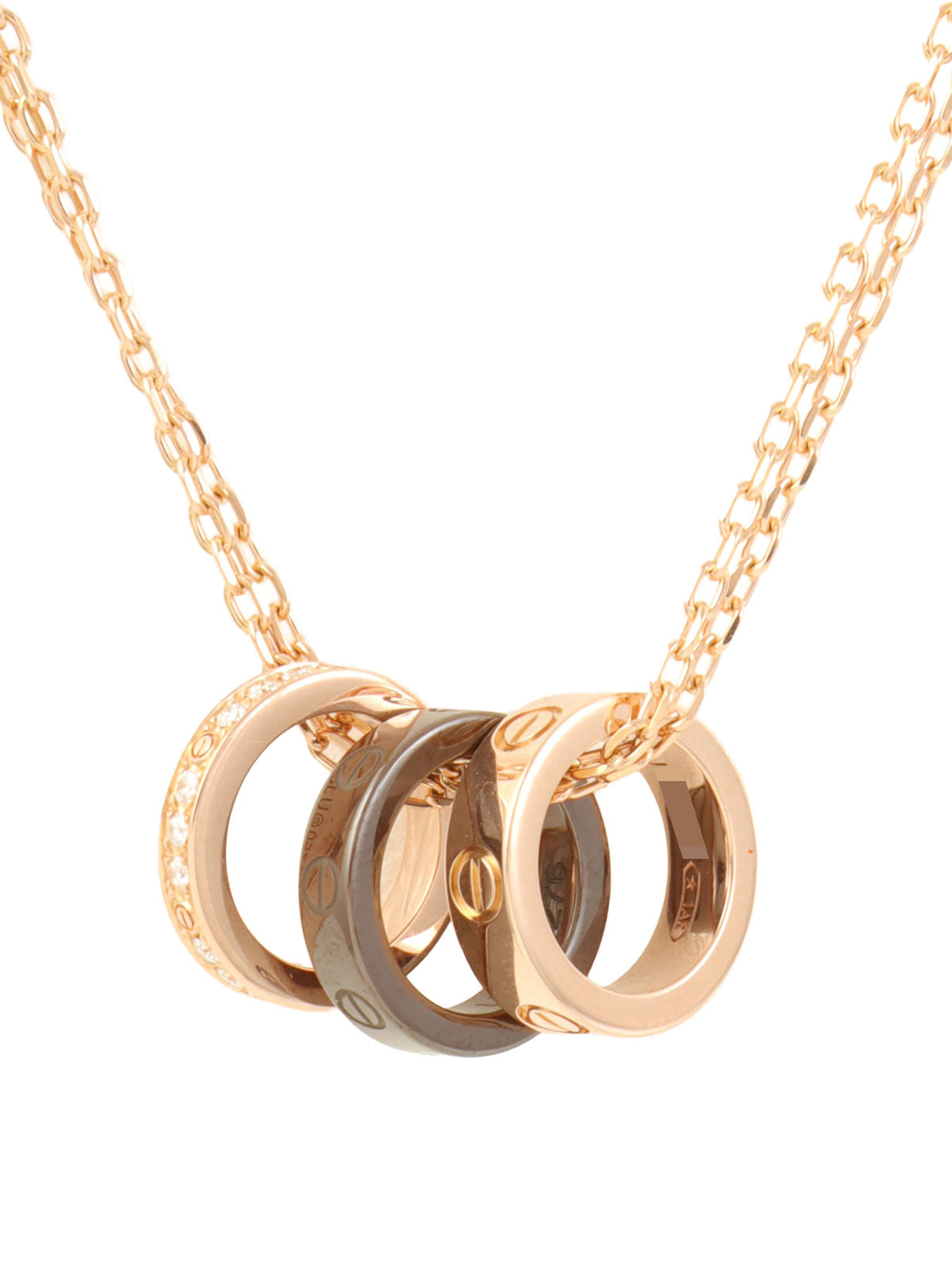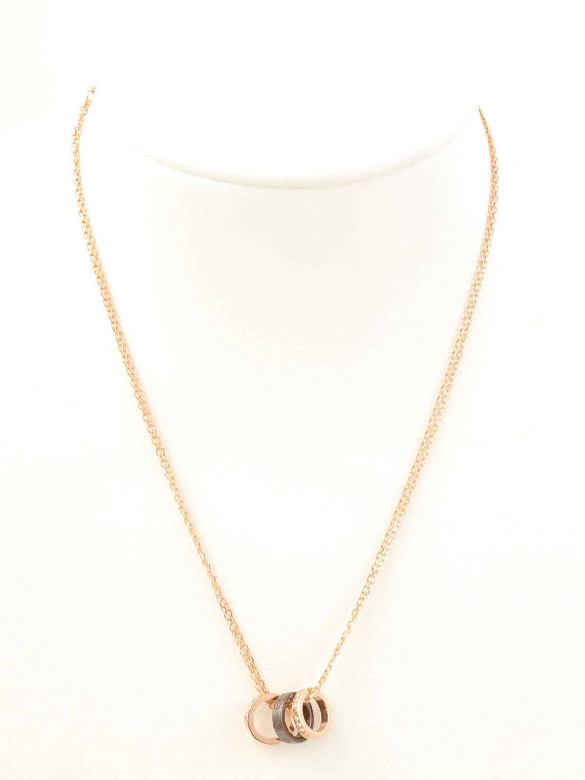 18Kダイヤモンドラブスリーフープネックレス ピンクゴールド