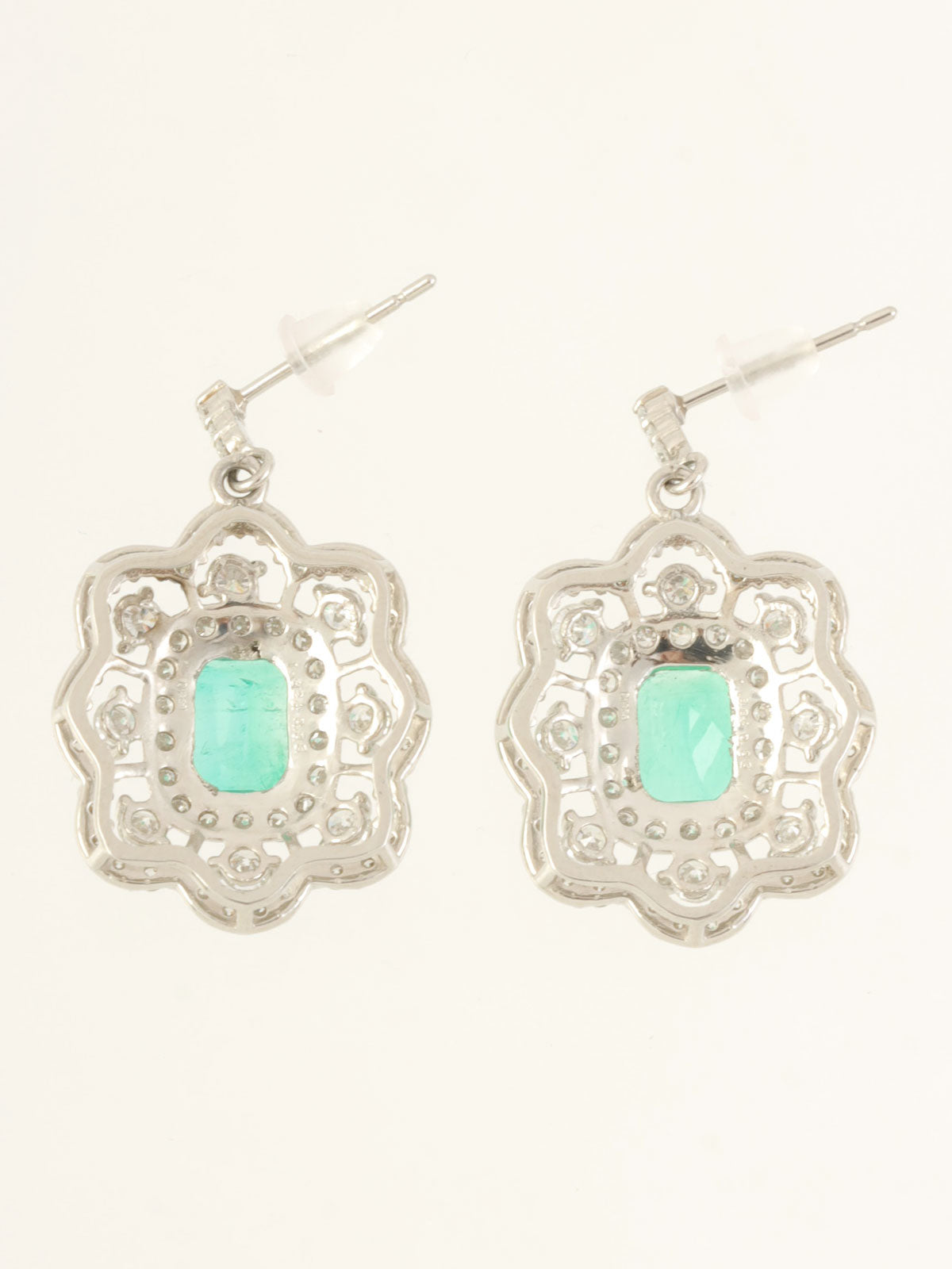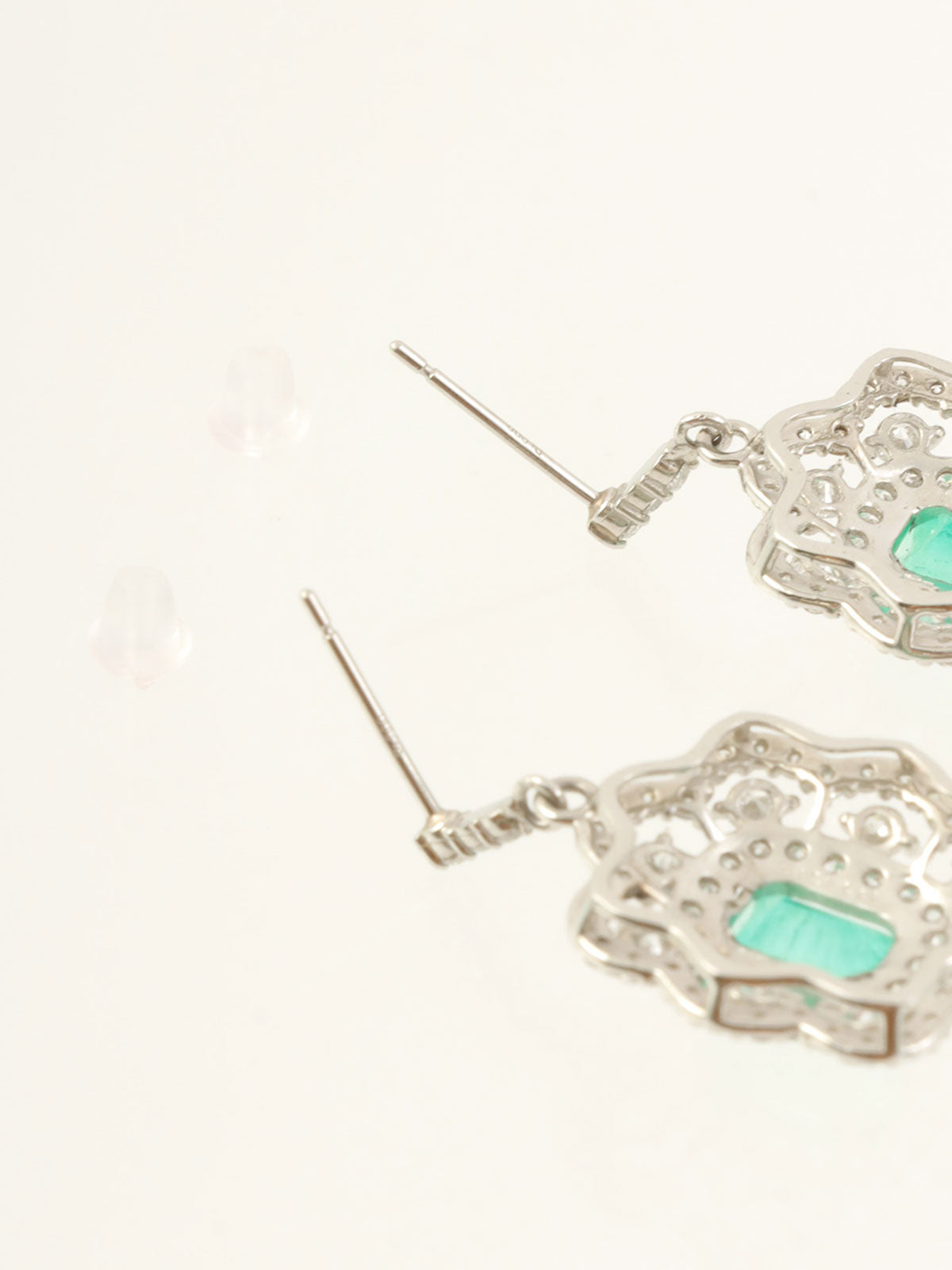 プラチナエメラルドダイヤモンドデザインピアス シルバー/グリーン