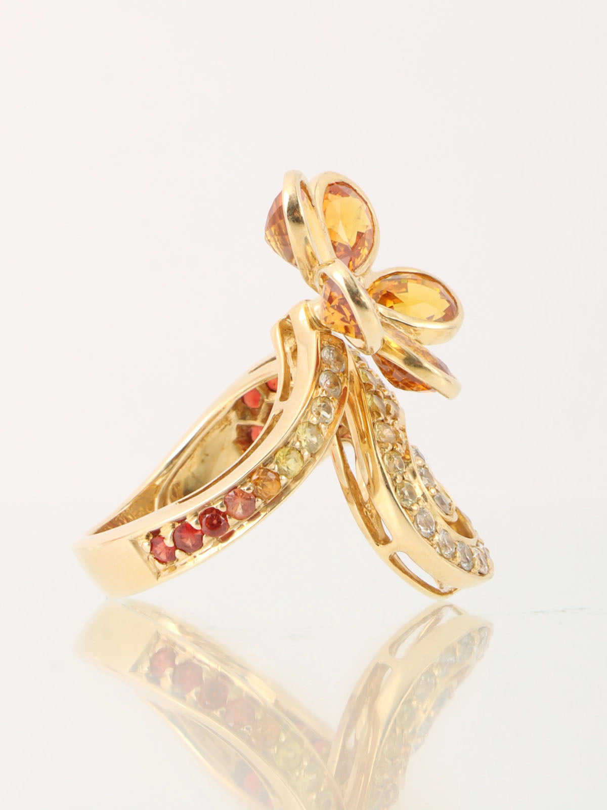 18Kサファイアダイアモンドフラワーモチーフリング オレンジ/ゴールド