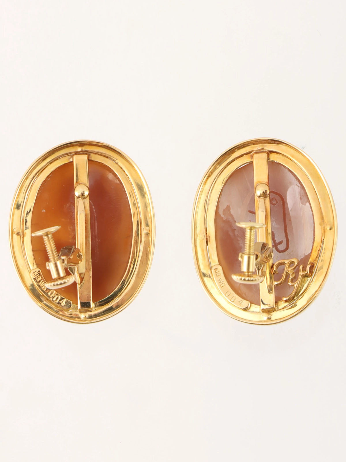 18Kシェルダイヤモンドカメオイヤリング ゴールド/ホワイト/ブラウン