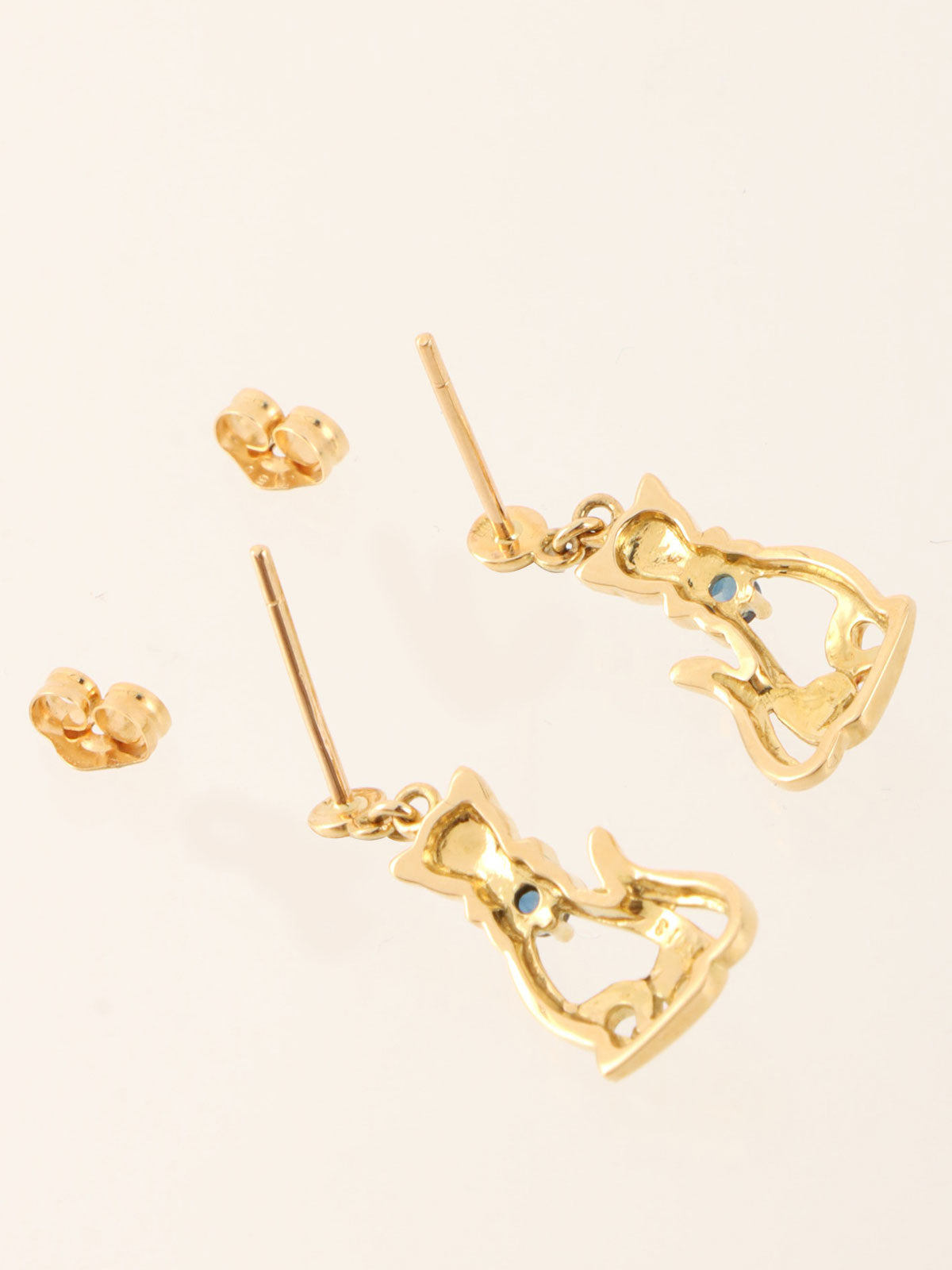 18Kサファイアキャットモチーフピアス ゴールド/ブルー
