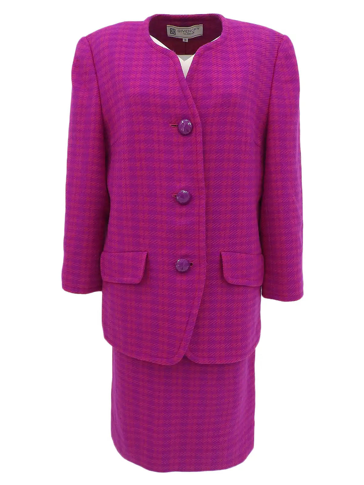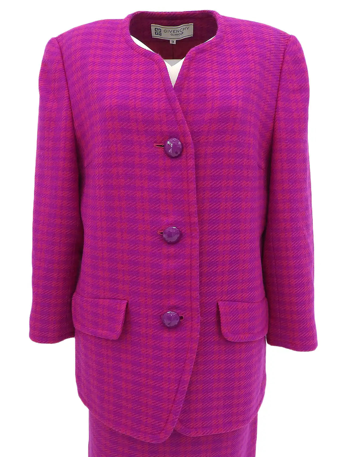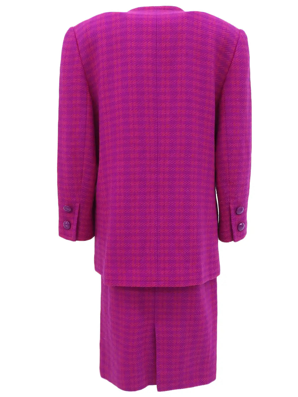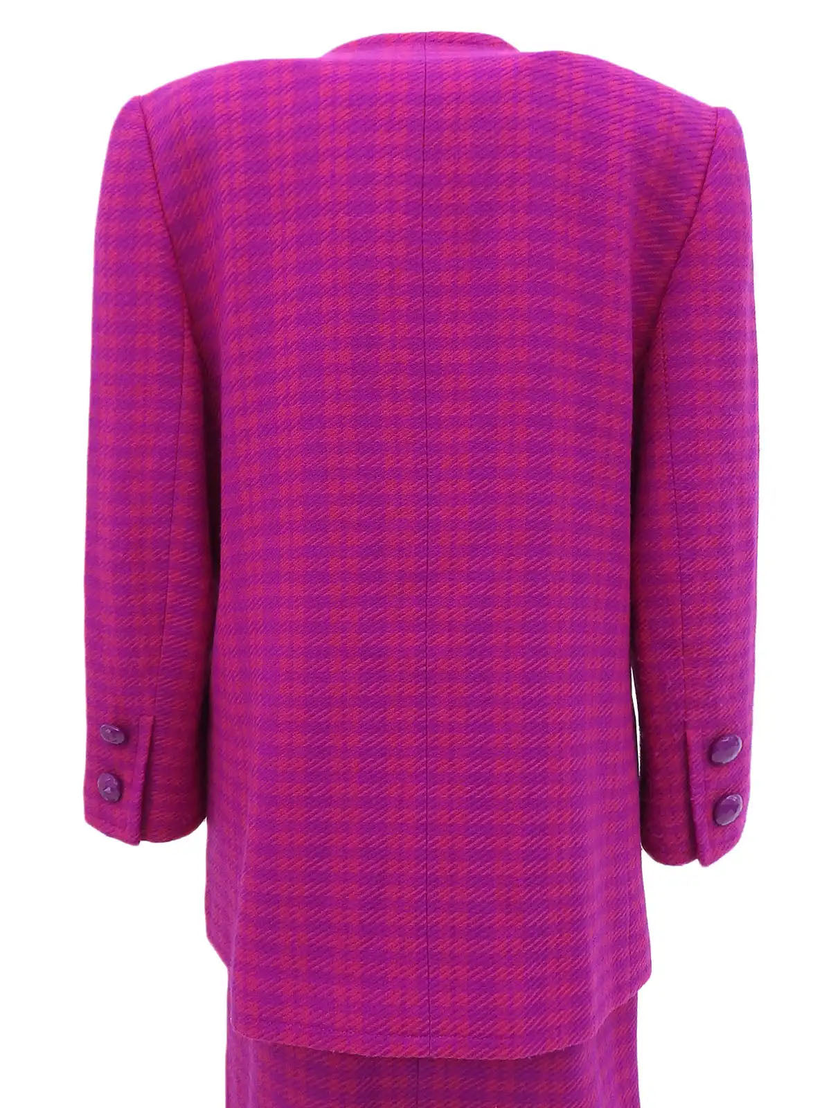 チェックパターンノーカラーセットアップ ピンク/パープル