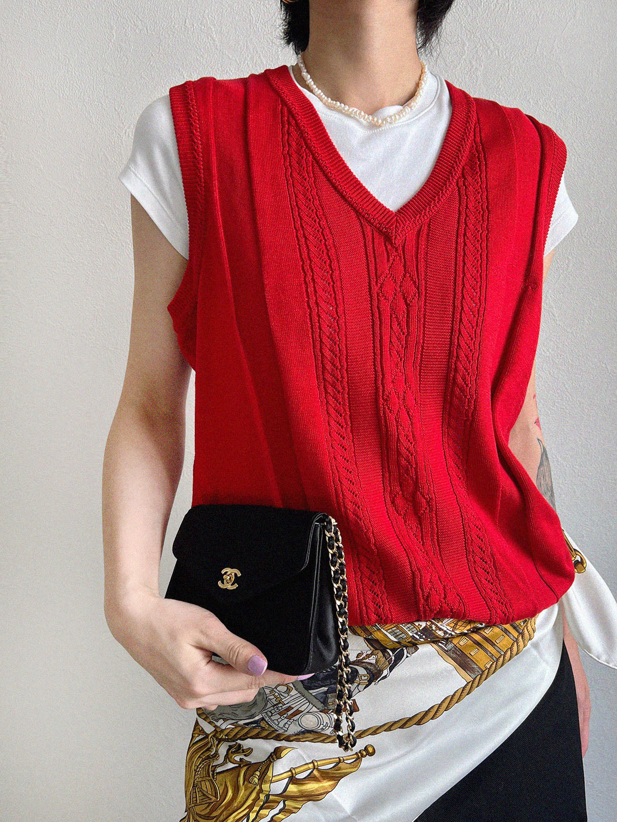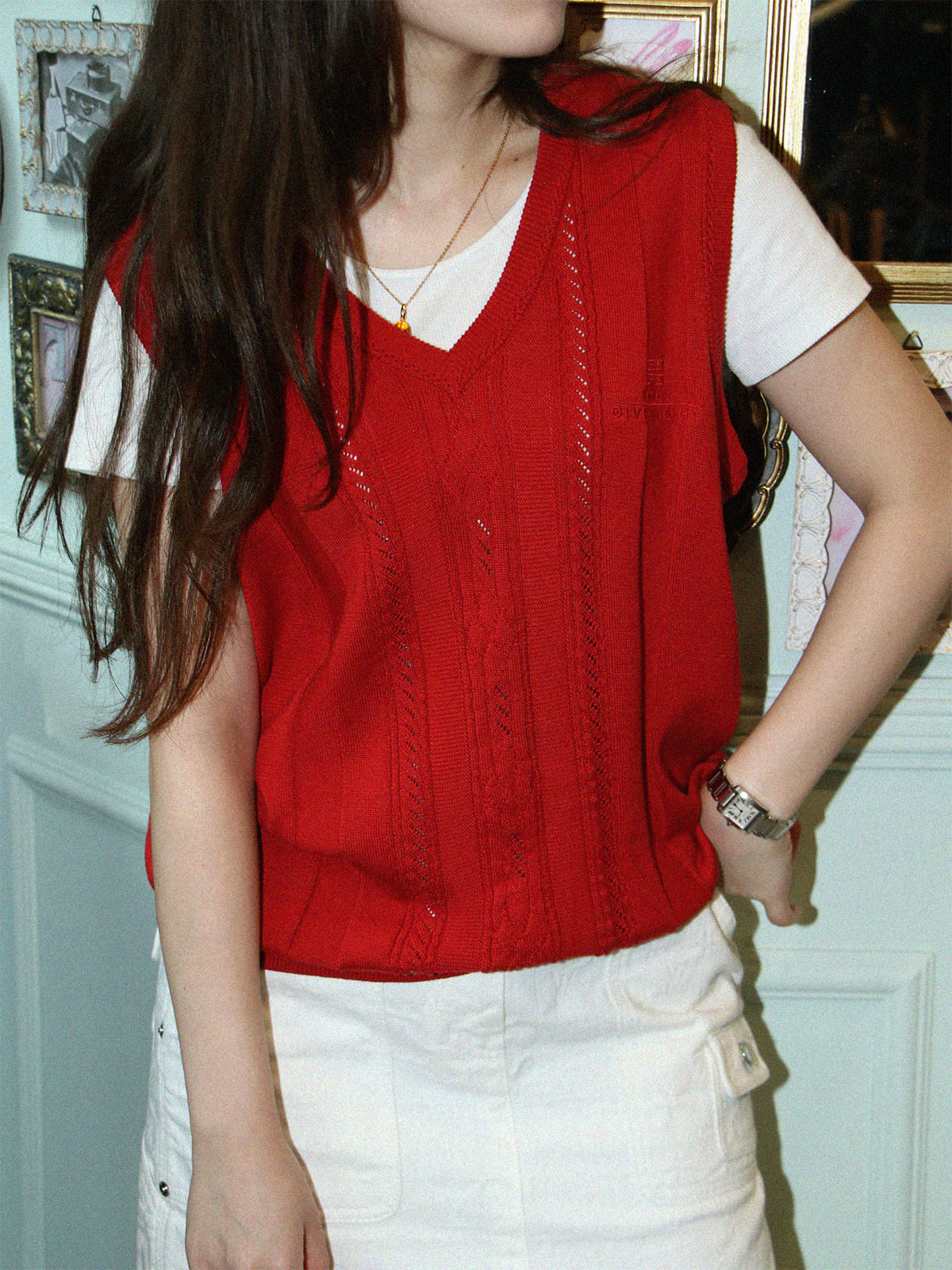 ロゴ刺繍ニットベスト レッド