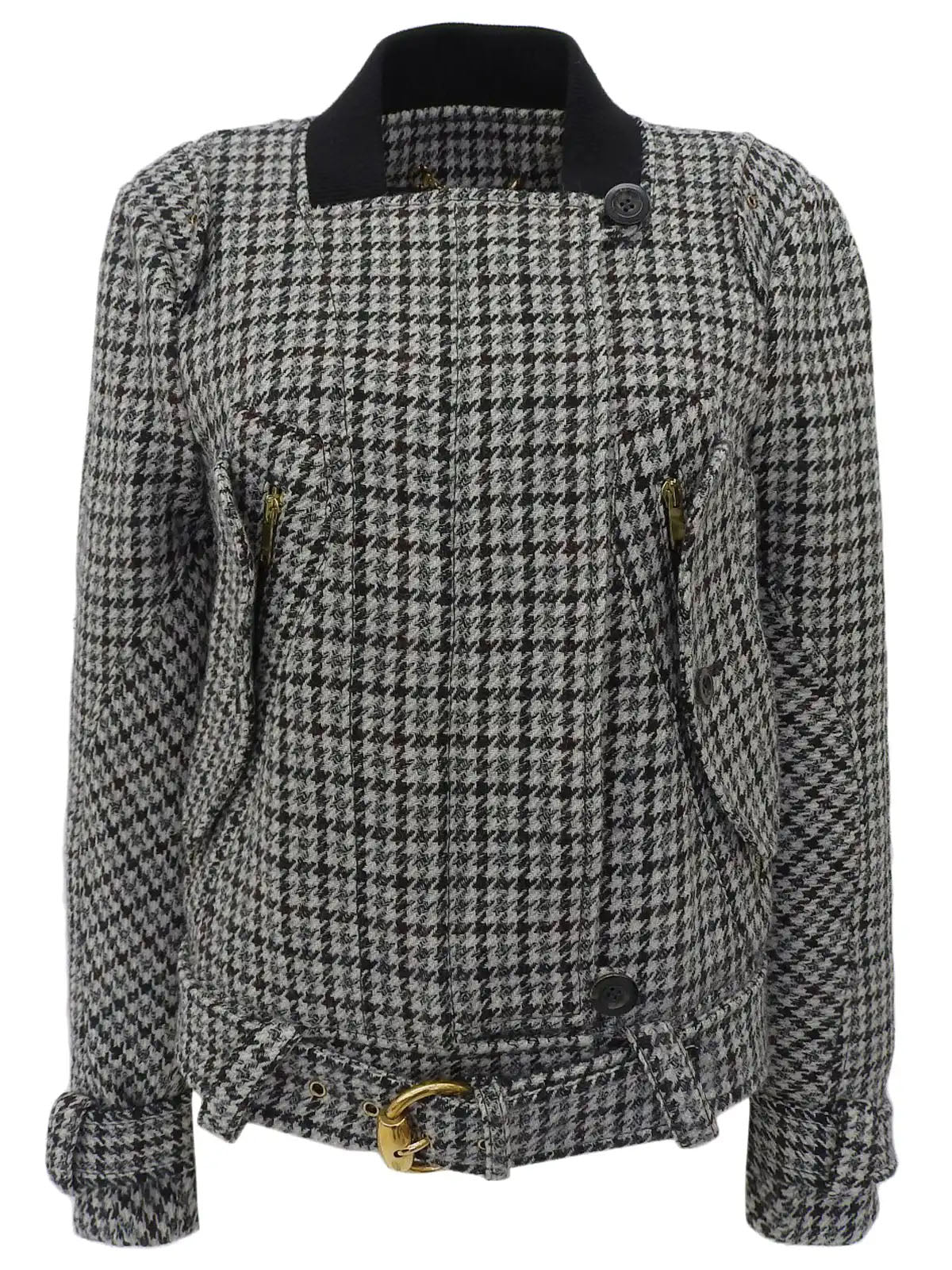 ウールハウンドトゥースパターンロゴボタンジャケット ライトグレー/マルチ