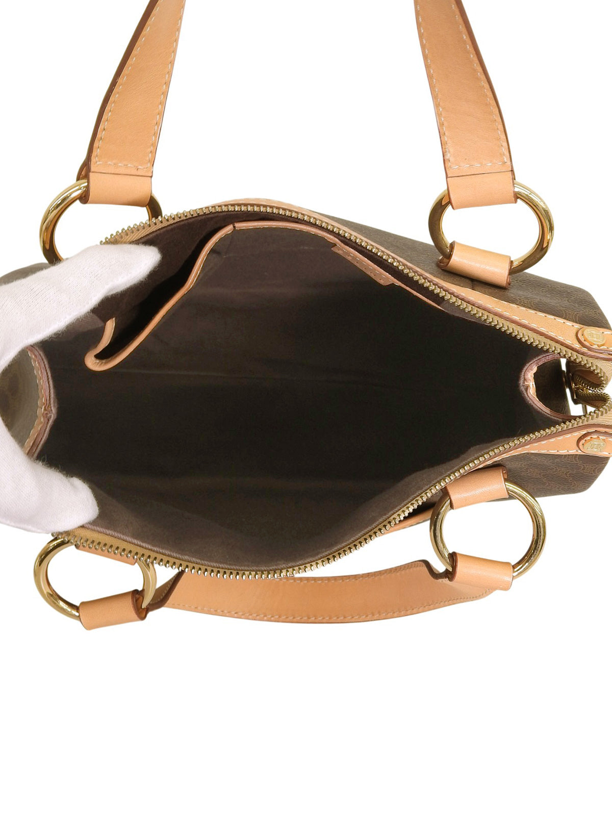 マカダムパターンハンドバッグ ブラウン