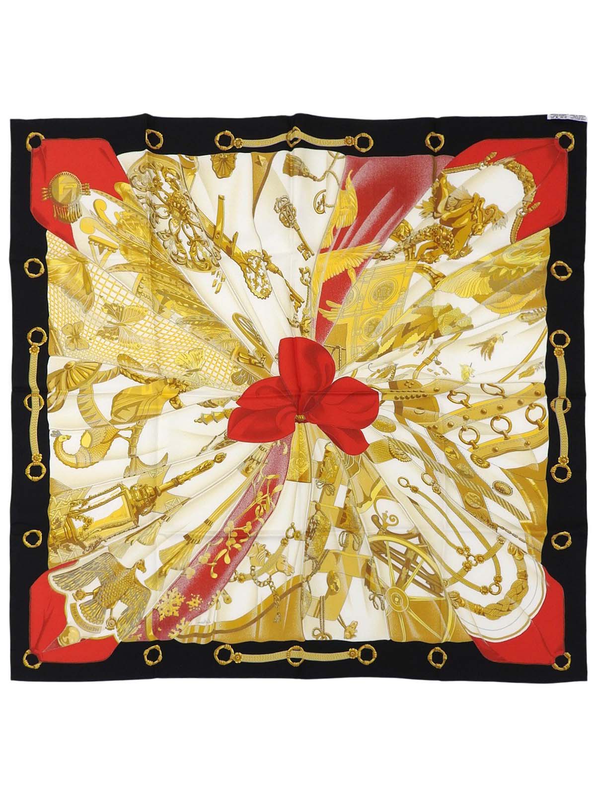 カレ90 Soleil de soieパターンスカーフ ブラック/レッド