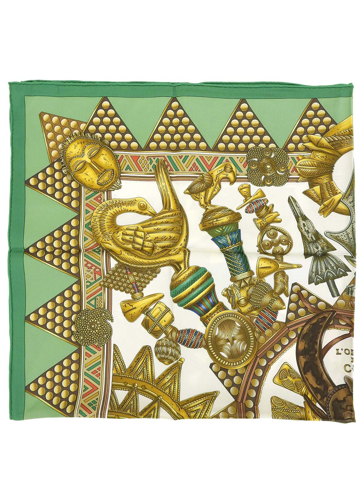カレ90 Lor Des Chefsパターンスカーフ グリーン/マルチ