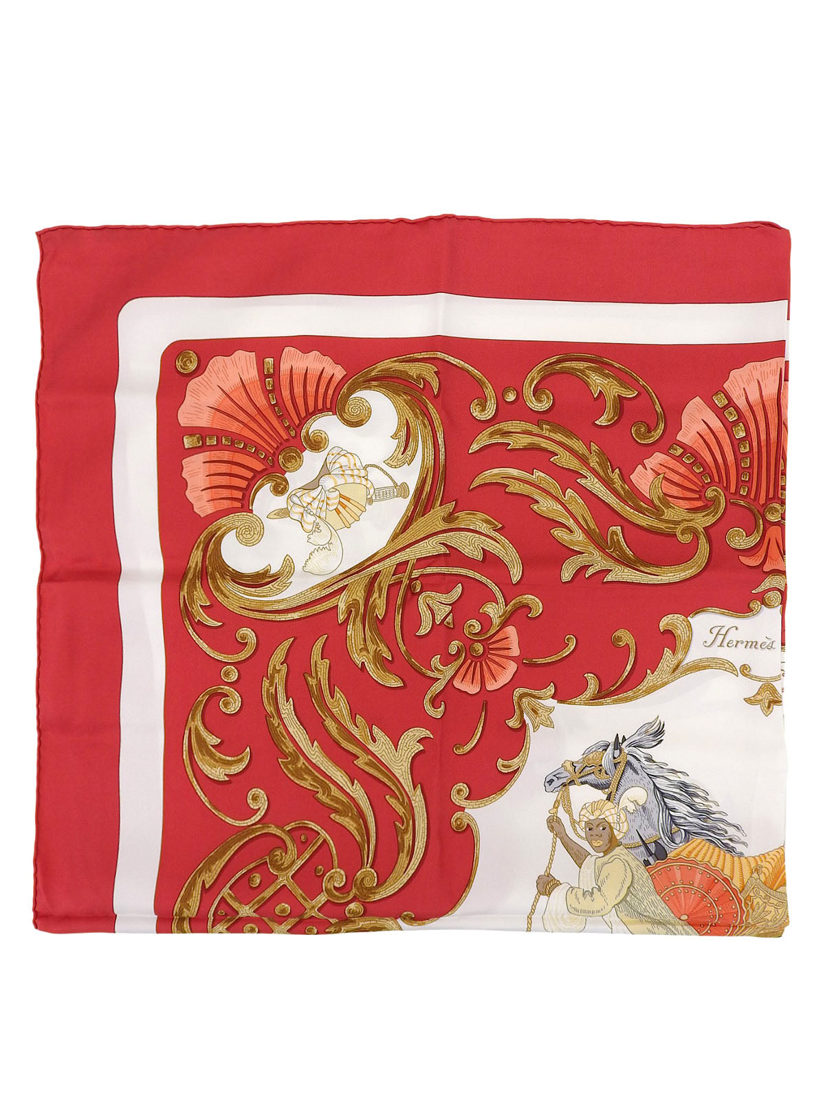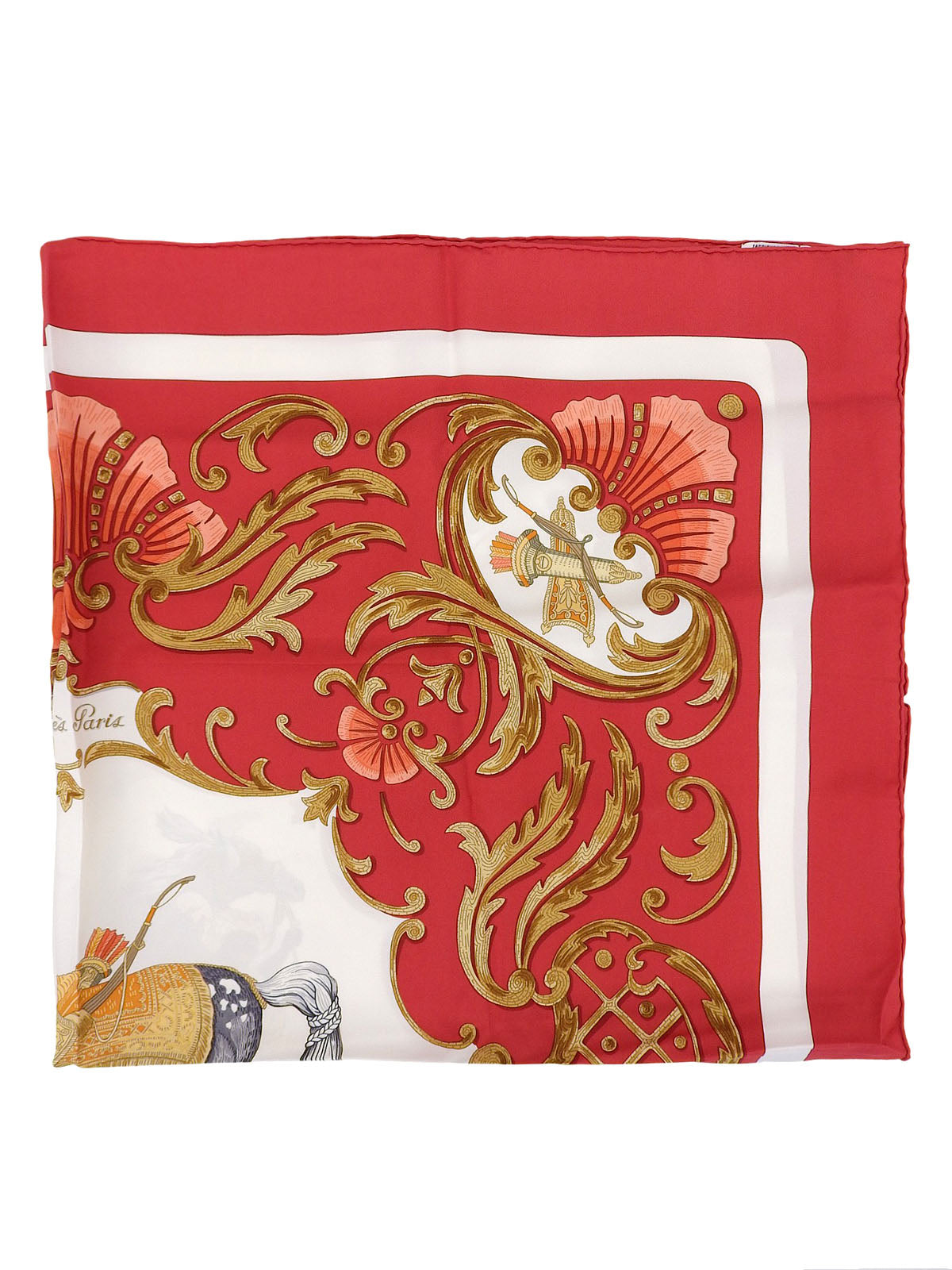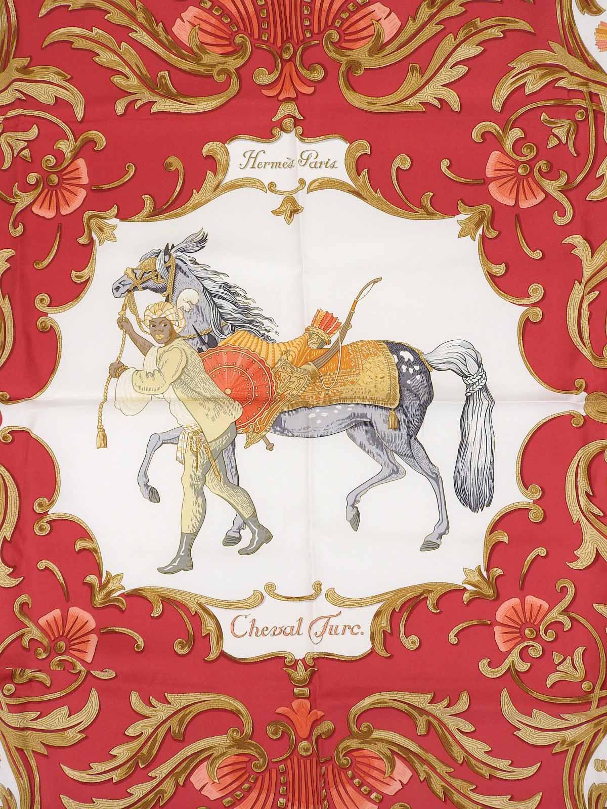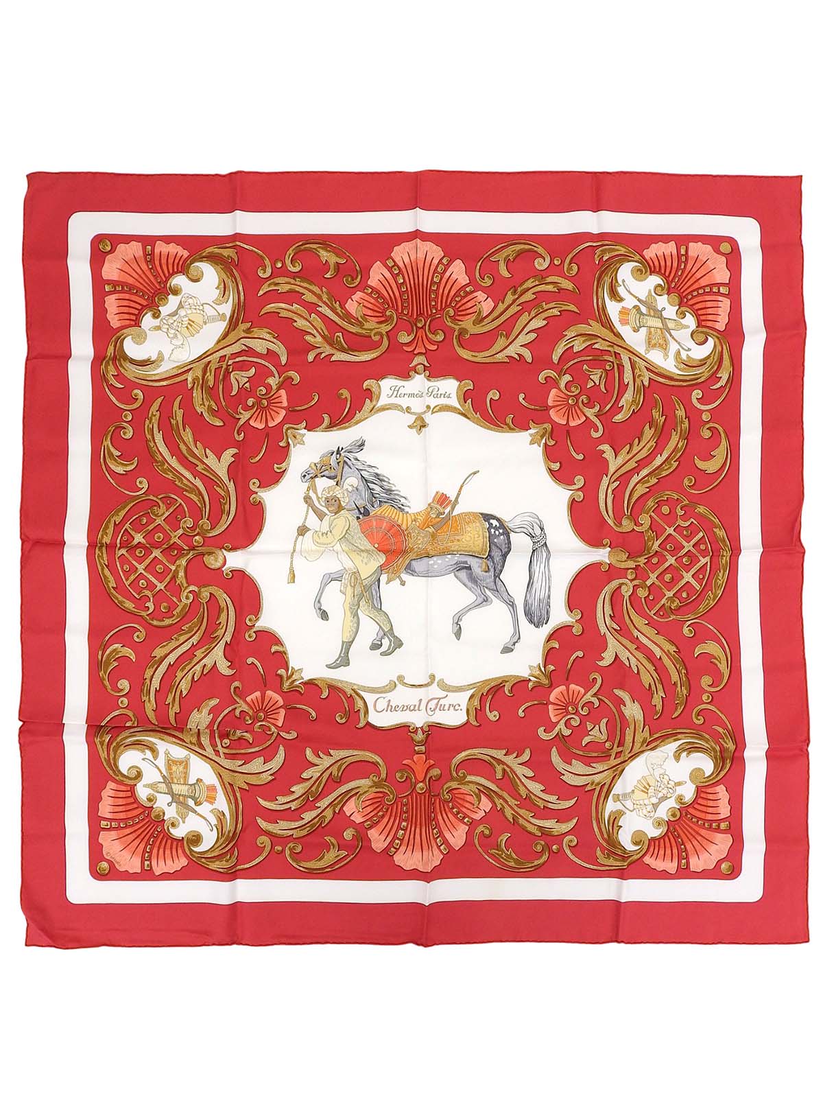 カレ90 Cheval Turcパターンスカーフ レッド/ホワイト/マルチ