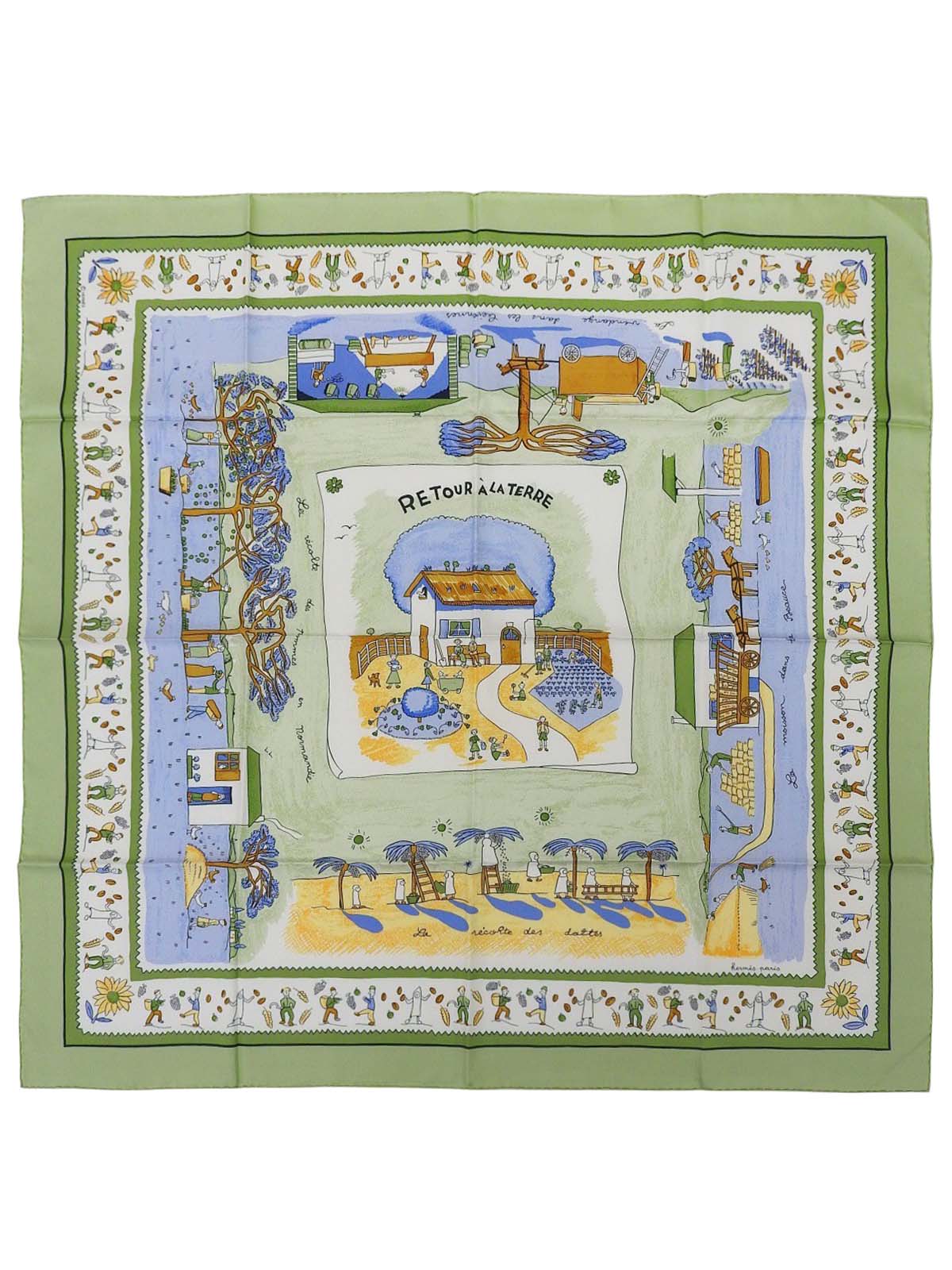 カレ90 RETOUR ALA TERREパターンスカーフ カーキ