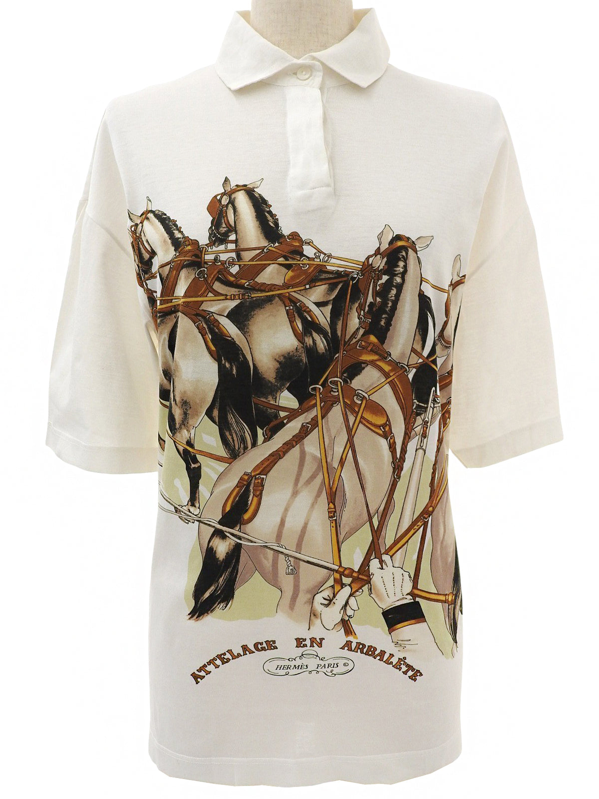 Attelage En Arbaleteパターンポロシャツ ホワイト/マルチ