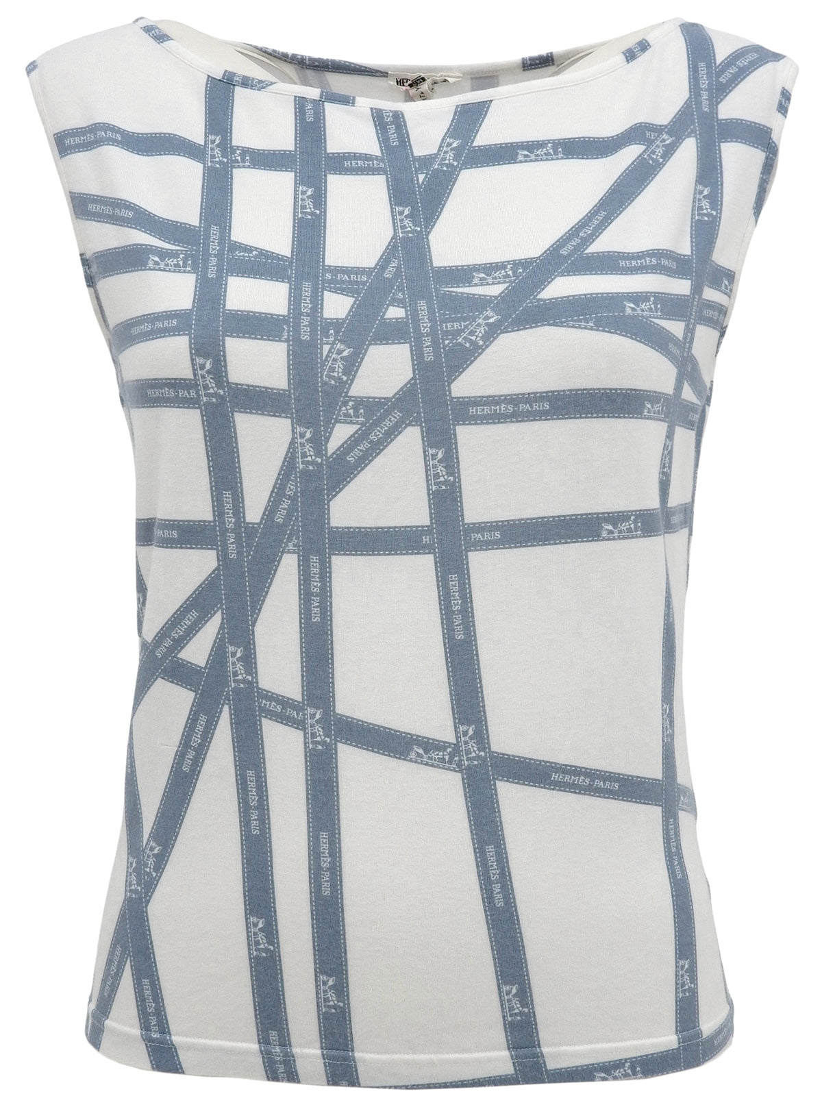 ボルデュックパターン半袖トップス アイスブルー/ホワイト